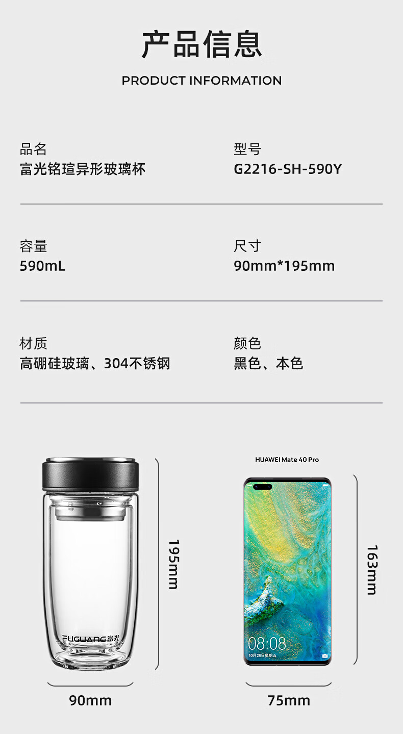 富光 铭瑄异形玻璃杯590ml G2216-SH-590Y