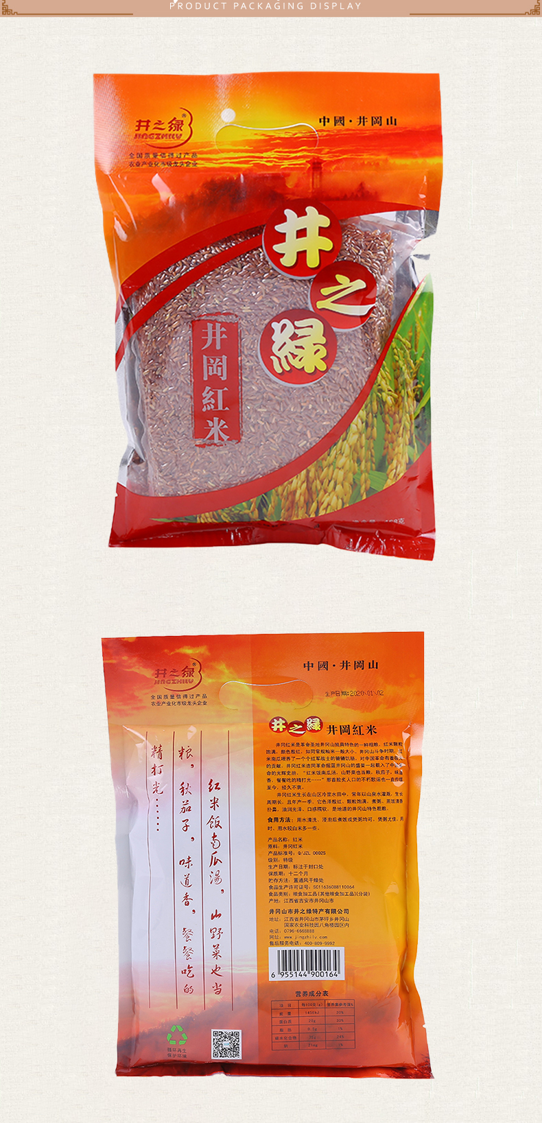 井之绿井冈山红米营养红稻米468g*3袋