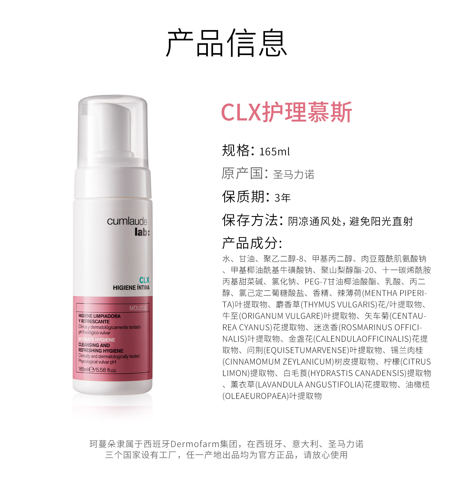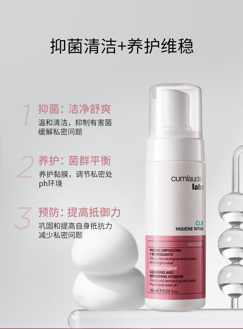 跨境进口--Cumlaude珂蔓朵 洗必泰健康护理慕斯 165ml