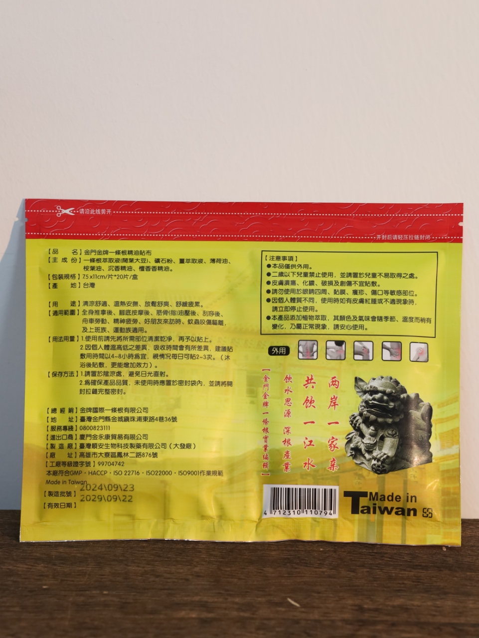 【金門金牌一條根精油貼布】来喽😍