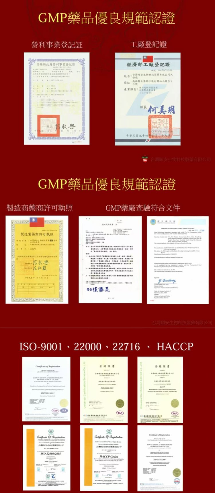 2005年经卫生福利部认定,完成中药GMP厂药品优良规范认证,符合世界卫生组织WHO制药规范