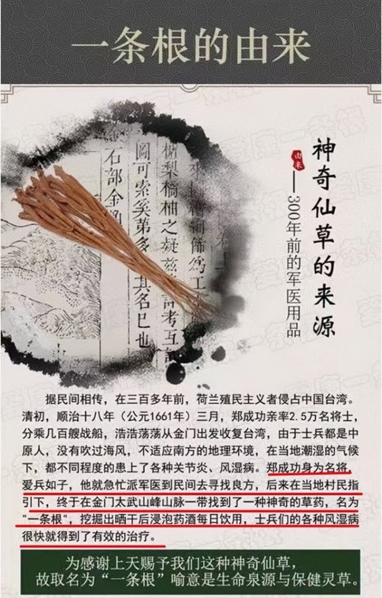 一条根在台湾当地名气很大,几乎家家必备