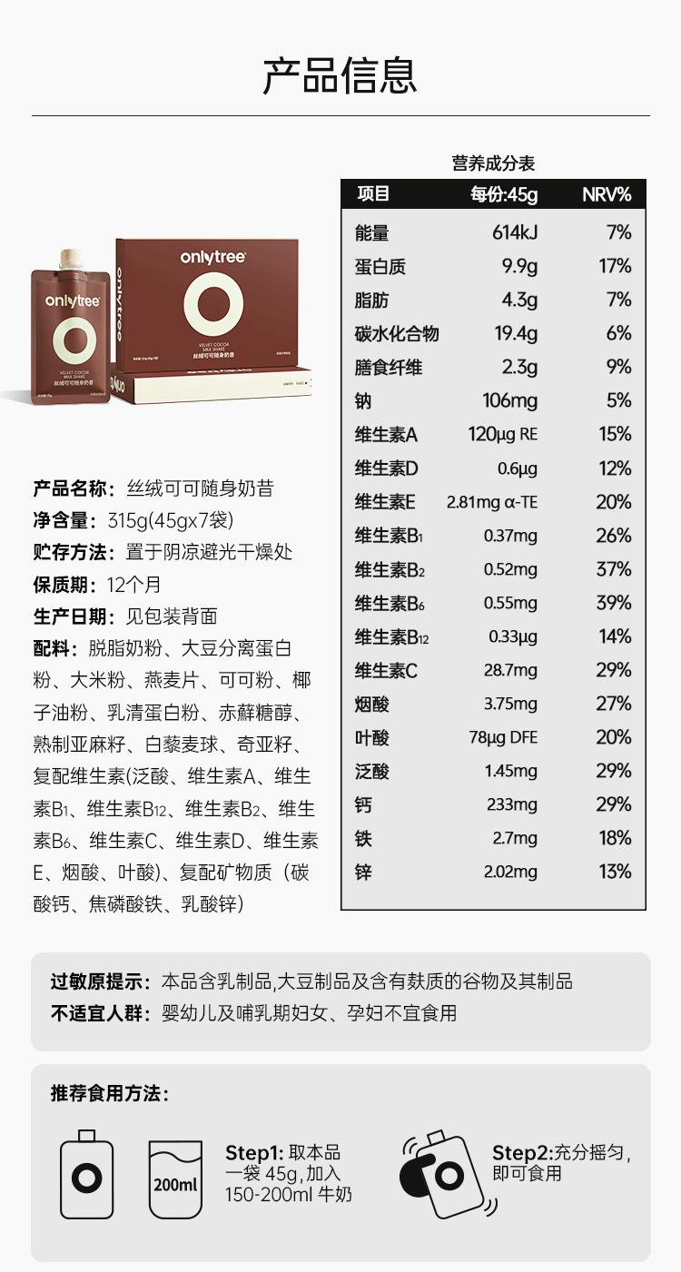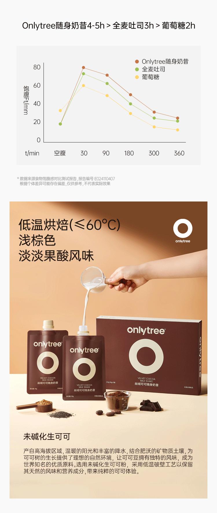 【onlytree】丝绒可可随身奶昔315g/盒 代餐蛋白粉饱腹轻食早晚餐冲饮纤维营养