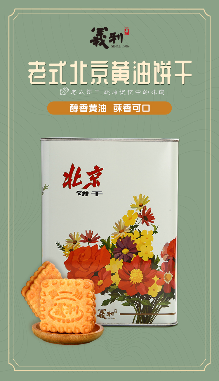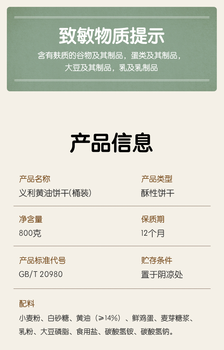 义利 黄油饼干 办公休闲零食 独立包装 酥性饼干800g (铁桶装)