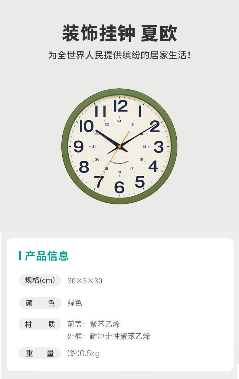 客厅卧室居家装饰挂钟 挂钟 夏欧 30SW-GR