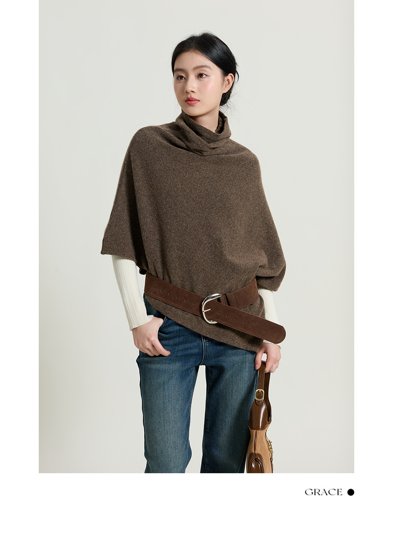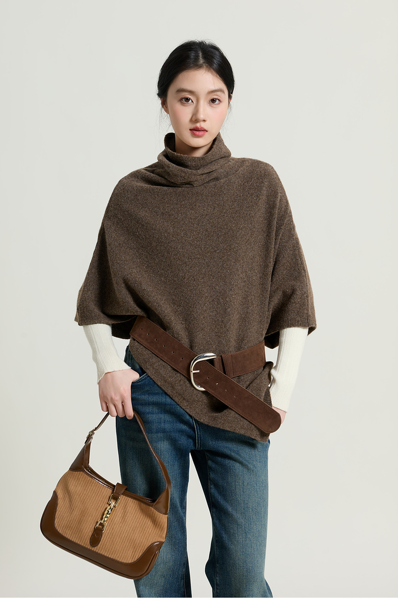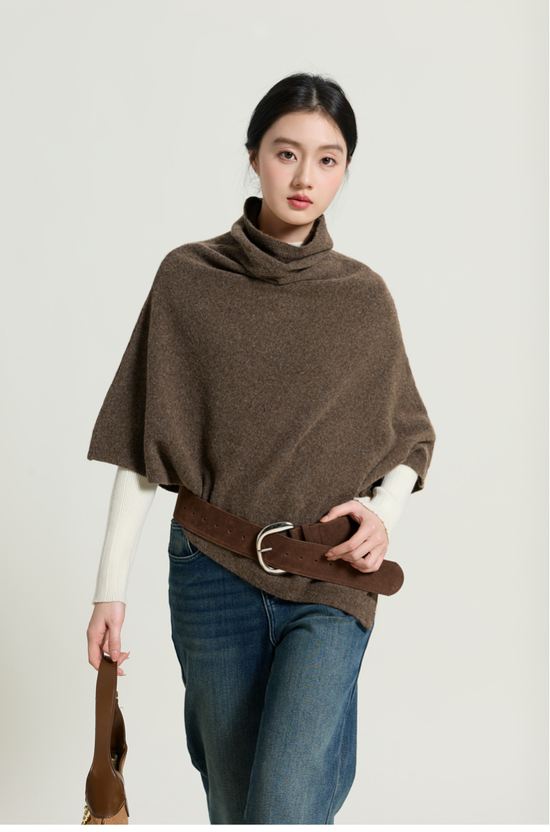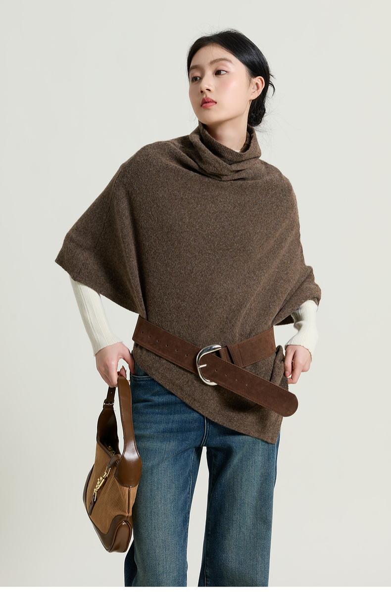 【绵羊毛】三彩2025新款慵懒堆堆领披肩不规则下摆保暖氛围感女