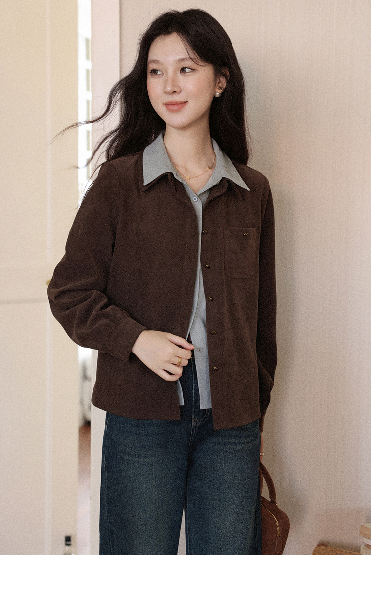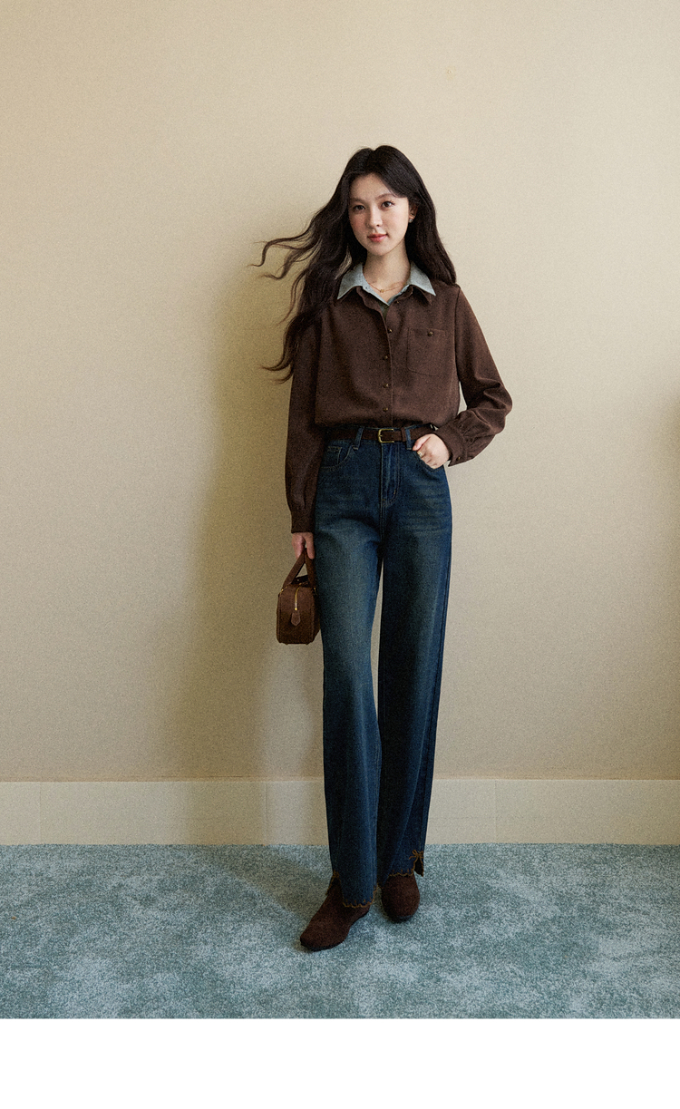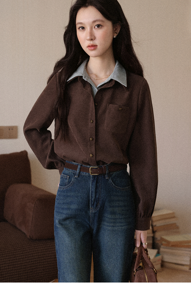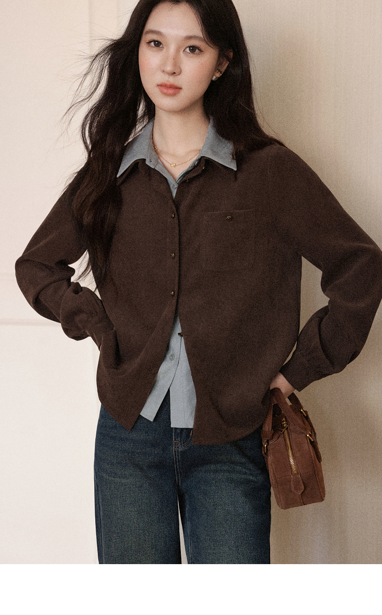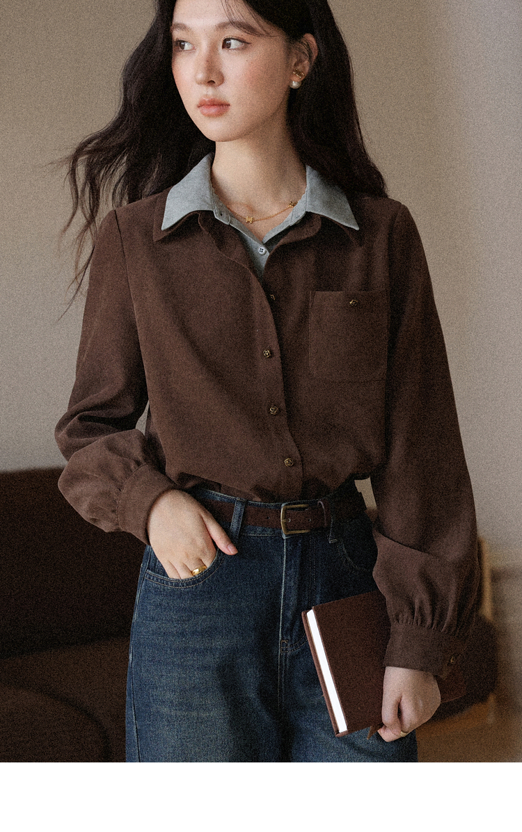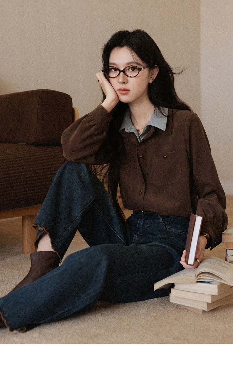 鹿向南「香草可露丽」假两件美拉德咖色衬衫女秋长袖上衣法式衬衣
