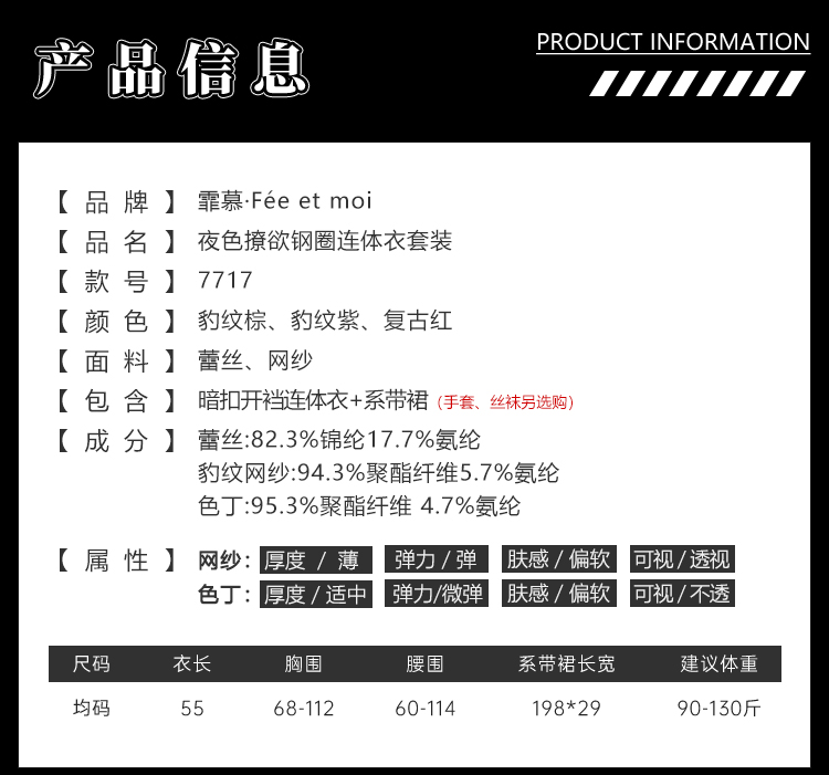 【情趣内衣】霏慕×谜姬 夜色撩欲钢圈连体衣套装7717
