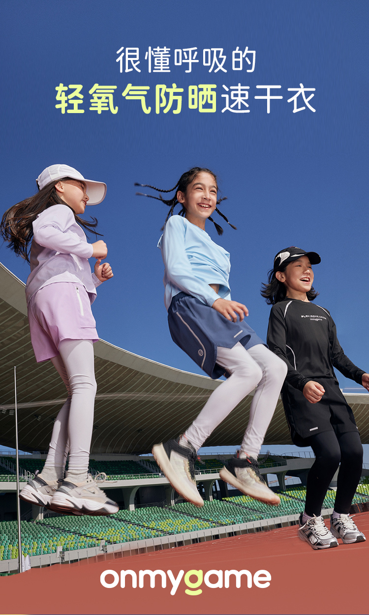 onmygame儿童专业运动品牌男女童款耐脏不易皱,柔软但不软踏