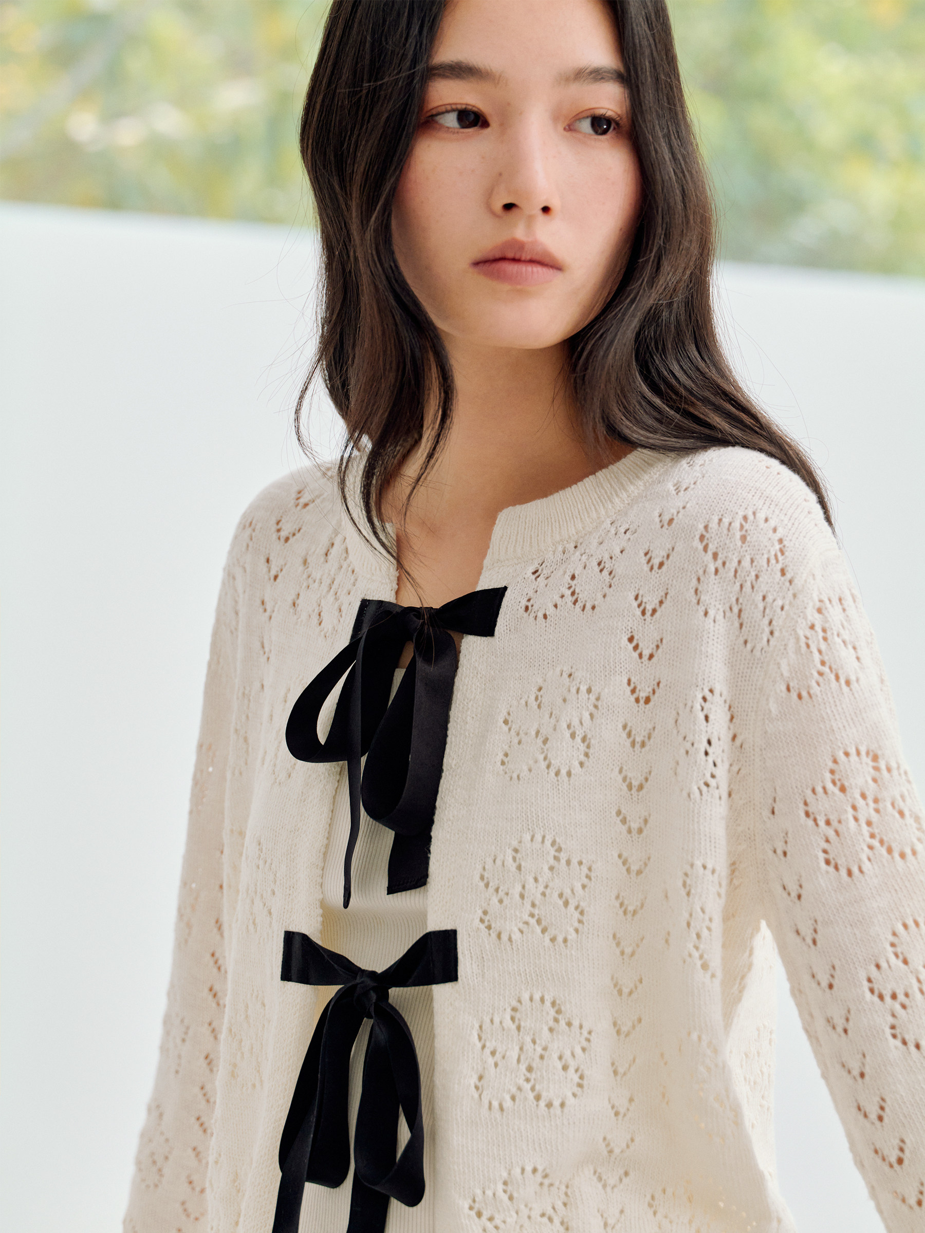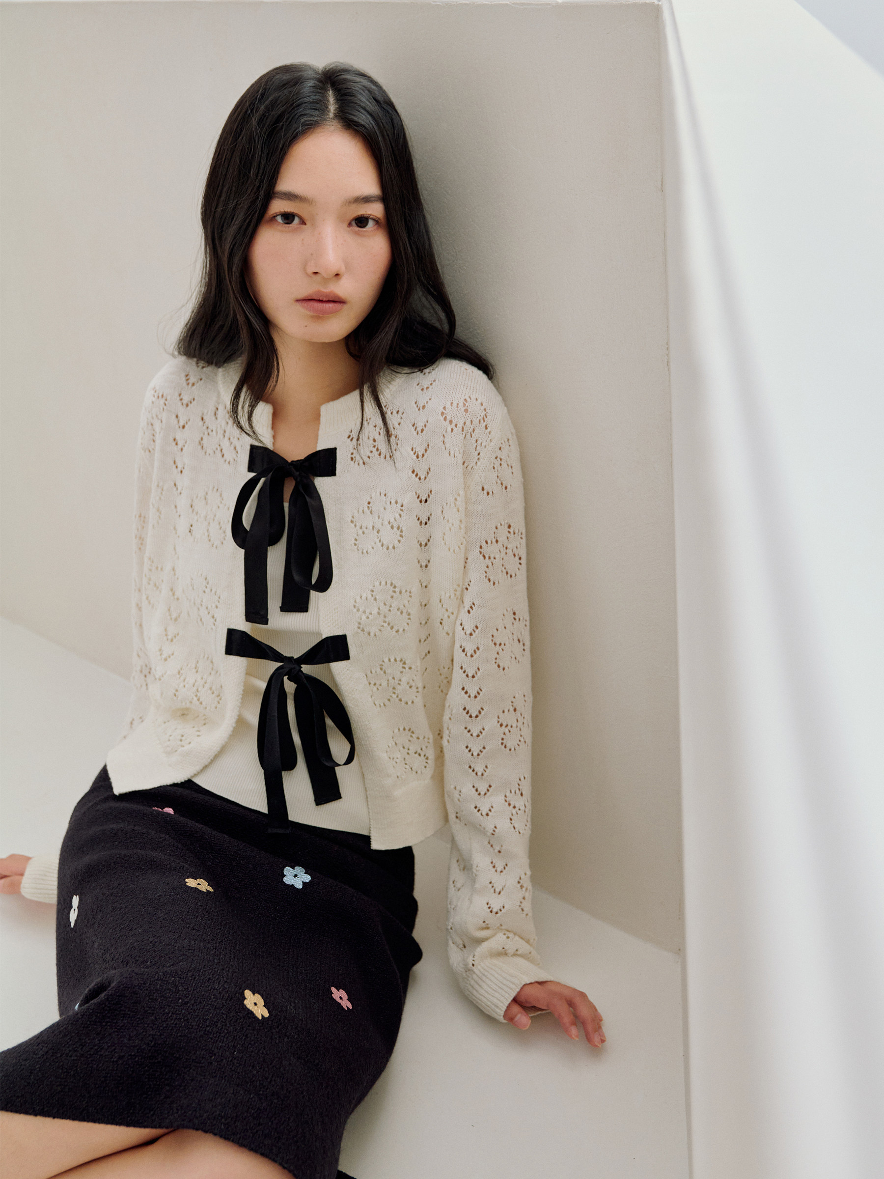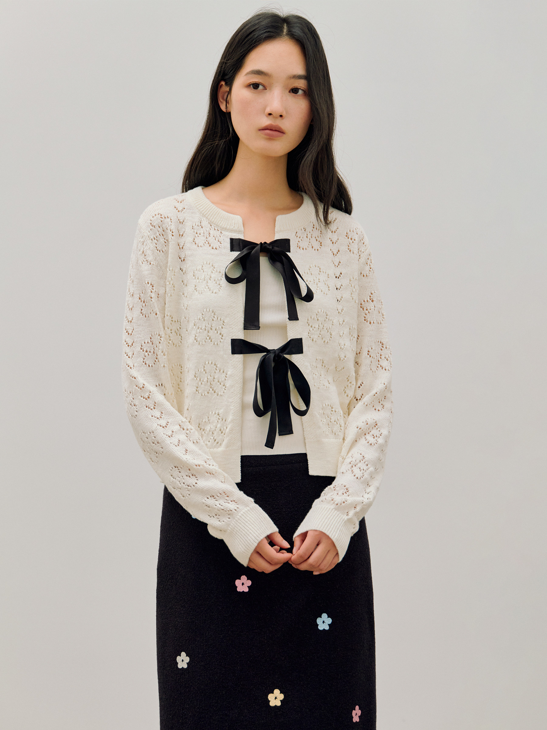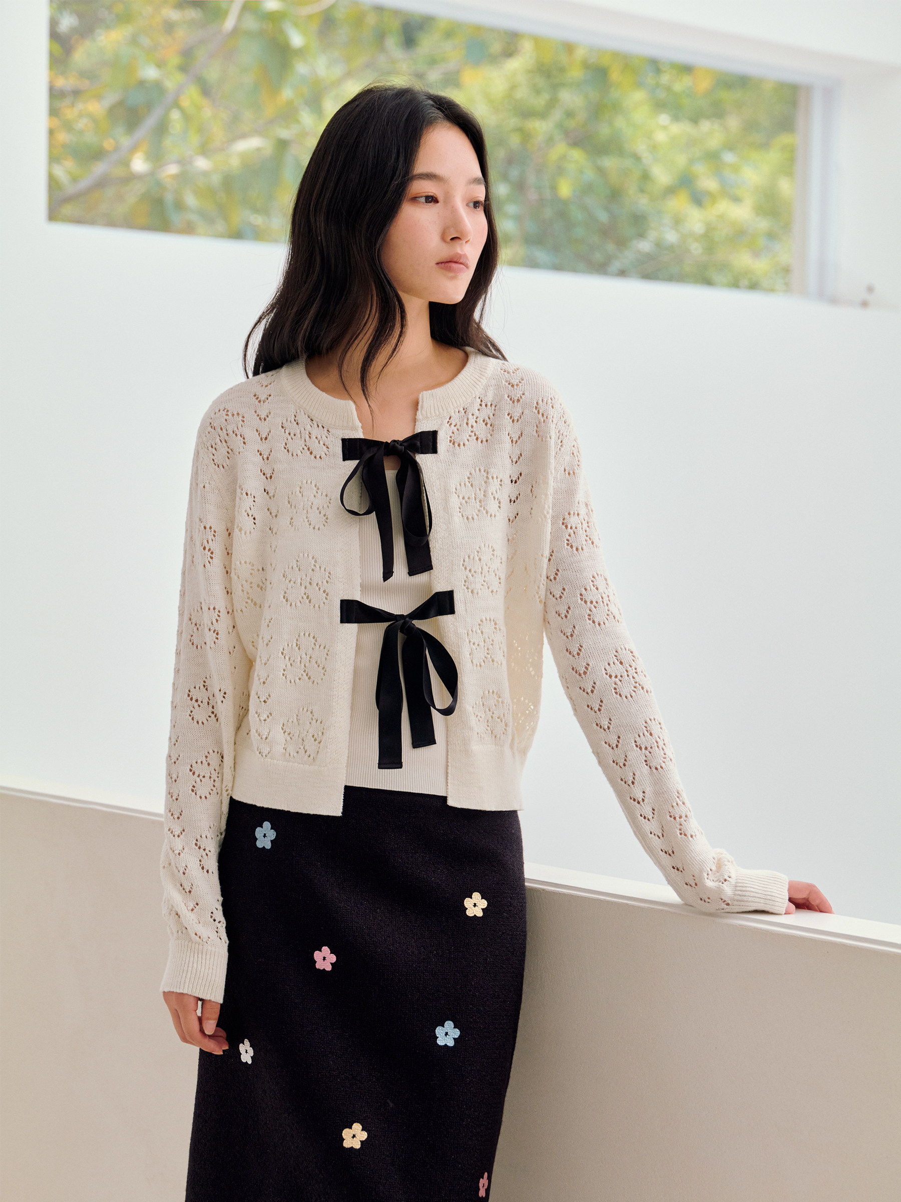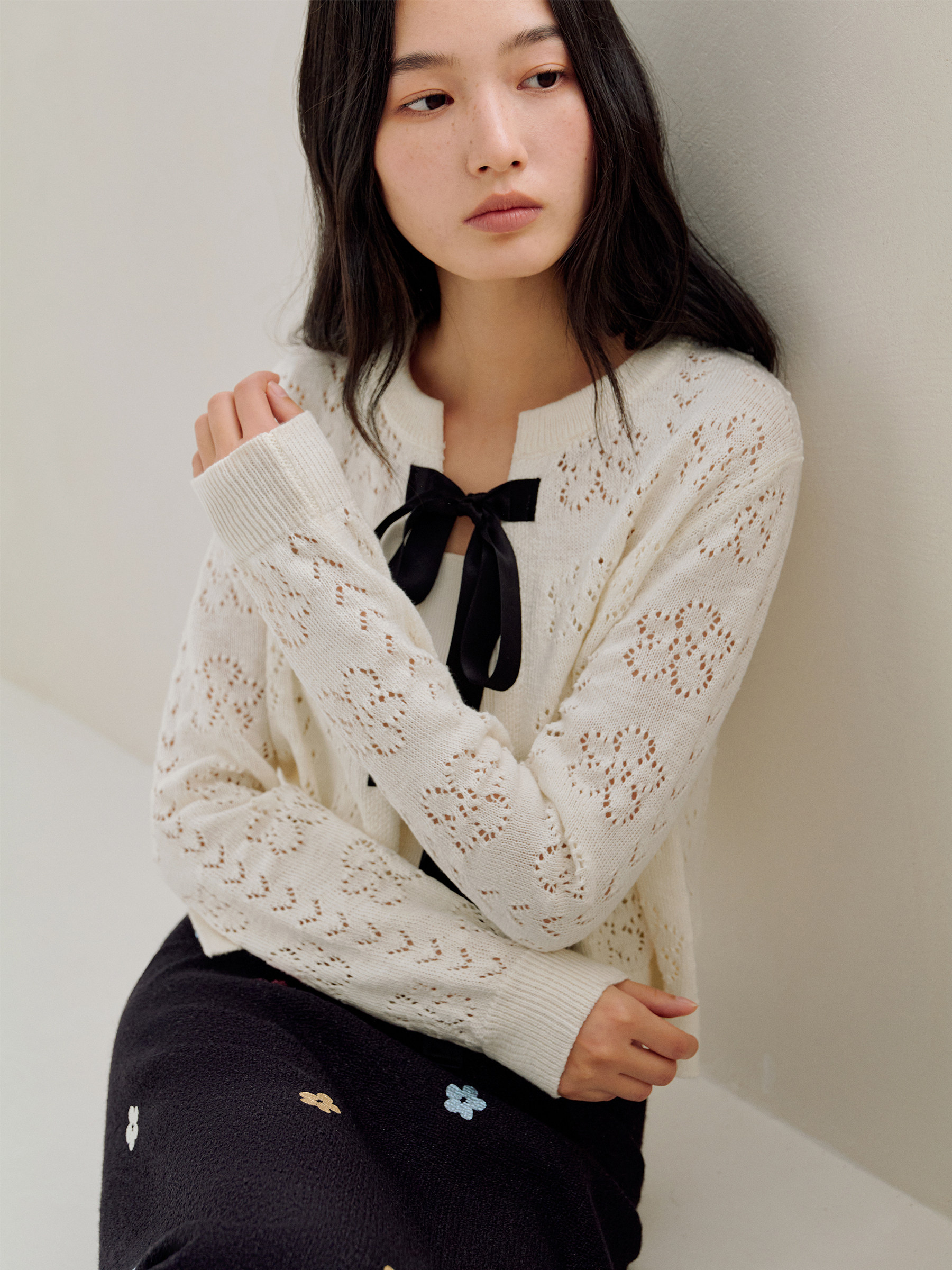 ForPoem 26/SS 原创设计真丝系带花朵镂空开衫