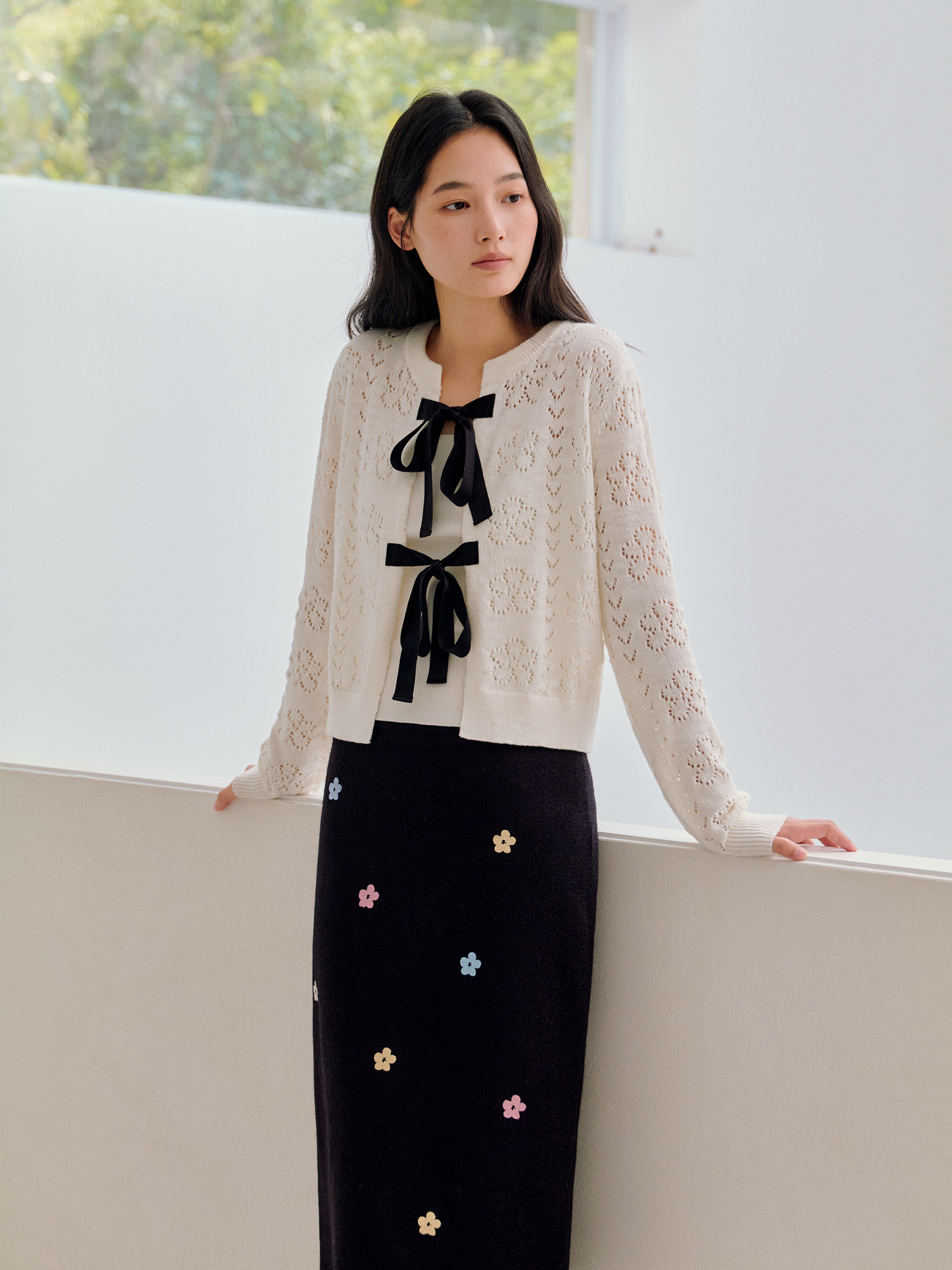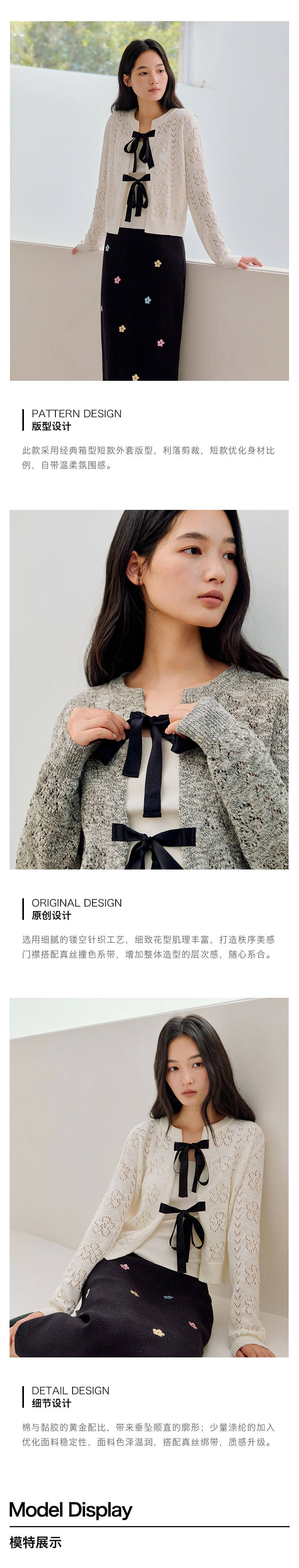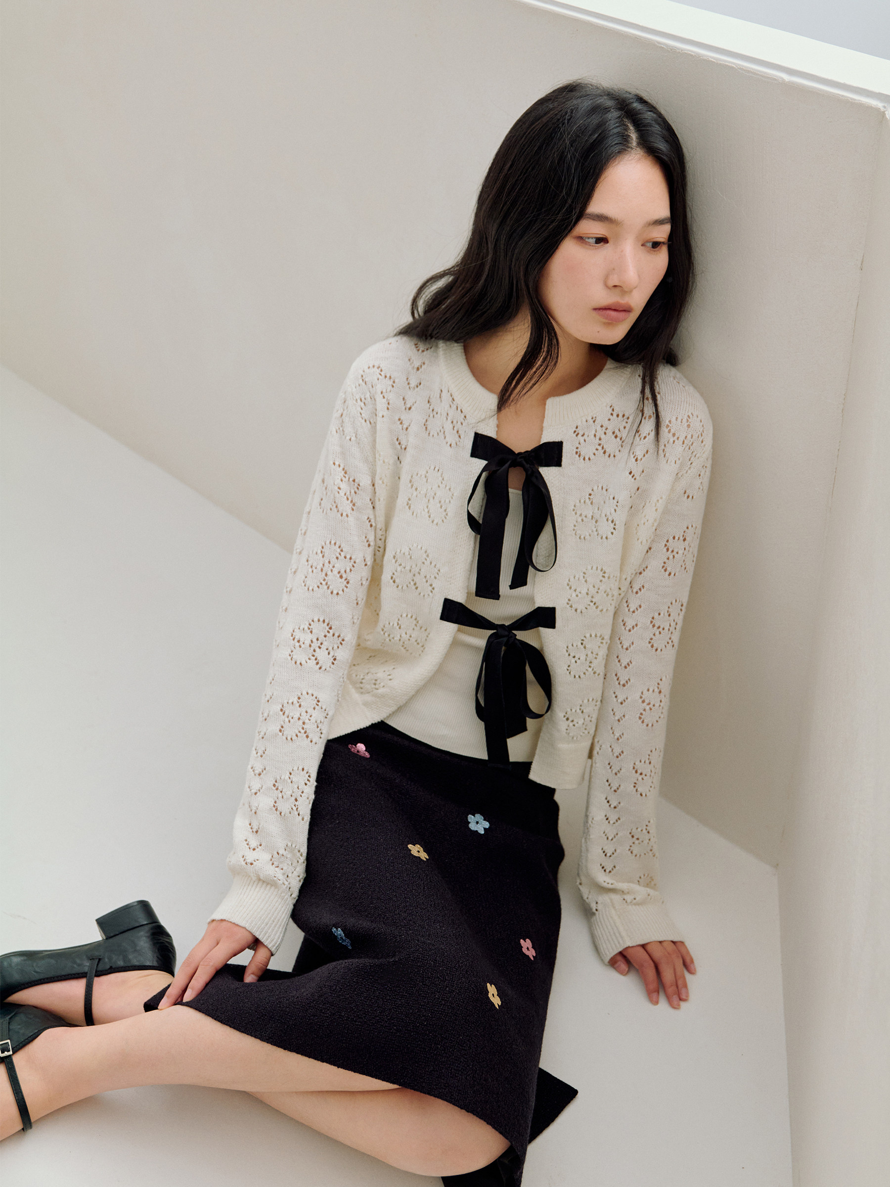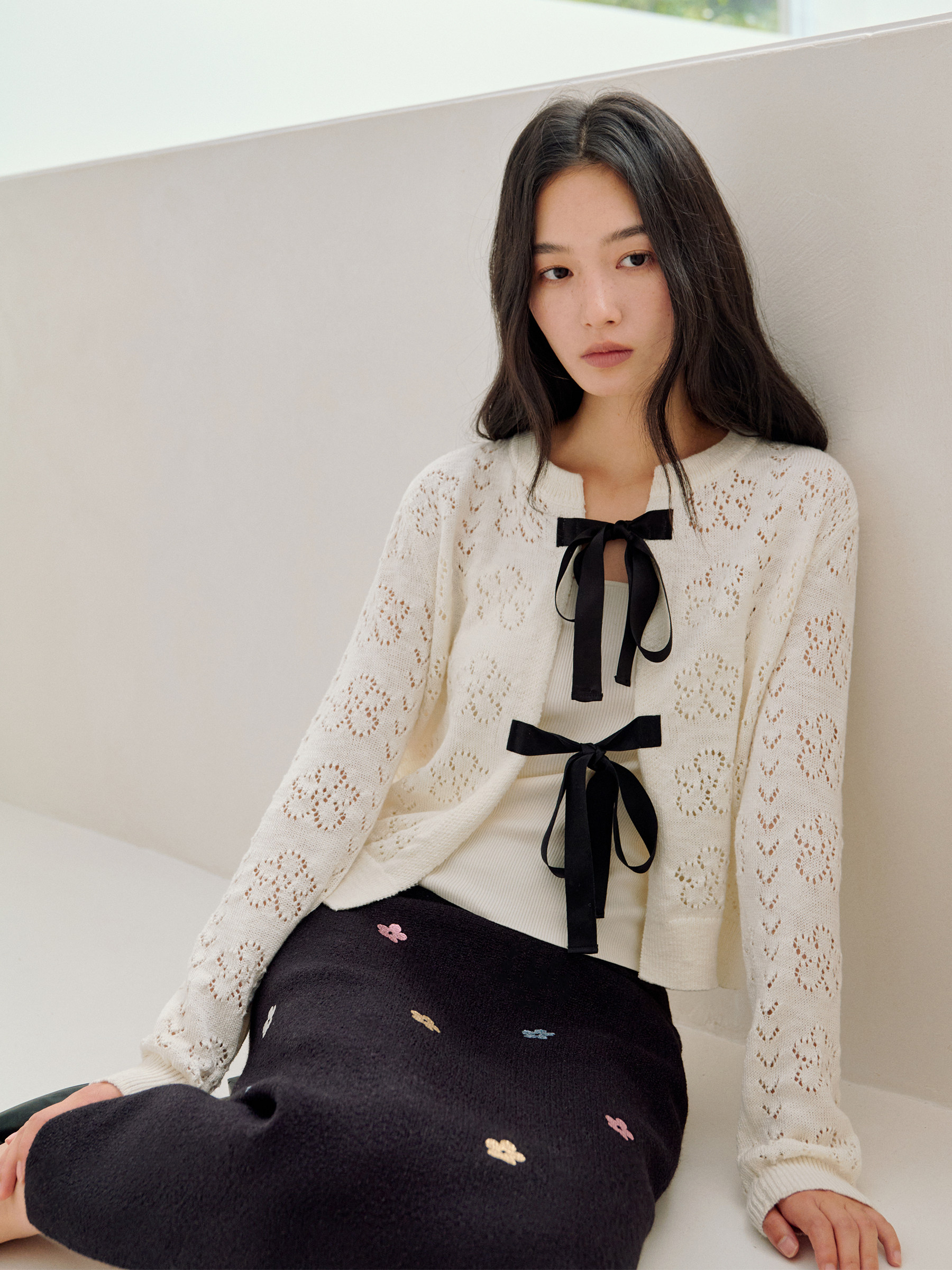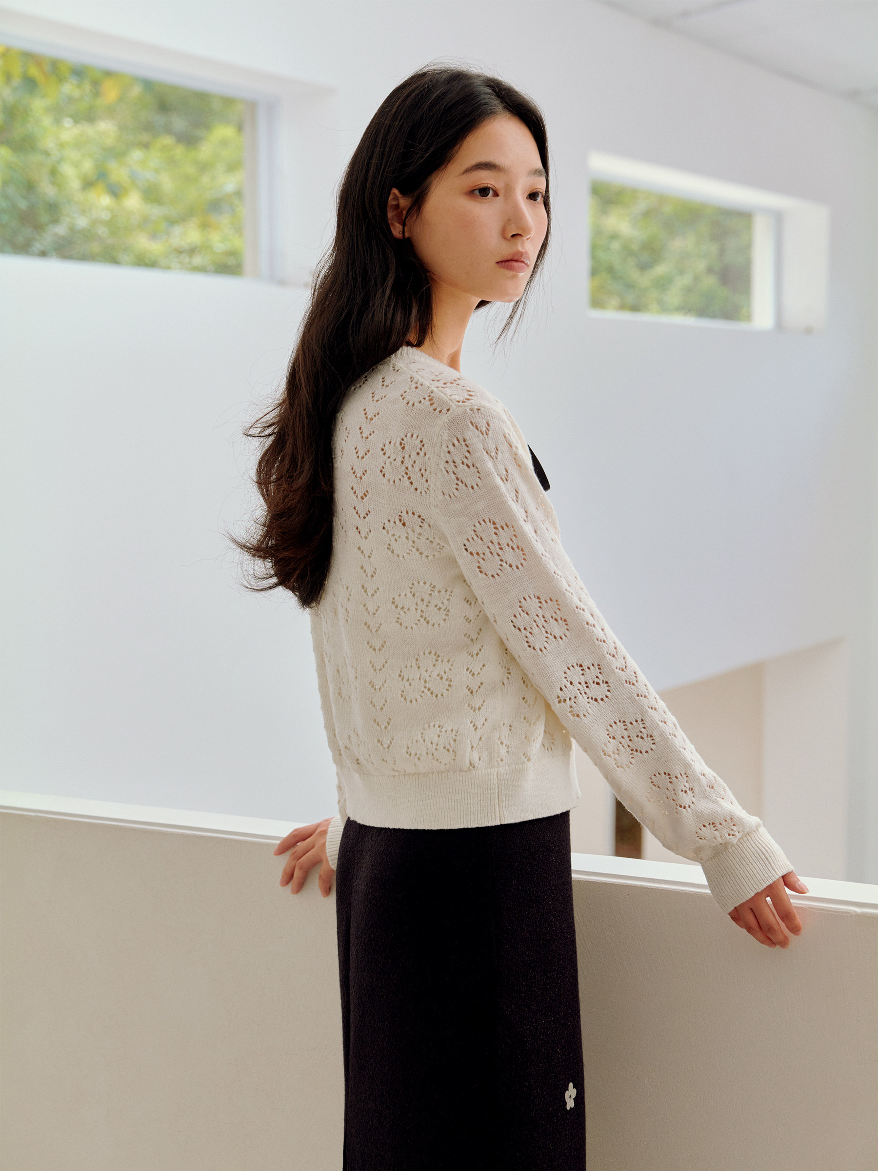 ForPoem 26/SS 原创设计真丝系带花朵镂空开衫