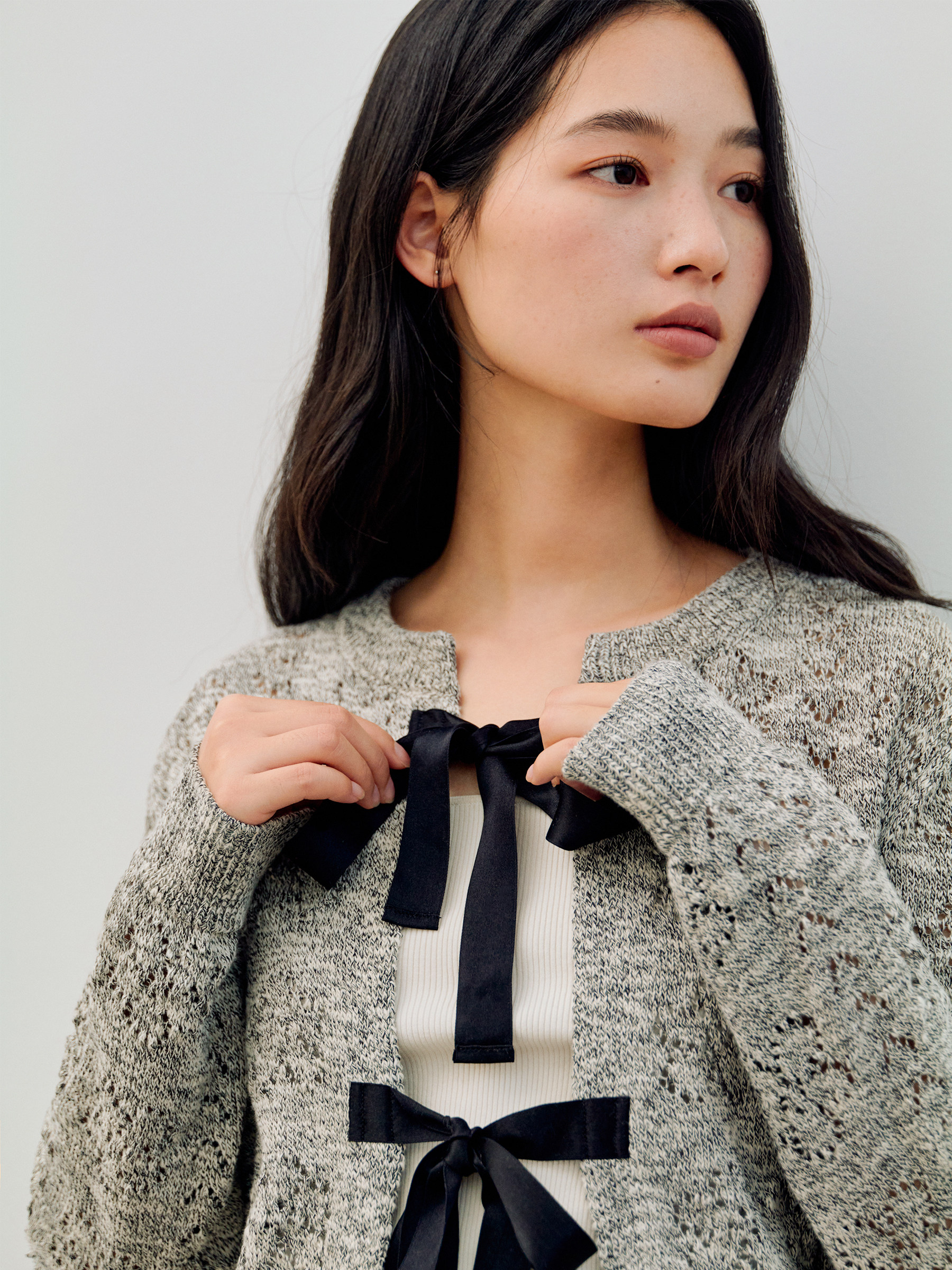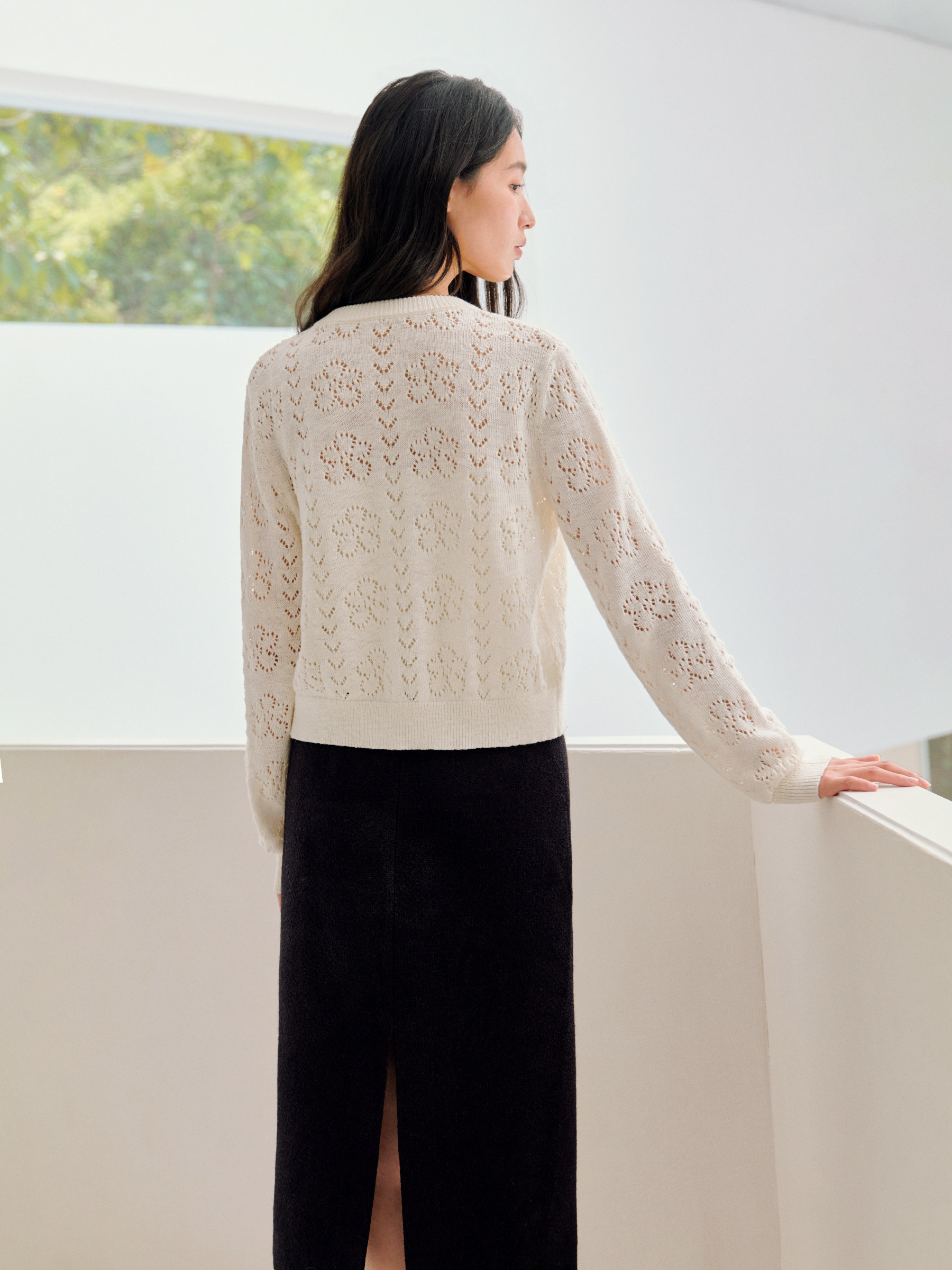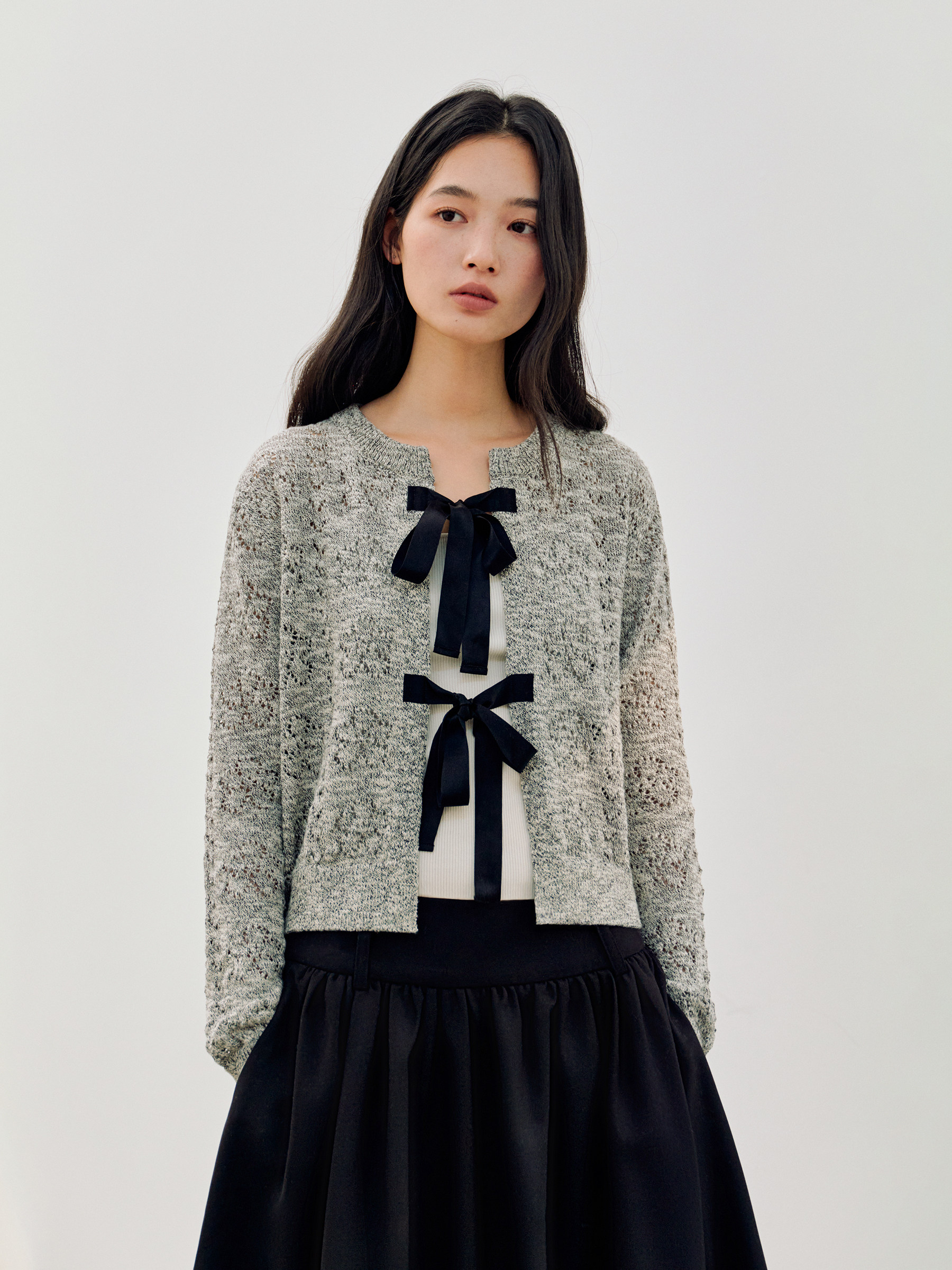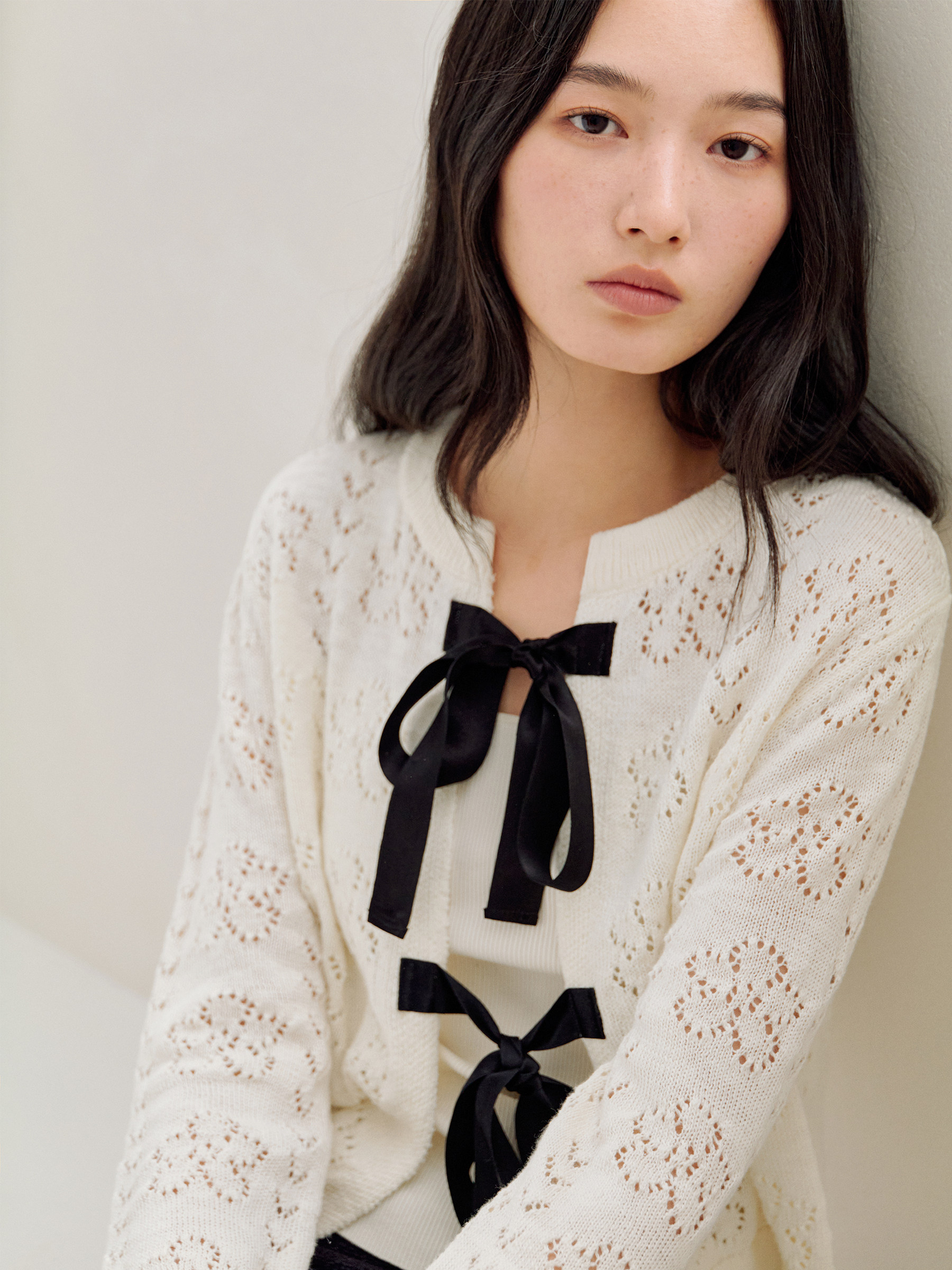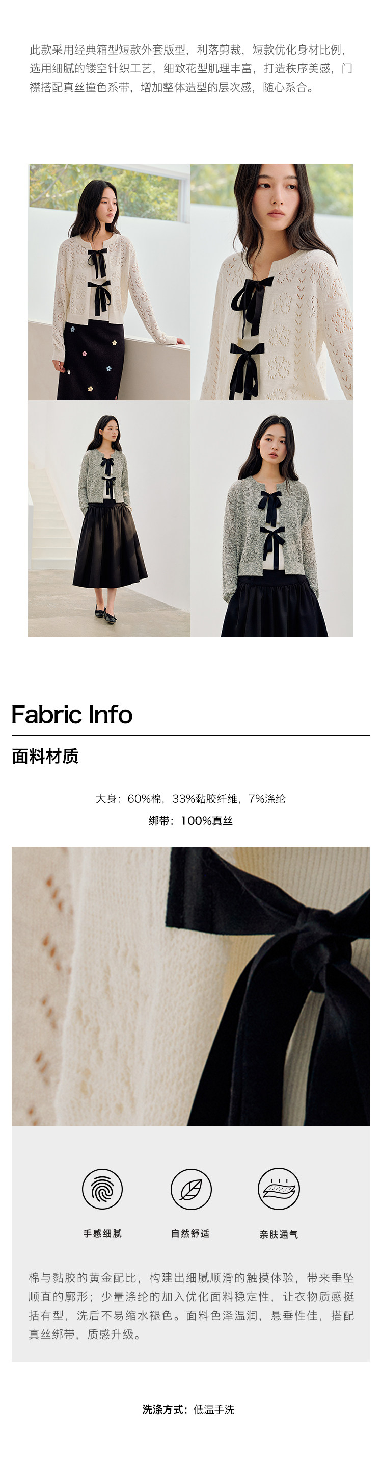 ForPoem 26/SS 原创设计真丝系带花朵镂空开衫