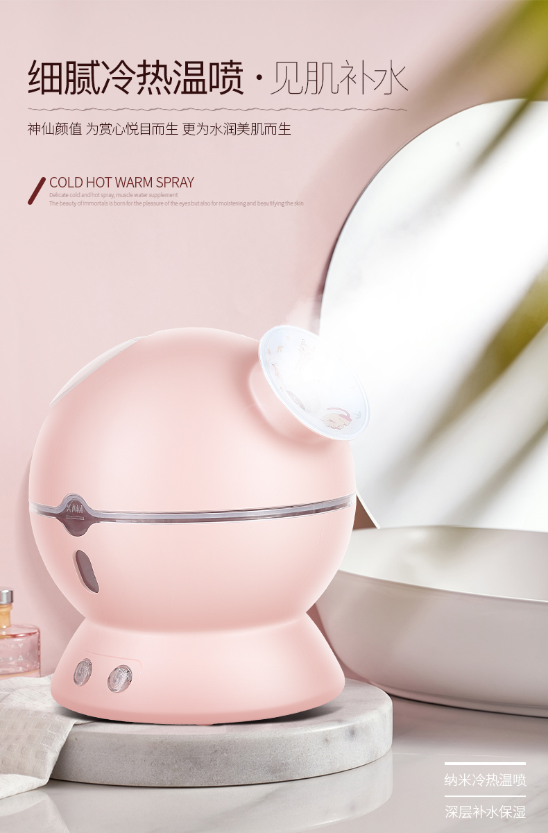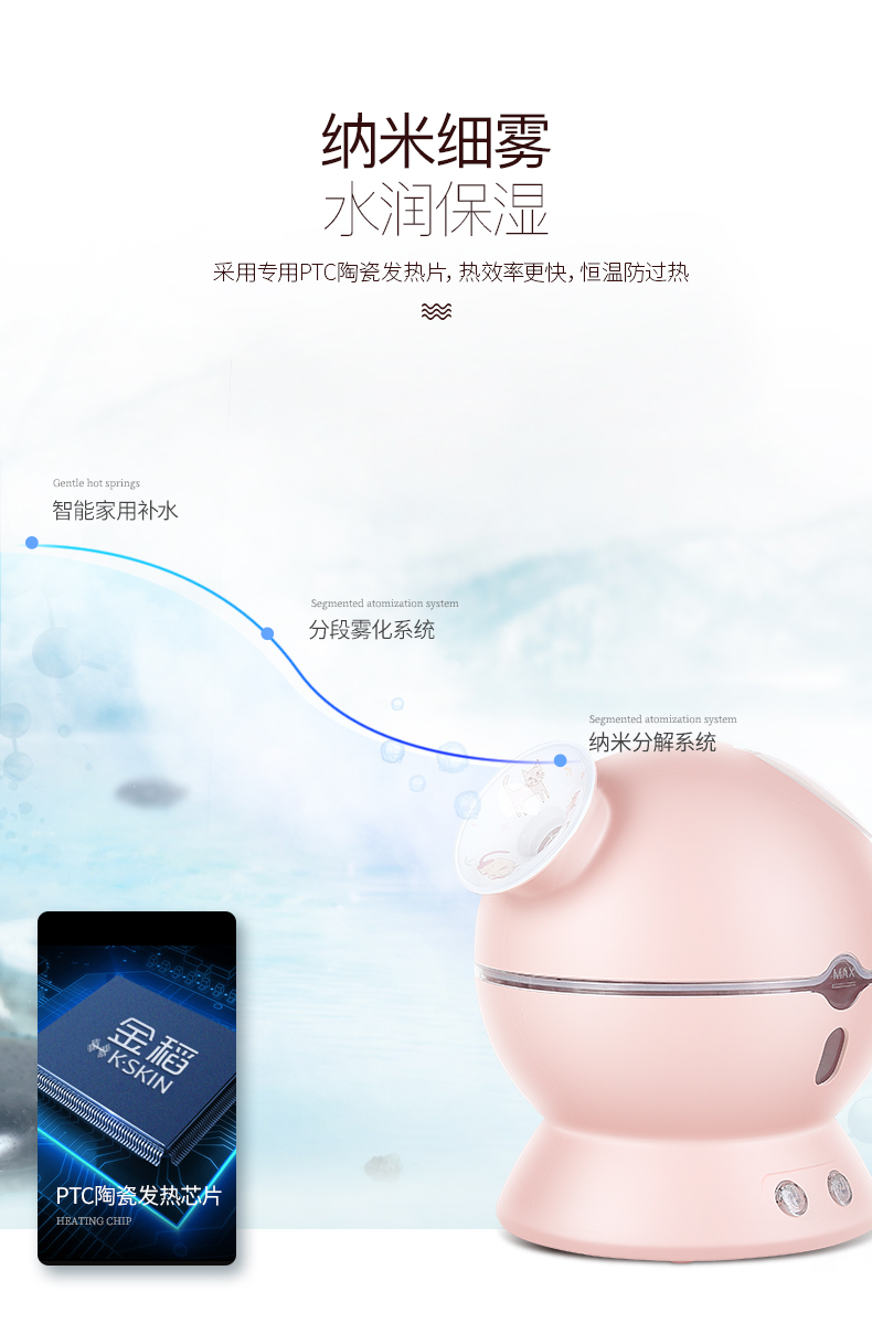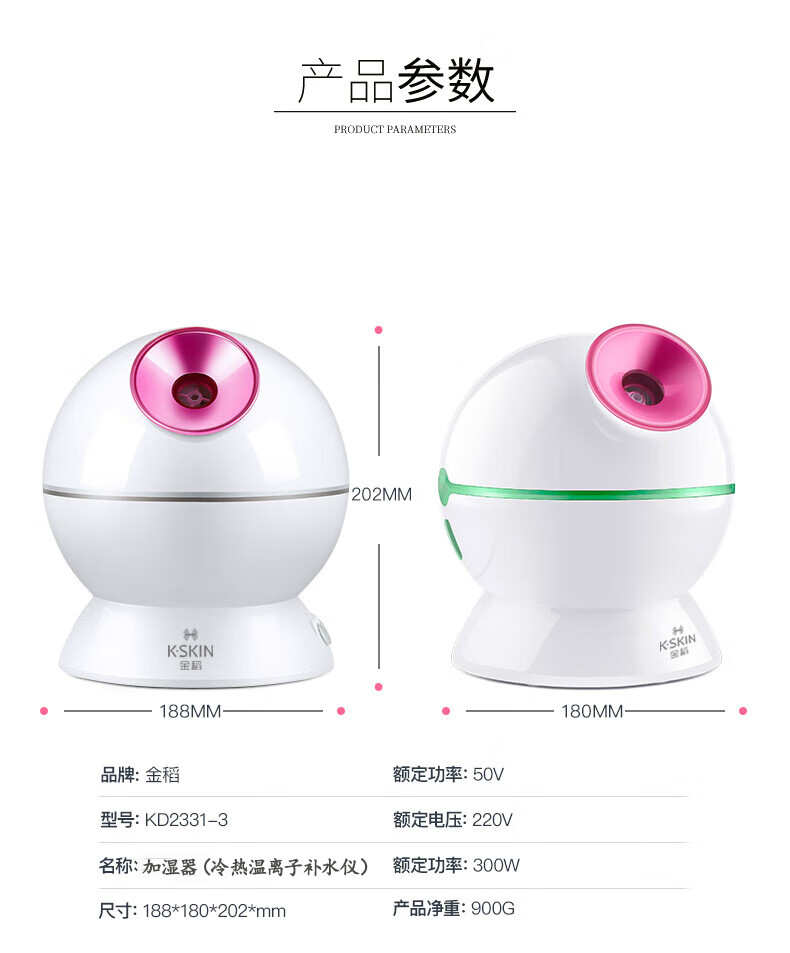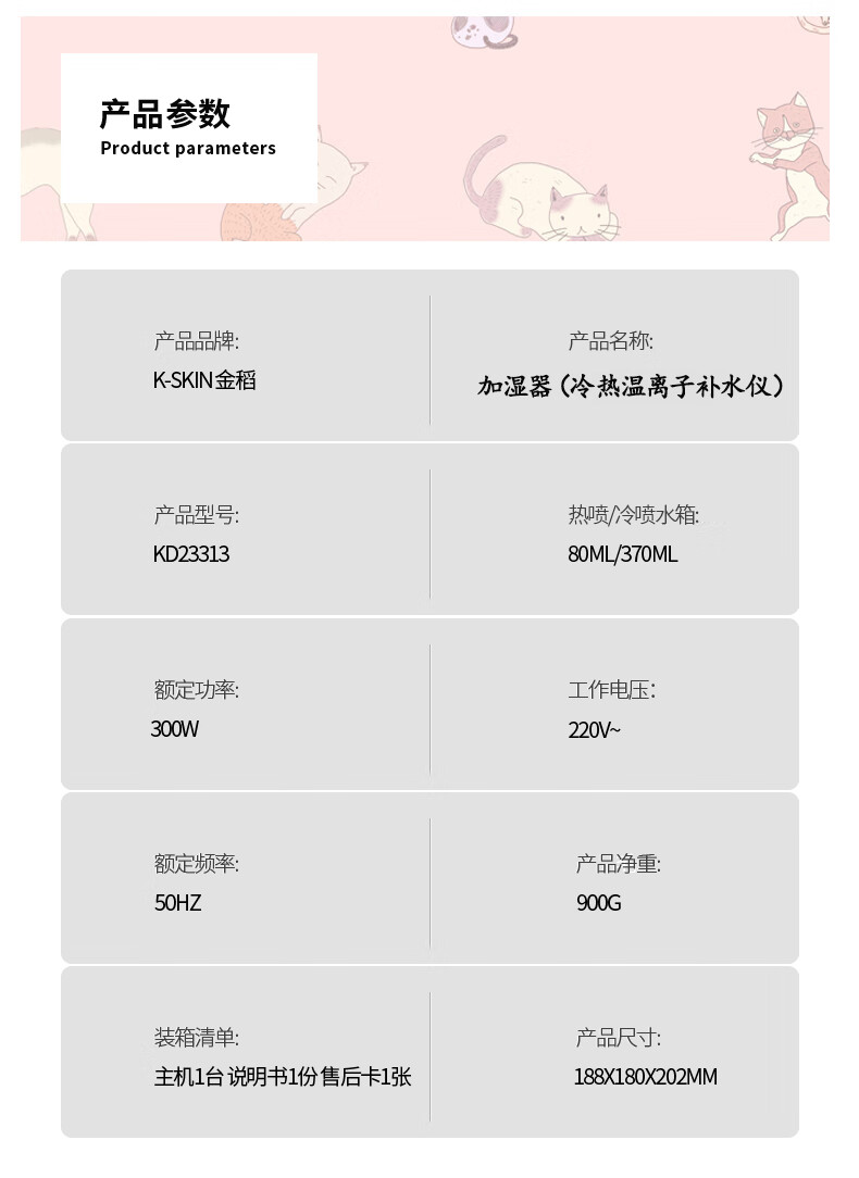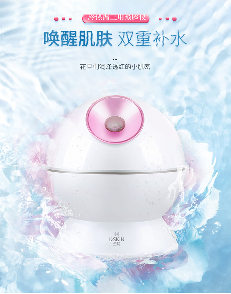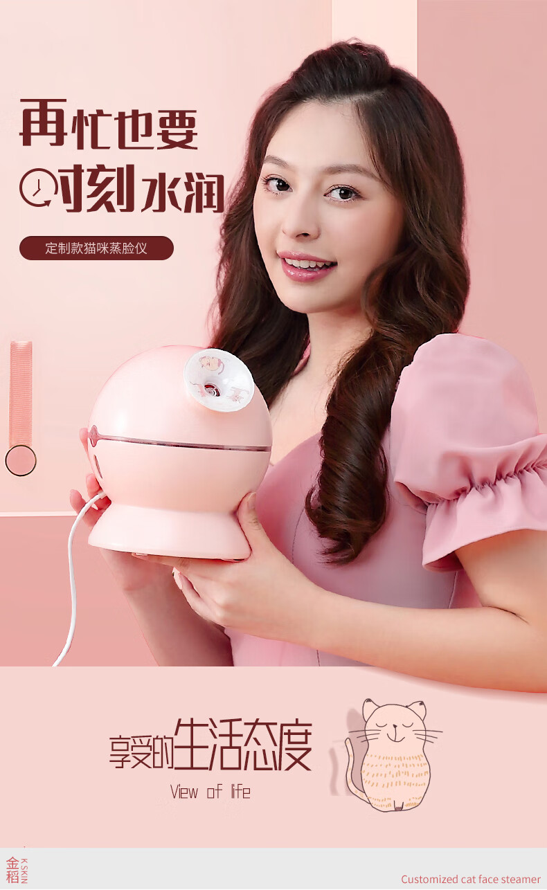 金稻蒸脸仪器喷雾补水仪蒸汽机冷热加湿器冷热温三用面膜搭档双水箱KD23313猫咪款