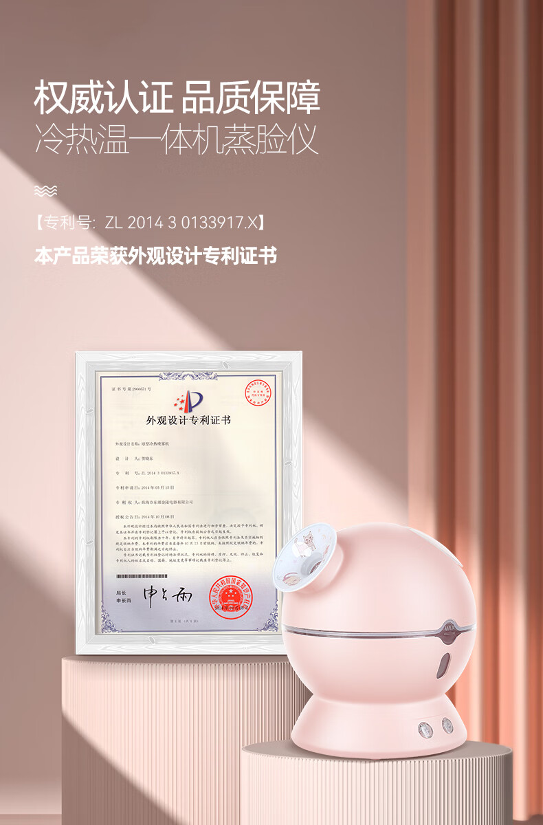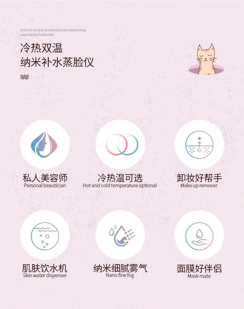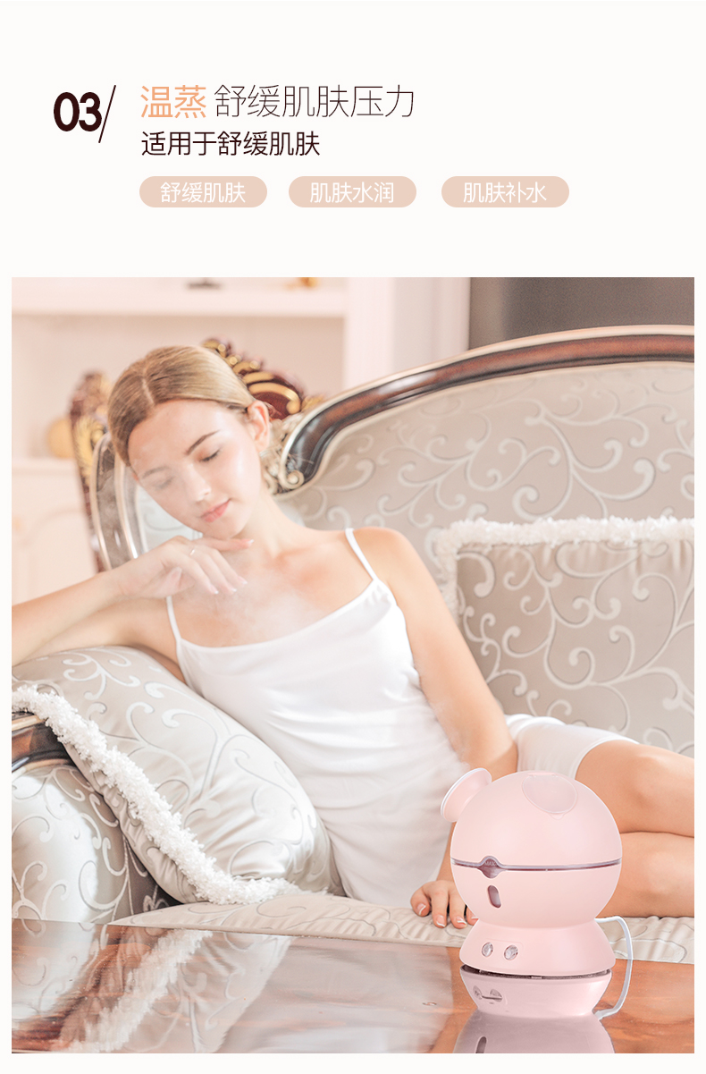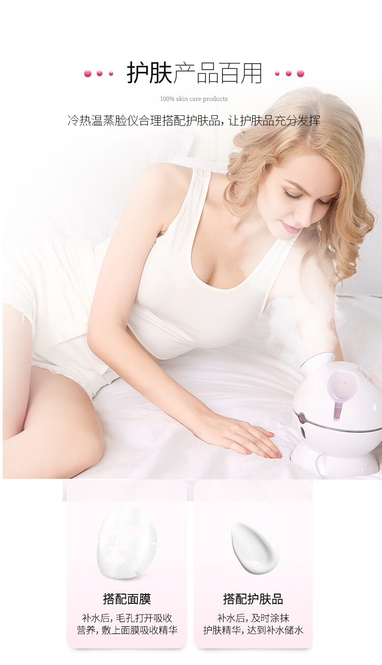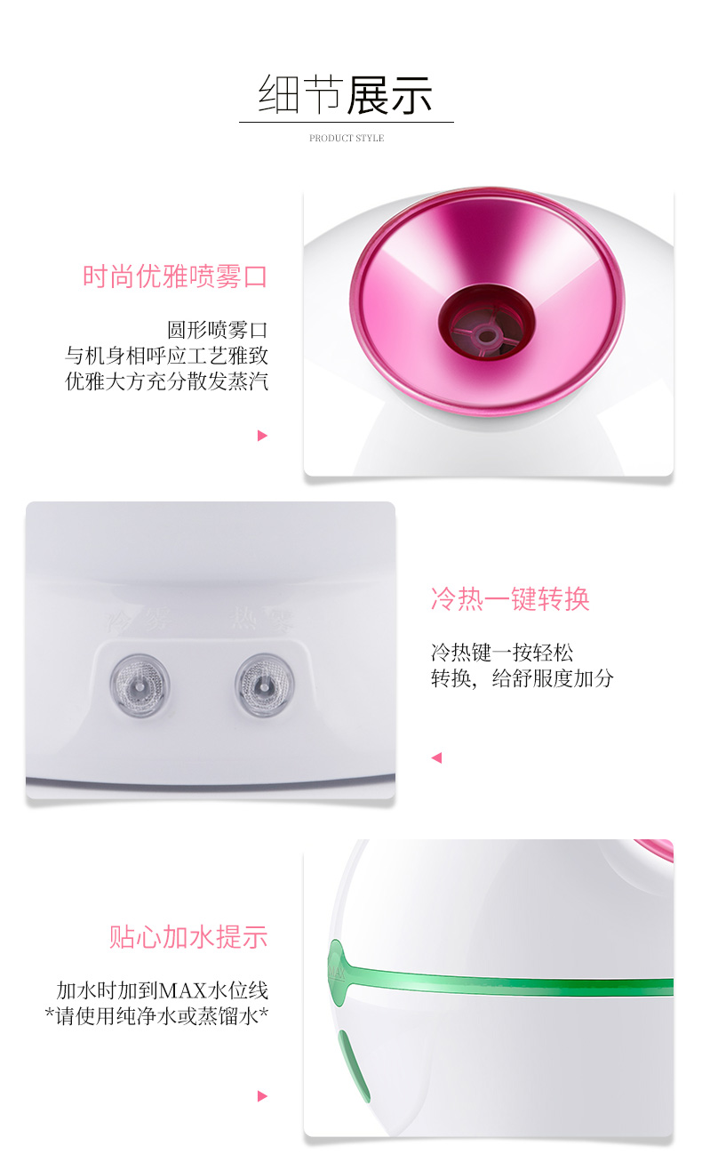 金稻蒸脸仪器喷雾补水仪蒸汽机冷热加湿器冷热温三用面膜搭档双水箱KD23313猫咪款