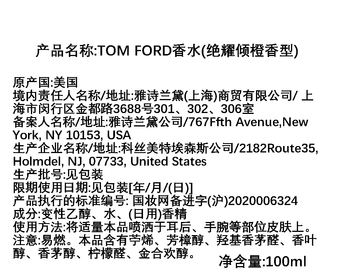 Tom ford汤姆福特/TF 橙花油香水洋槐清新柑橘调香水