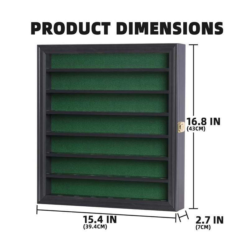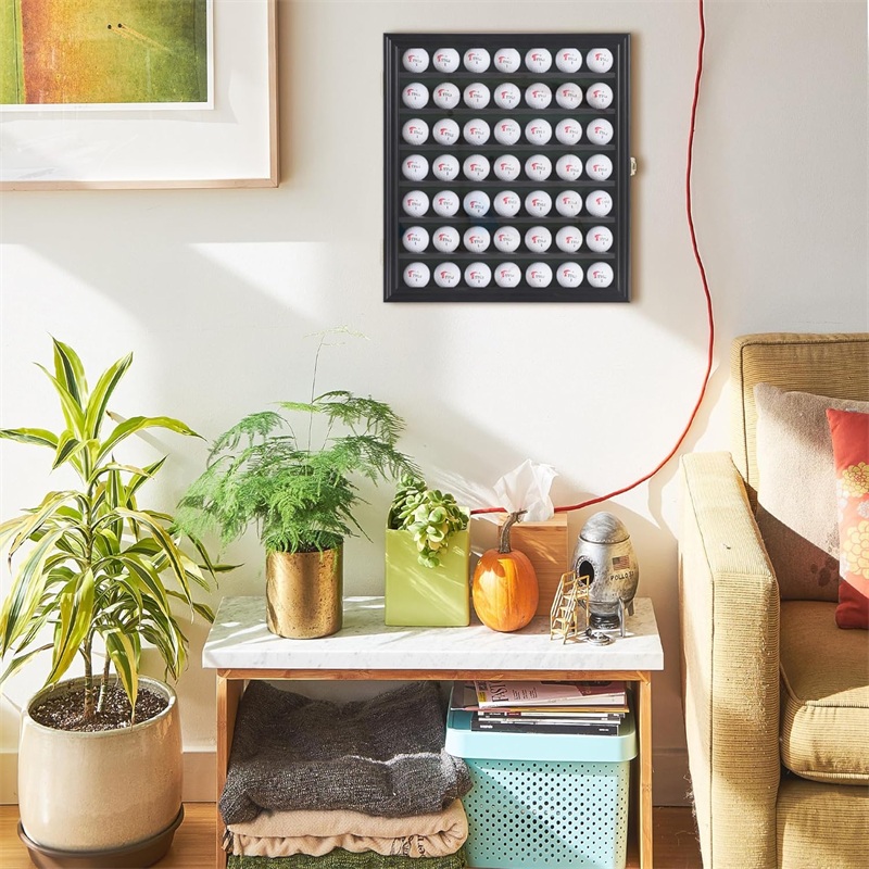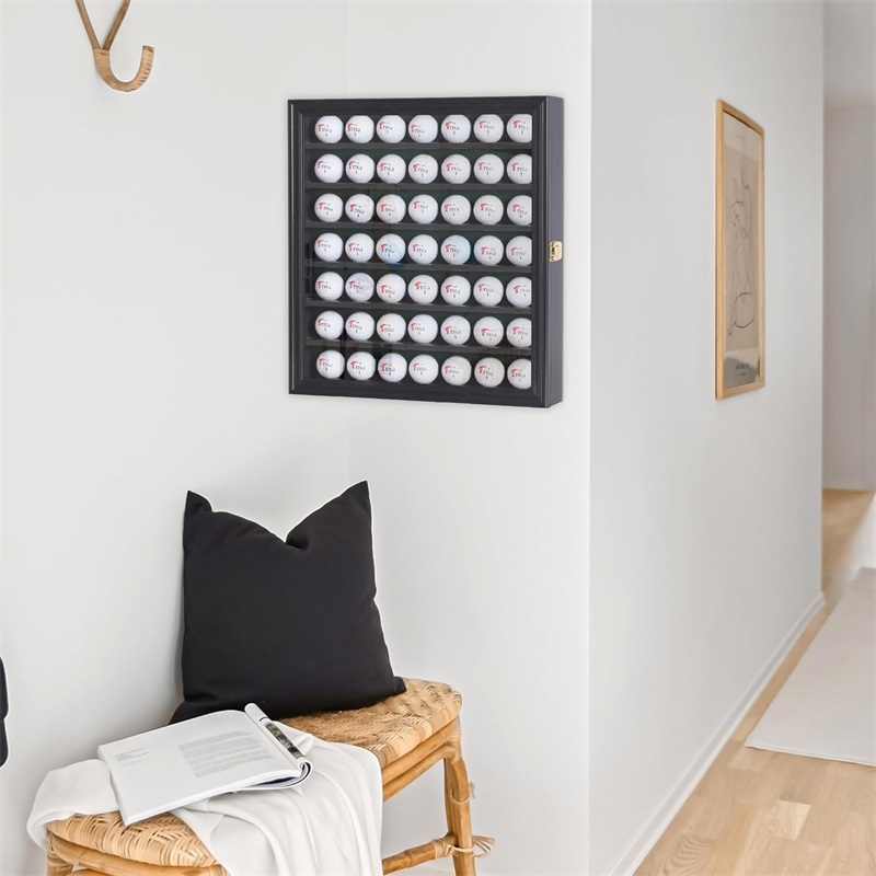 黑色涂层高尔夫球展示柜,尺寸为 16.5 英寸高 X 15.7 英寸宽 X 3 英寸深。这款高尔夫球架配有可锁门,配有镀金防盗锁,防止灰尘并增强安全性。这个柜子可以展示 49 个高尔夫球。注意:高尔夫球不包含在内。