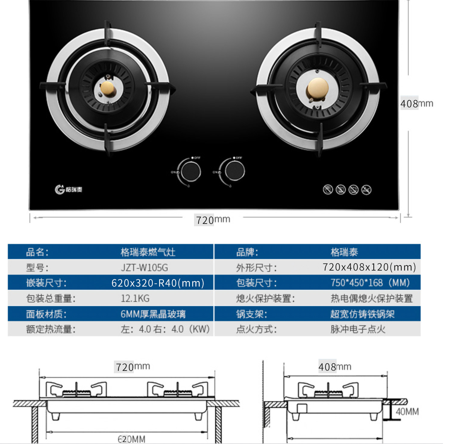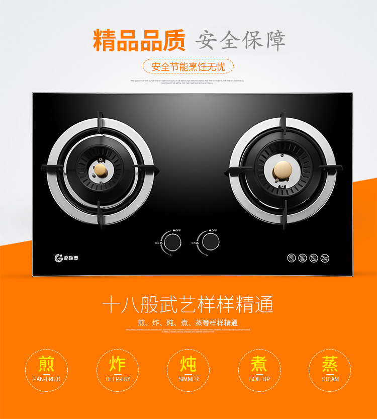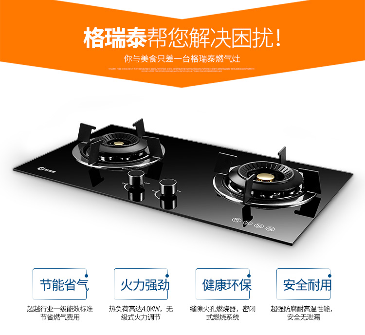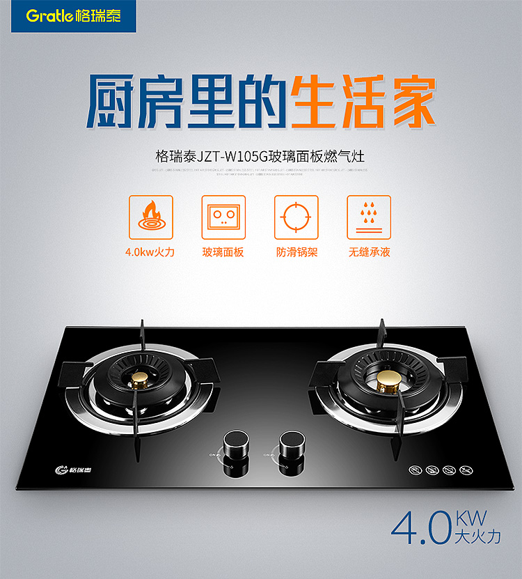 Gratle JZT-W105S JZT-W105G 天然气双灶台嵌两用不锈钢(钢化玻璃)燃气灶