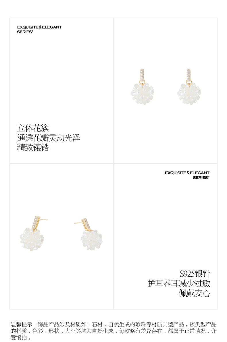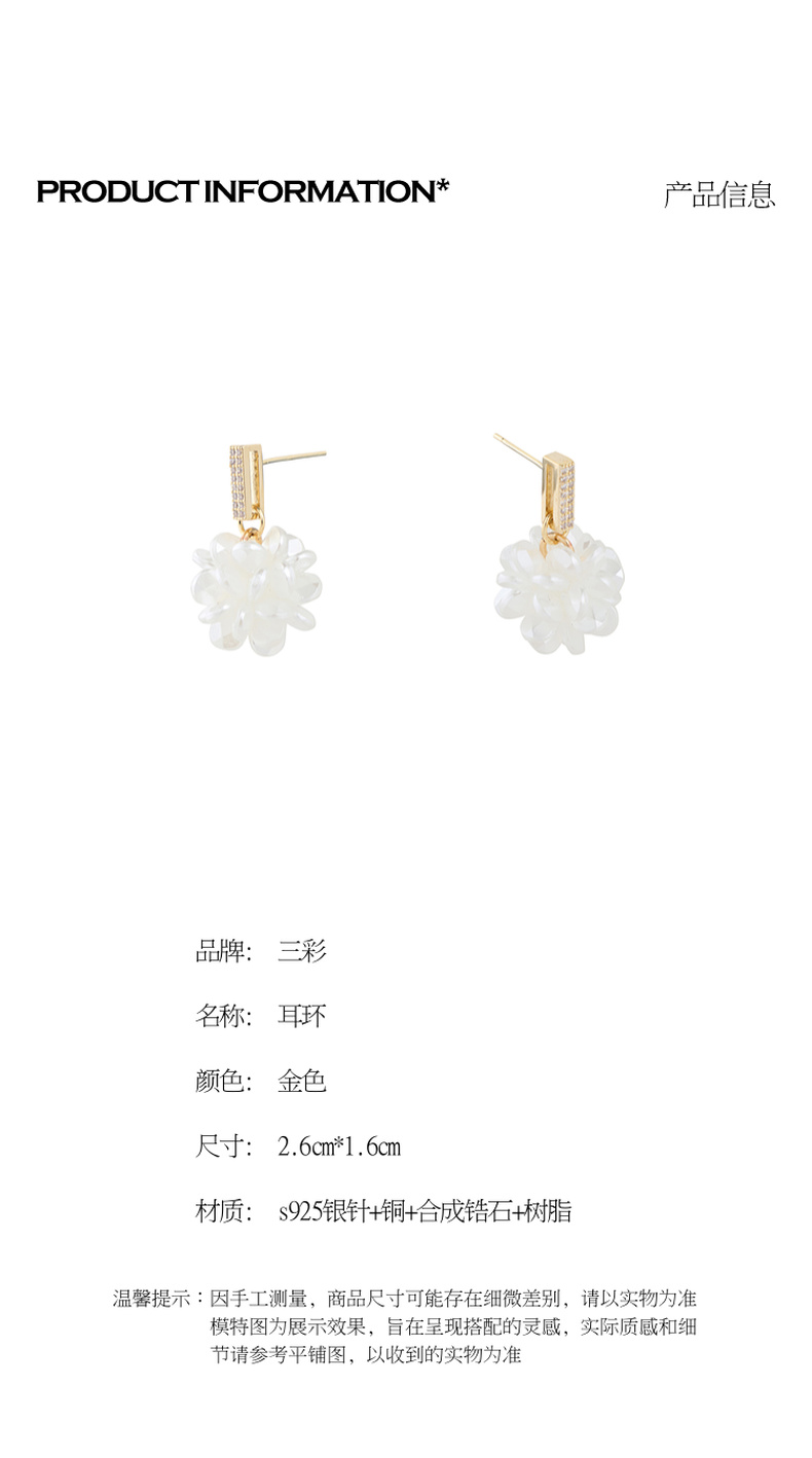三彩2026新款立体花簇轻奢镶锆耳环s925银针法式温柔优雅约会