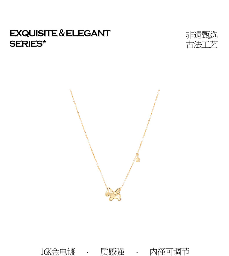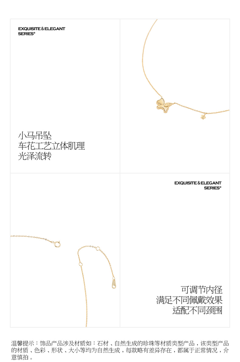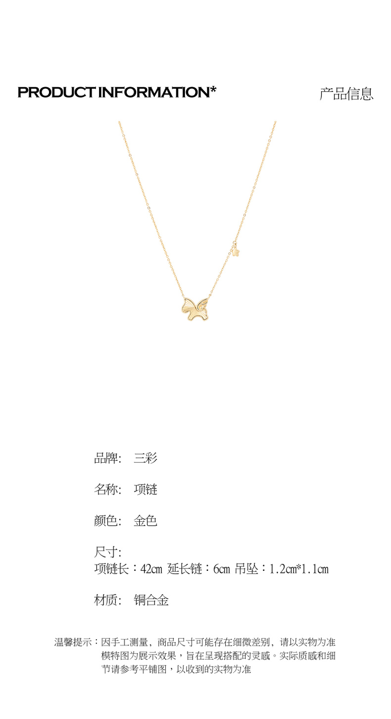 三彩2026新款车花小马吊坠项链法式轻奢甜美立体纹理星星通勤约会