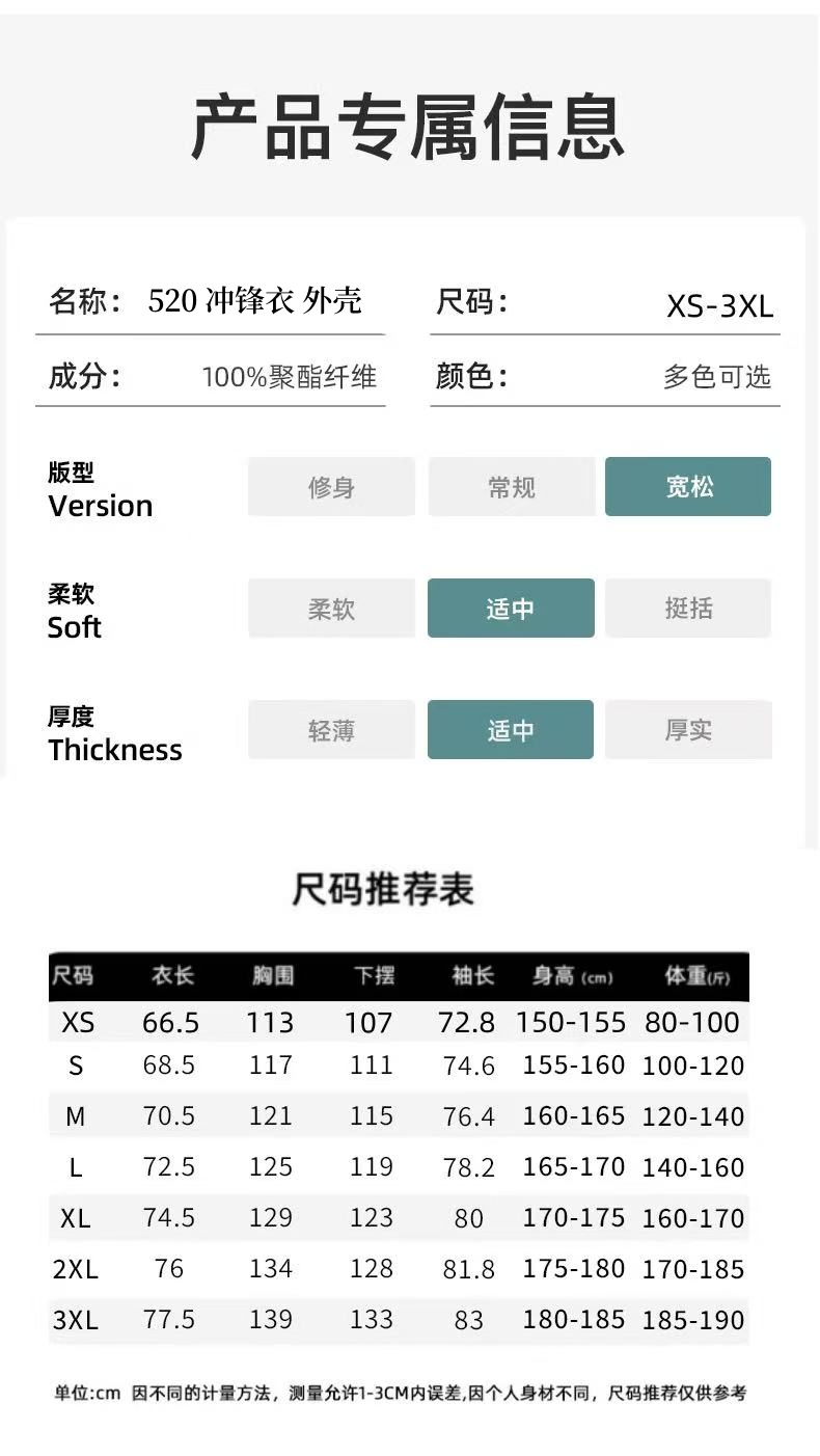 SWISS MILITARY瑞士军工/ 情侣款冲锋衣男款女款外套 防水/防风 时尚百搭外套 520 外壳