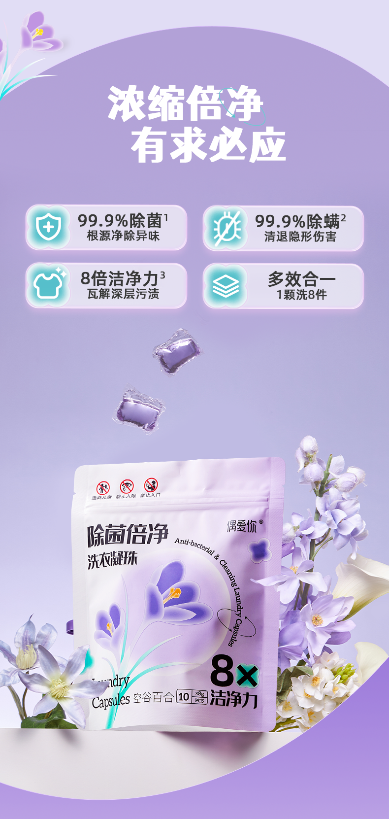 【安护倍净】偶爱你除菌倍净空谷百合洗衣凝珠旅行装