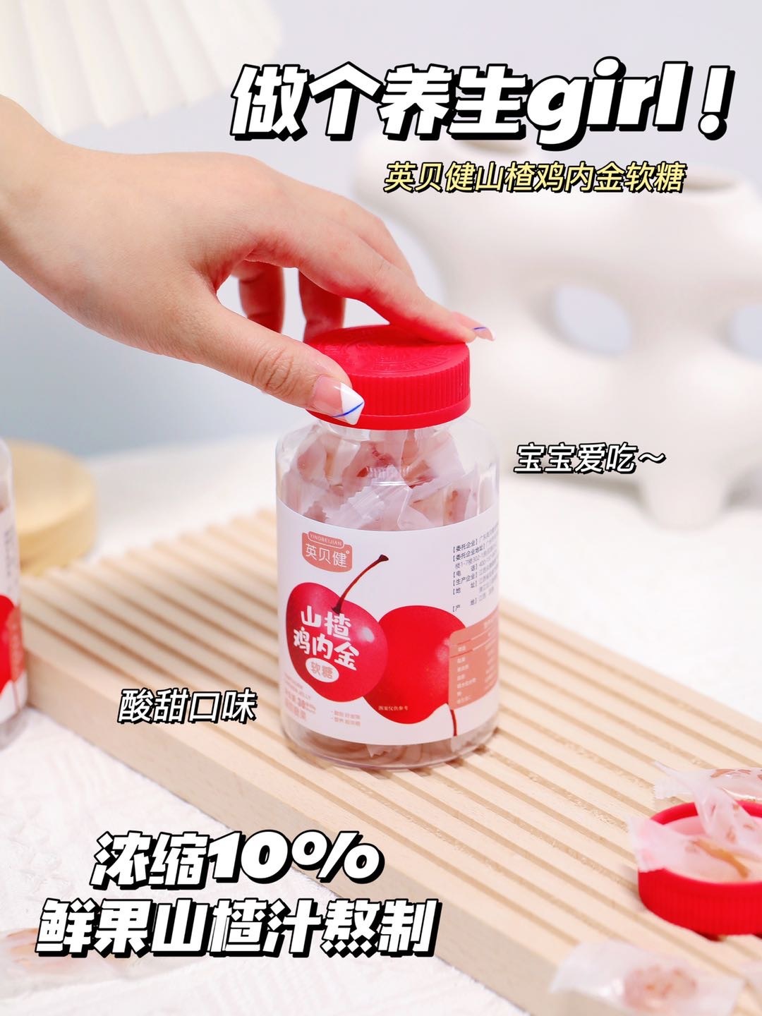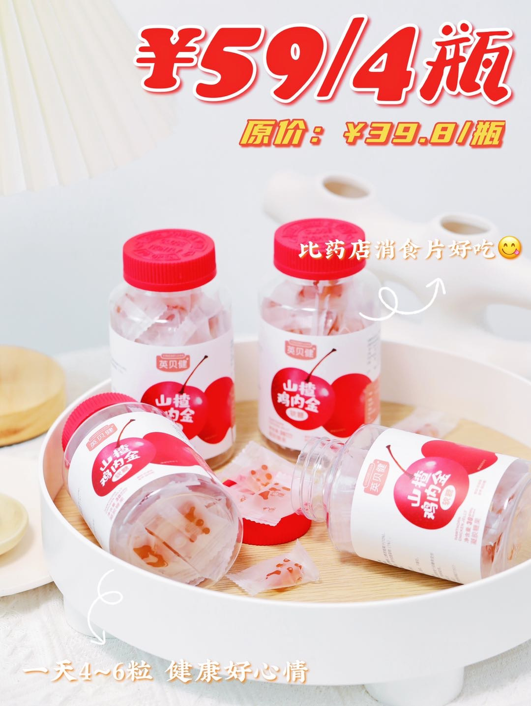 【英贝健山楂鸡内金软糖】现货🕐 🕐 🐮 🔥,酸酸甜甜嚼一嚼 开团价4瓶仅需要59元❗ ❗ 👍 👍 实际有咀嚼能力即可吃
