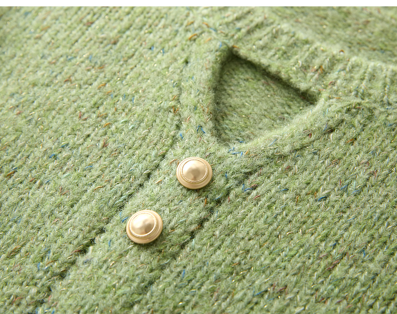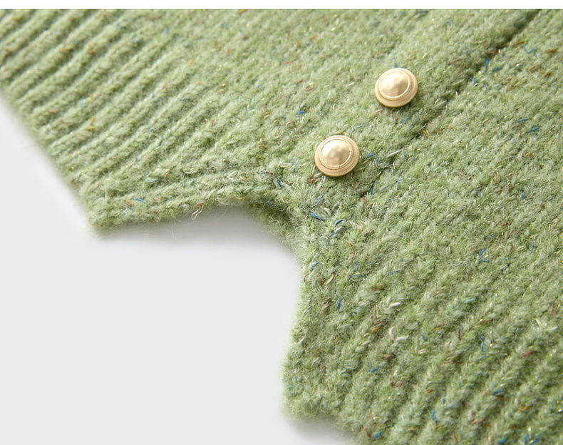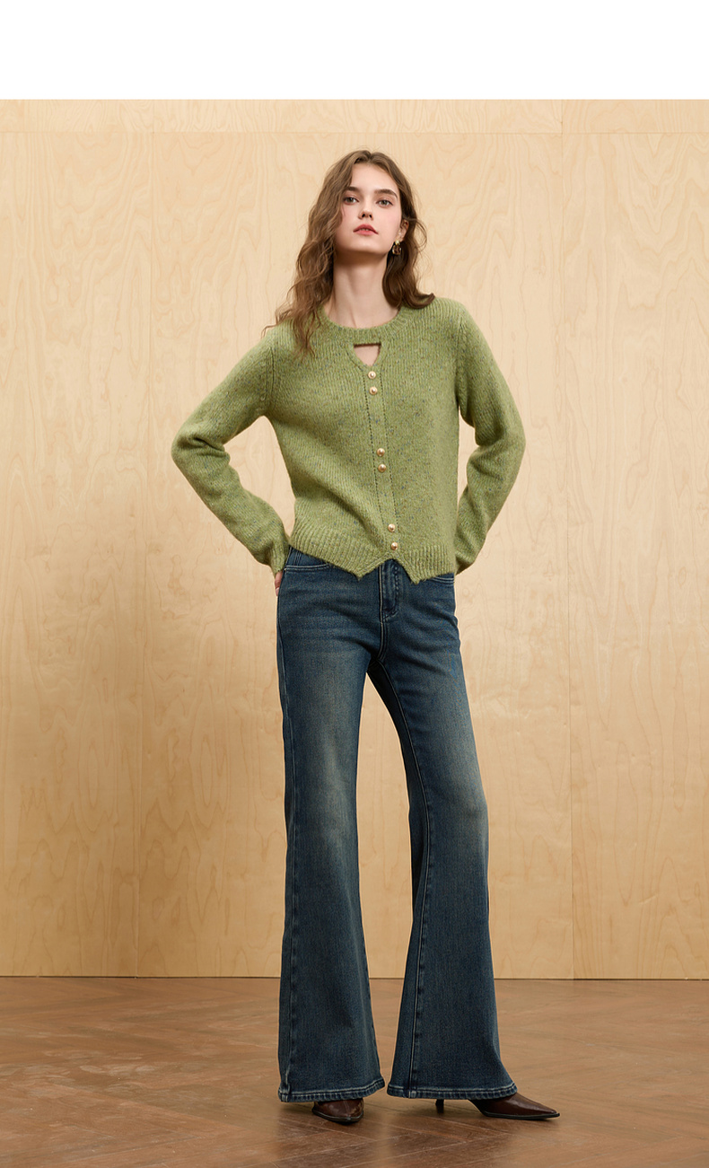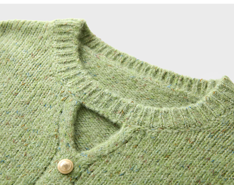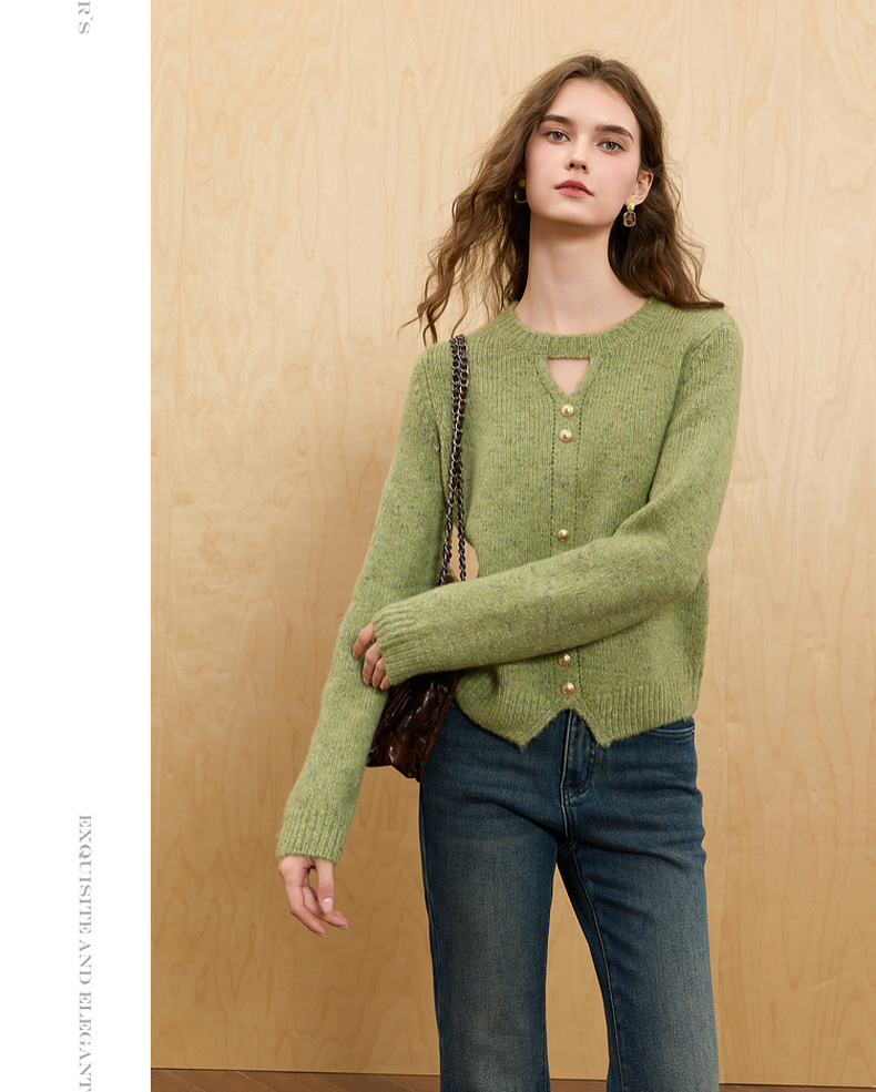 三彩2025冬季新款镂空圆领针织衫长袖套头上衣慵懒休闲简约气质S