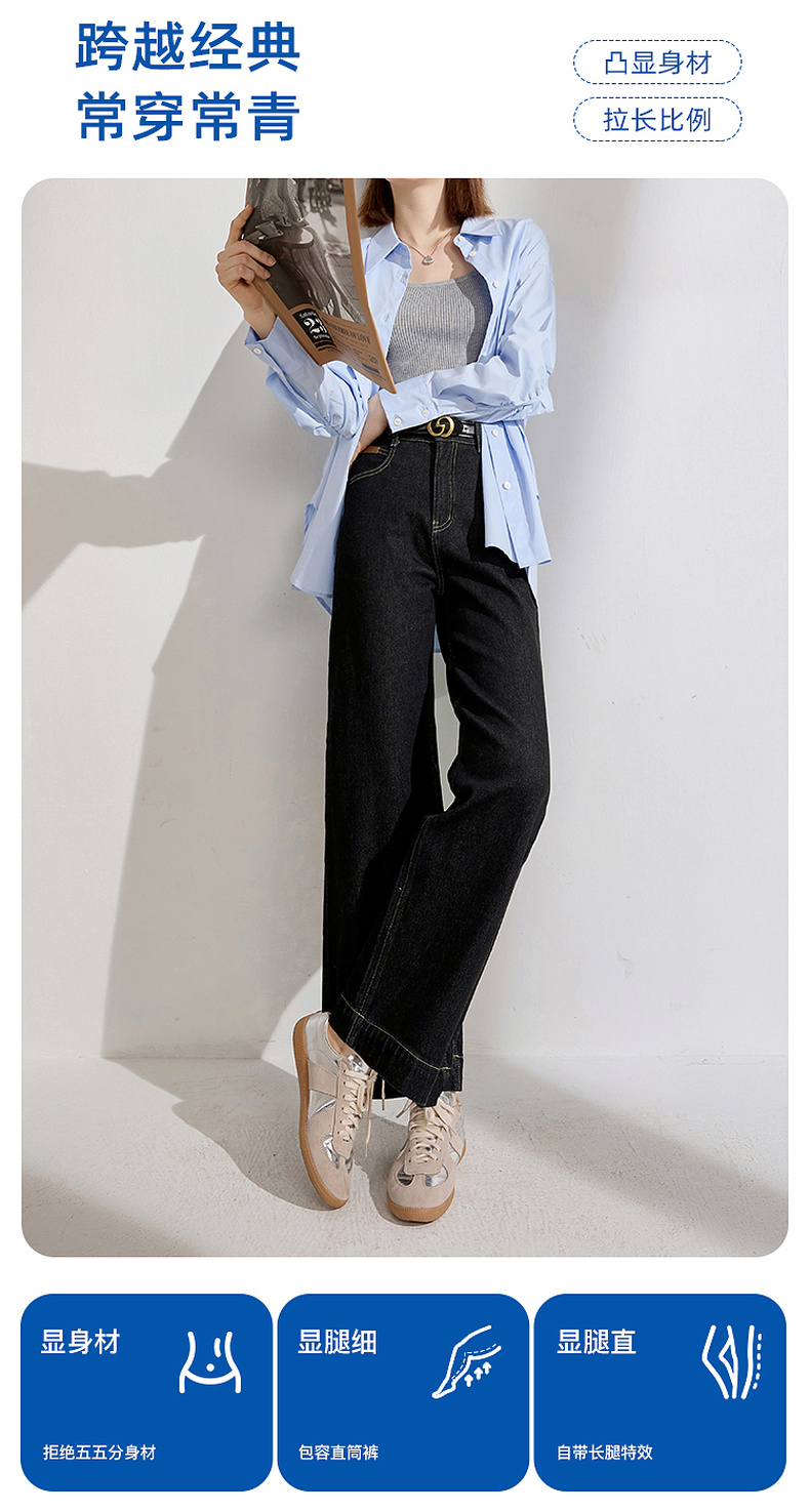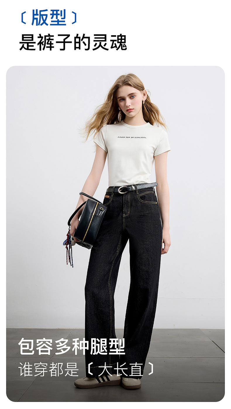 三彩2026春季新款牛仔裤长裤休闲直筒裤宽松裤子显瘦复古M