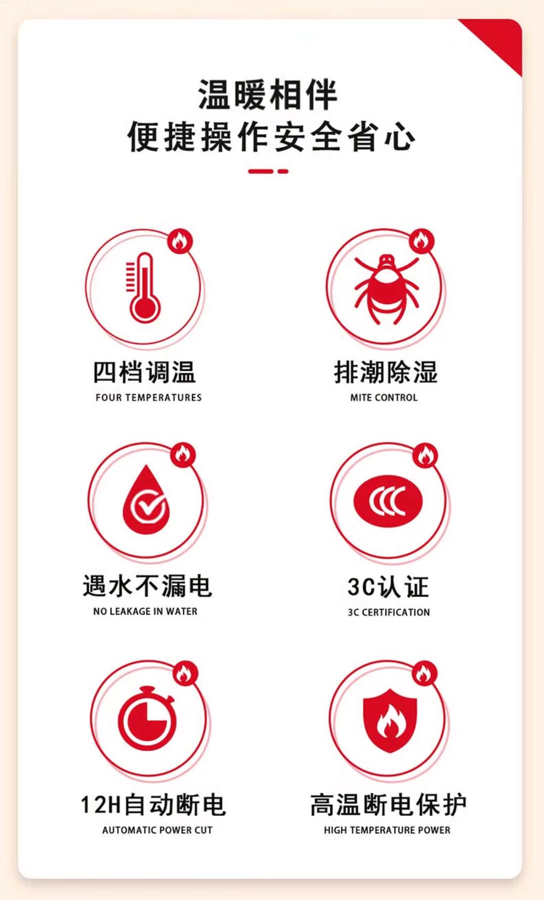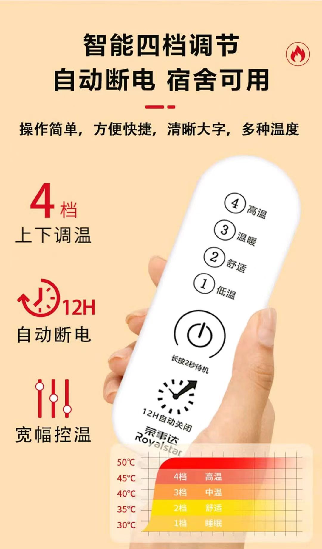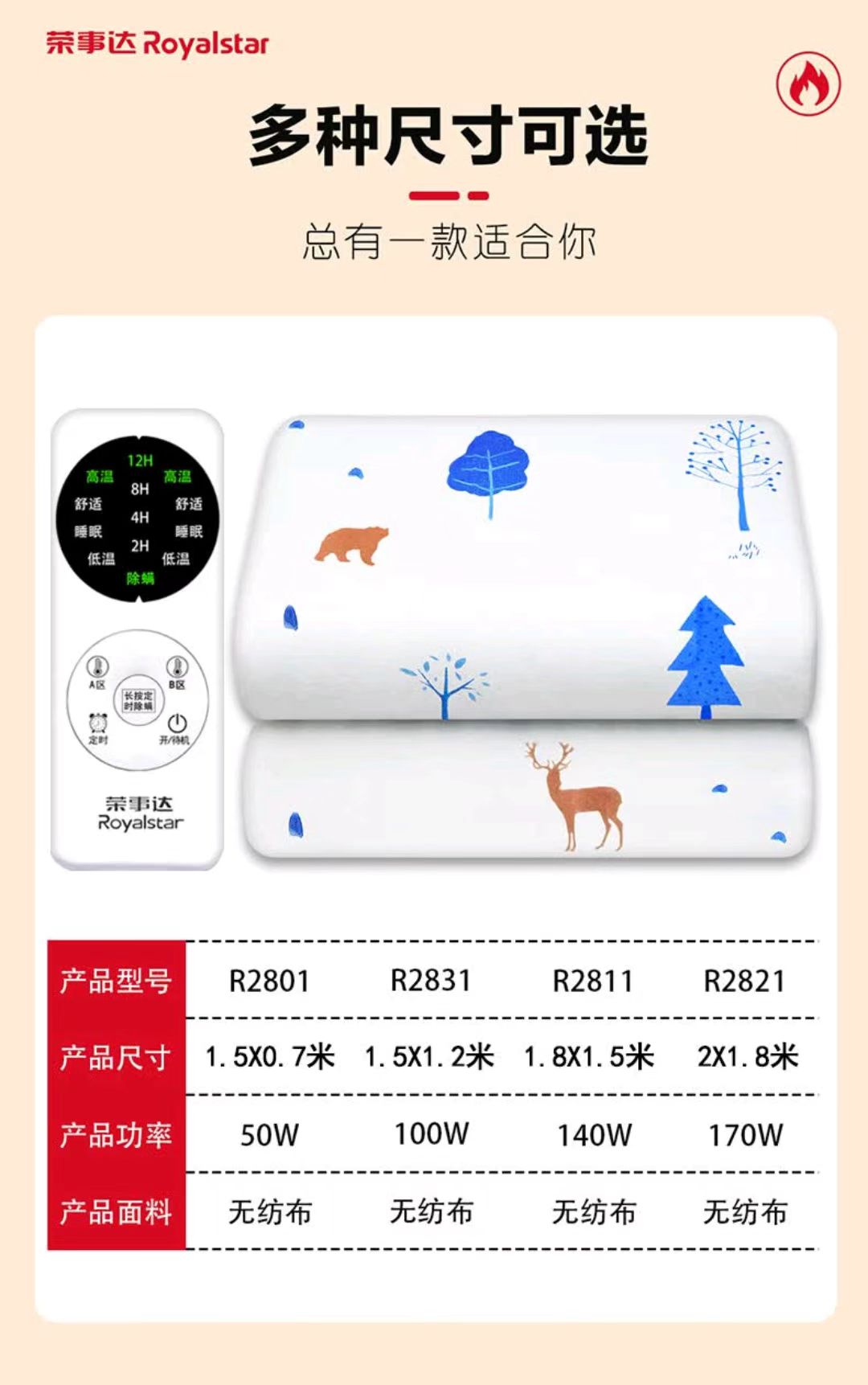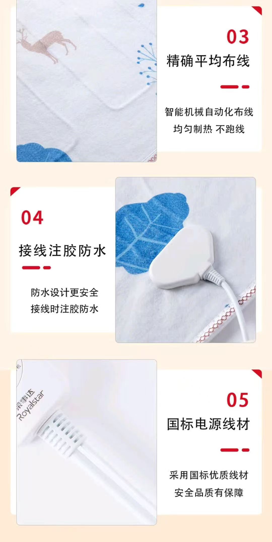 荣事达单人四档调温12H自动断电 速热单控无纺布电热毯电褥子 R2801-150X70CM 四档自动断电