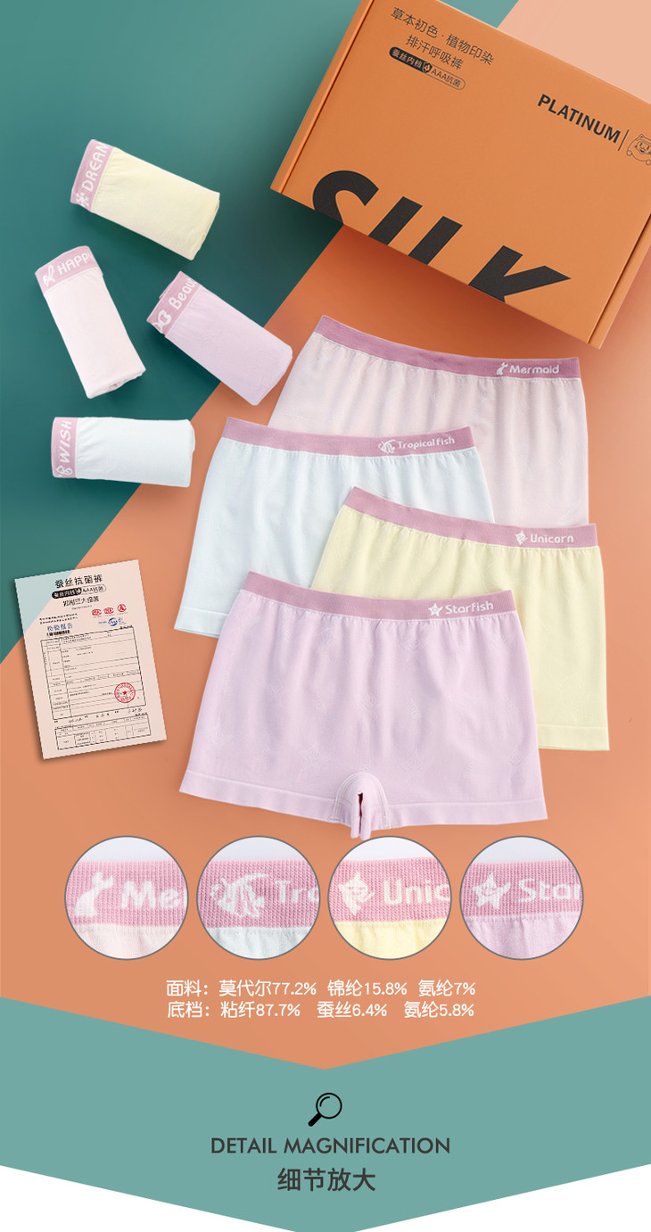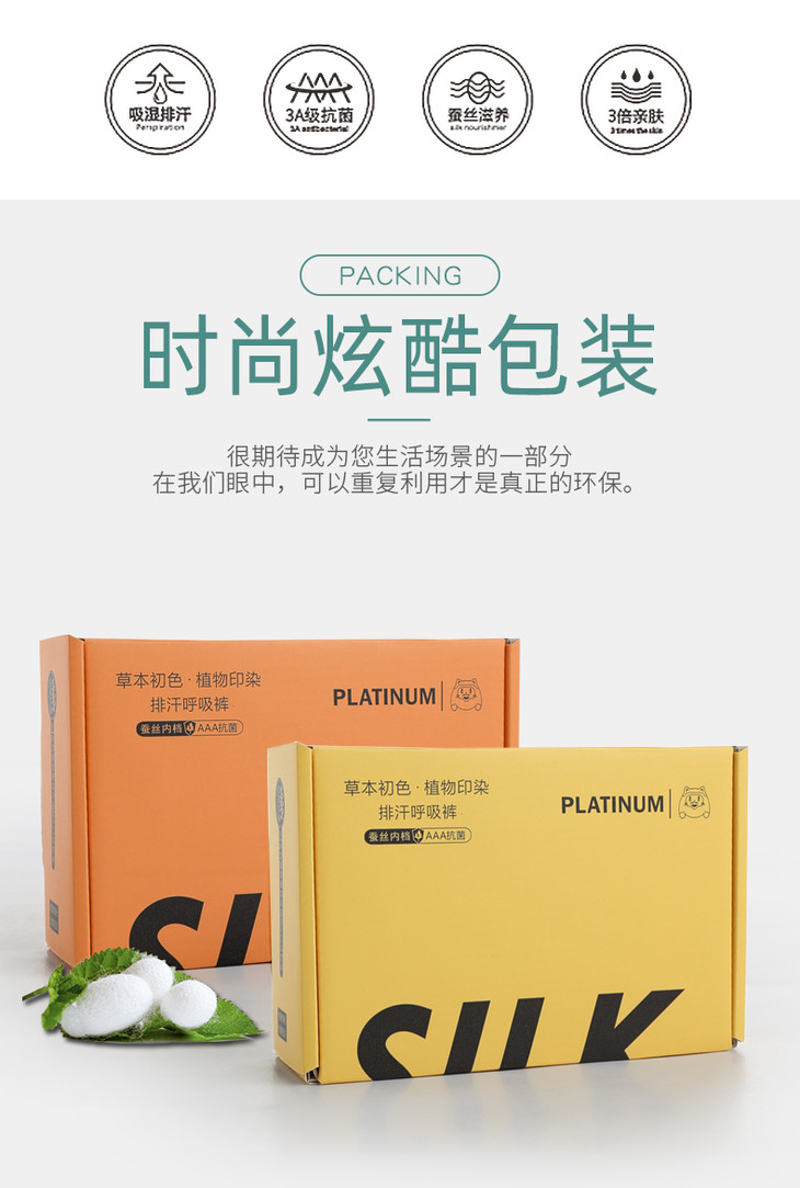 裸氨无缝60s透气棉 ,6A级蚕丝底档,质地轻盈柔软,无缝车线,穿着轻松无勒感。 高弹性·无刺激·舒适·健康。 内裤底档:精选桑蚕丝