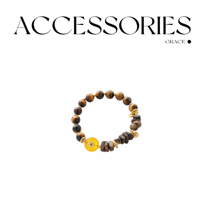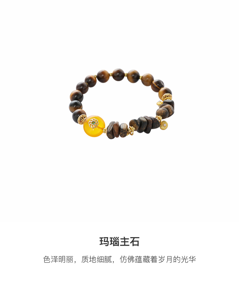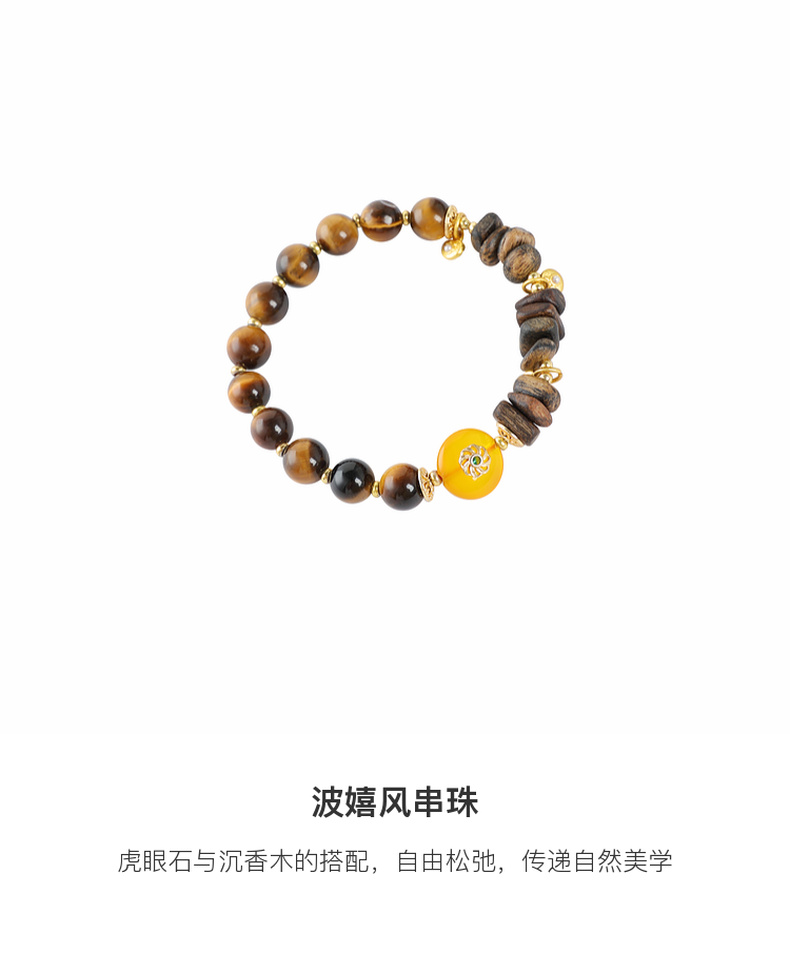 三彩2025新款波嬉风玛瑙手串手链中性风虎眼石沉香木自然美学旅游