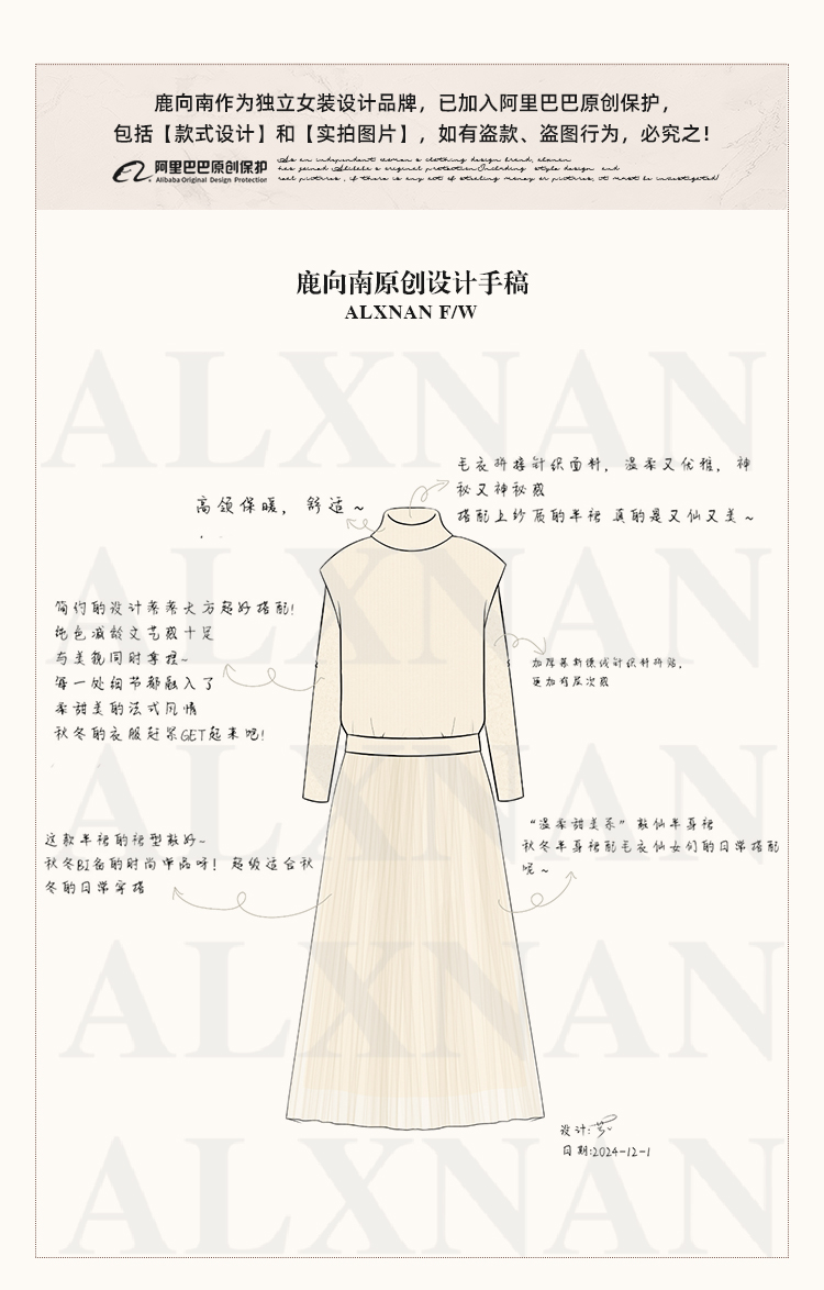 【65折秒杀】鹿向南「冬日告白」假两件毛衣半身裙套装2024新款女装秋冬两件套QYM002432/QYM002425