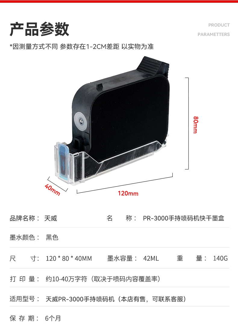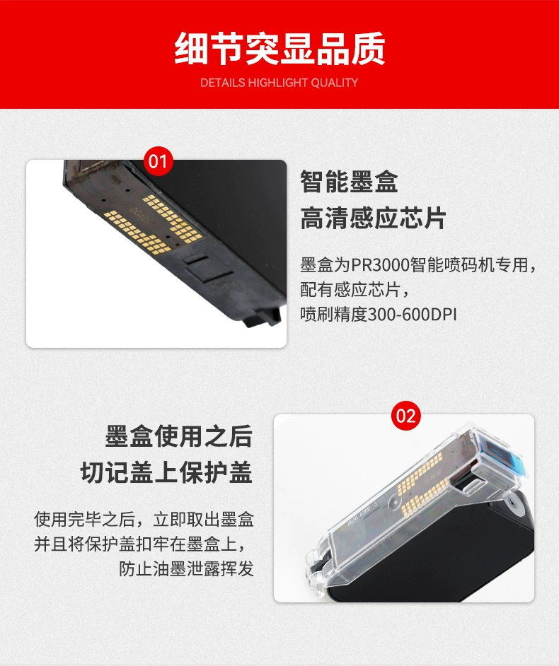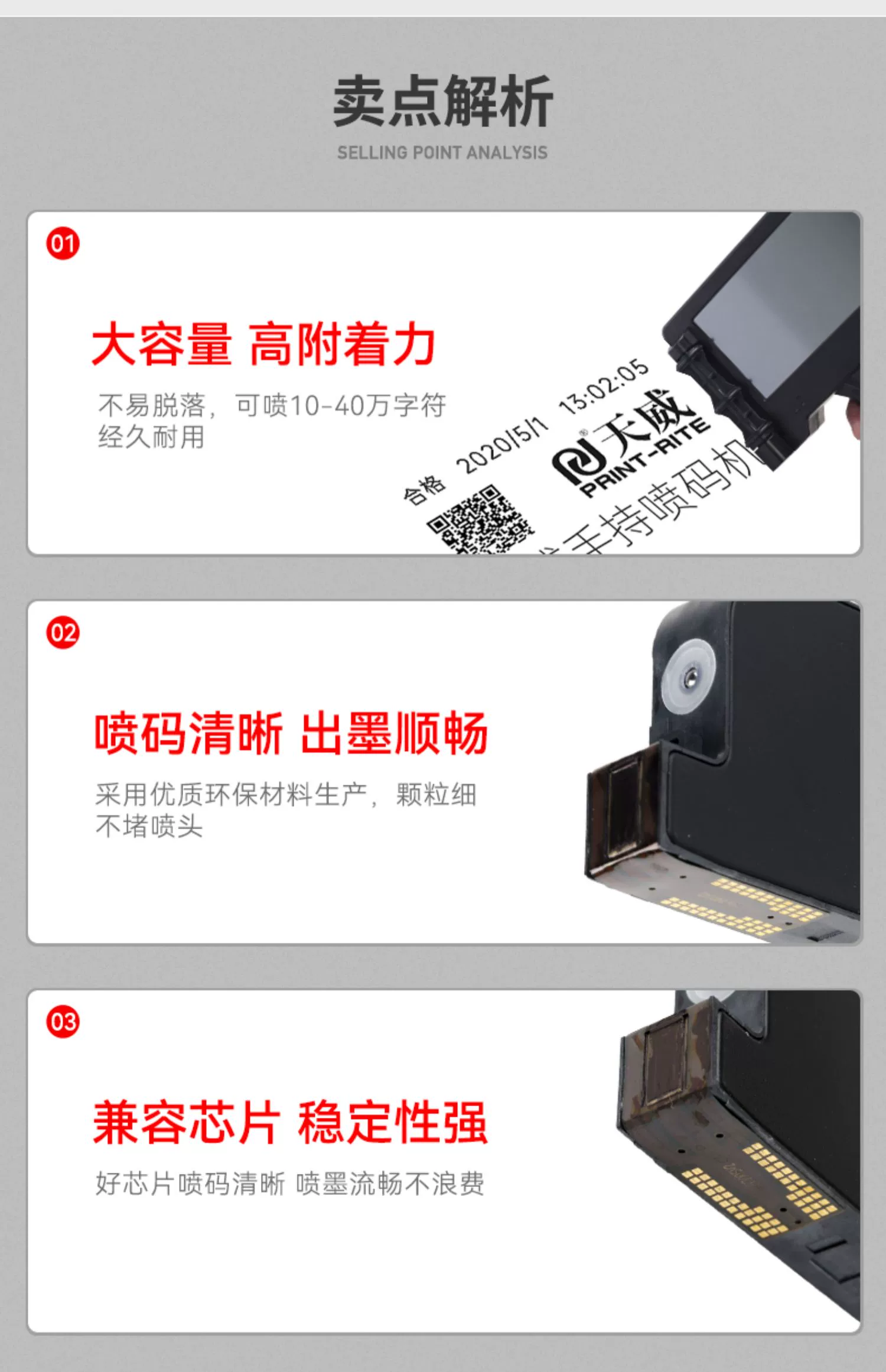 天威PR3000专用墨盒 快干黑色高附着力喷码机 原装喷头一体式手持通用半寸小喷头PR3000快干墨盒