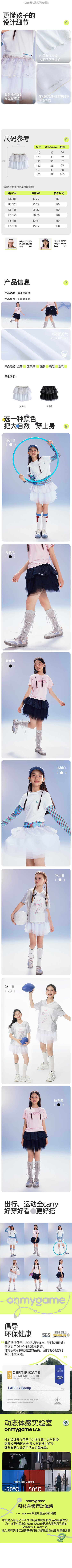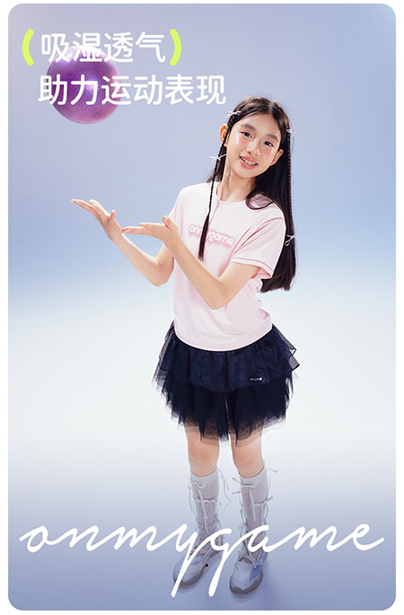 onmygame【轻舞风琴】女童短袖t恤儿童百褶运动上衣夏季2024新款