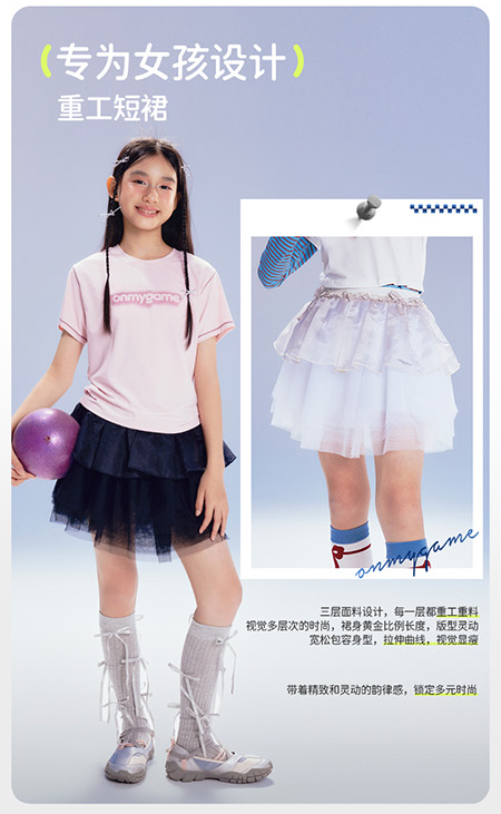 onmygame【运动芭蕾裙】女童裙子儿童半身裙千禧风短裙2025年新款