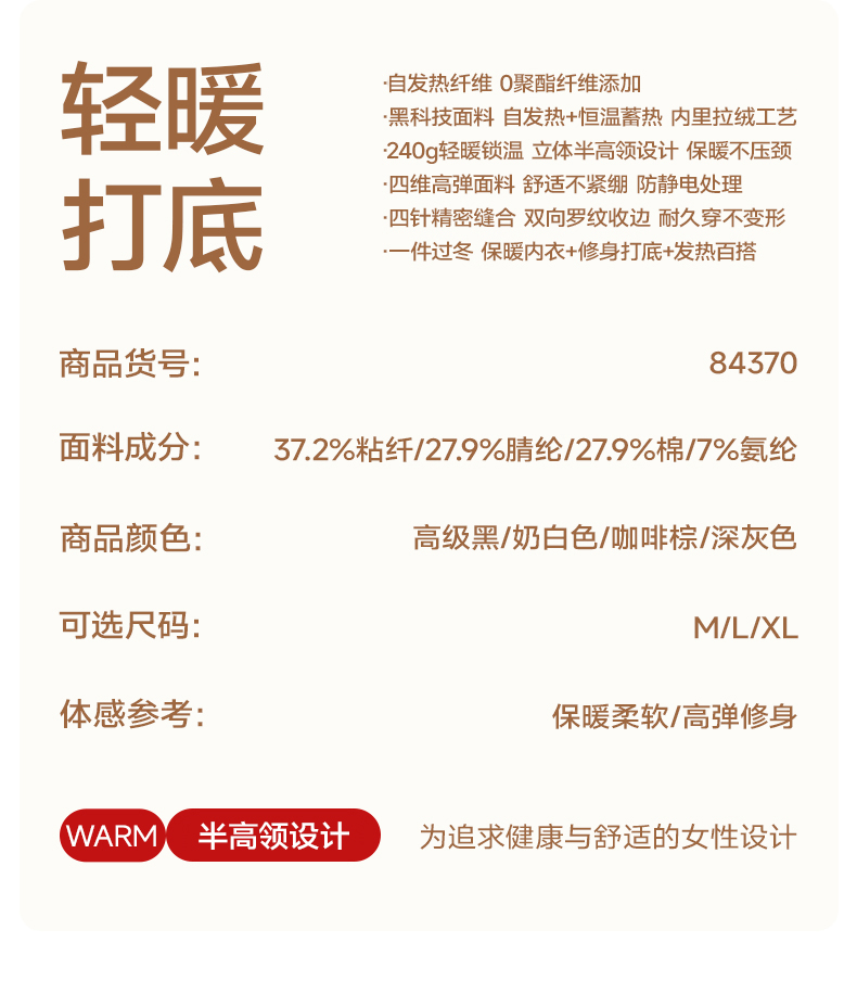 YXKISSY氧心铂金晴纶羊绒蚕丝蛋白肌底衫