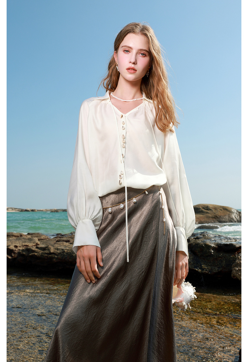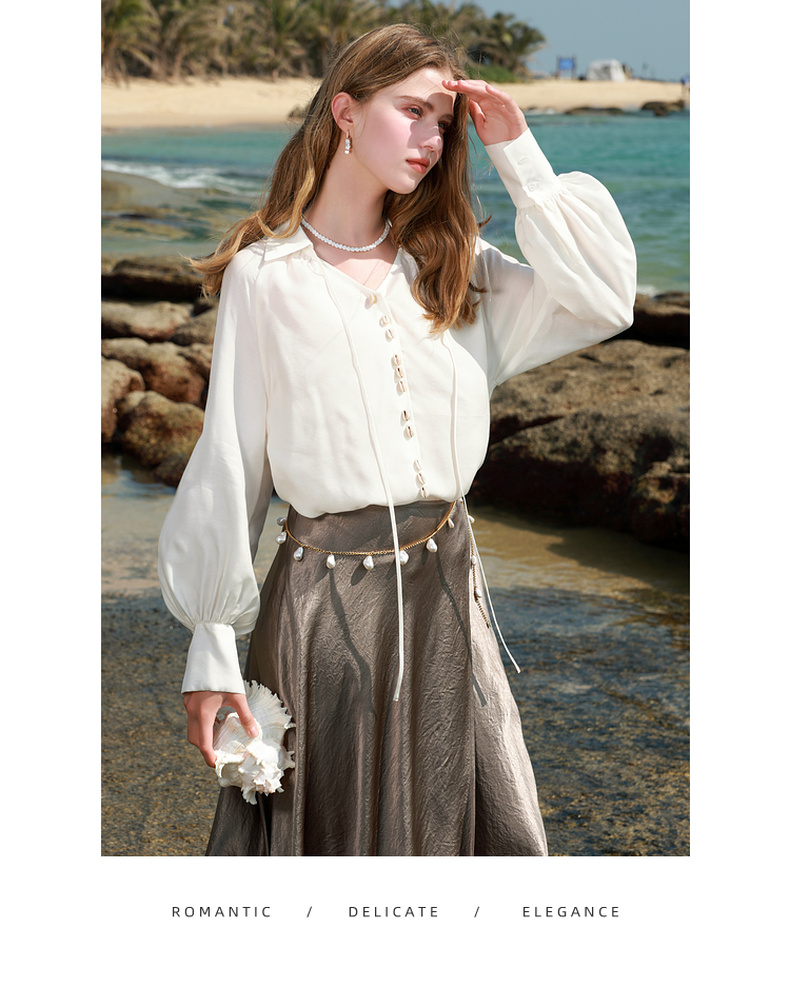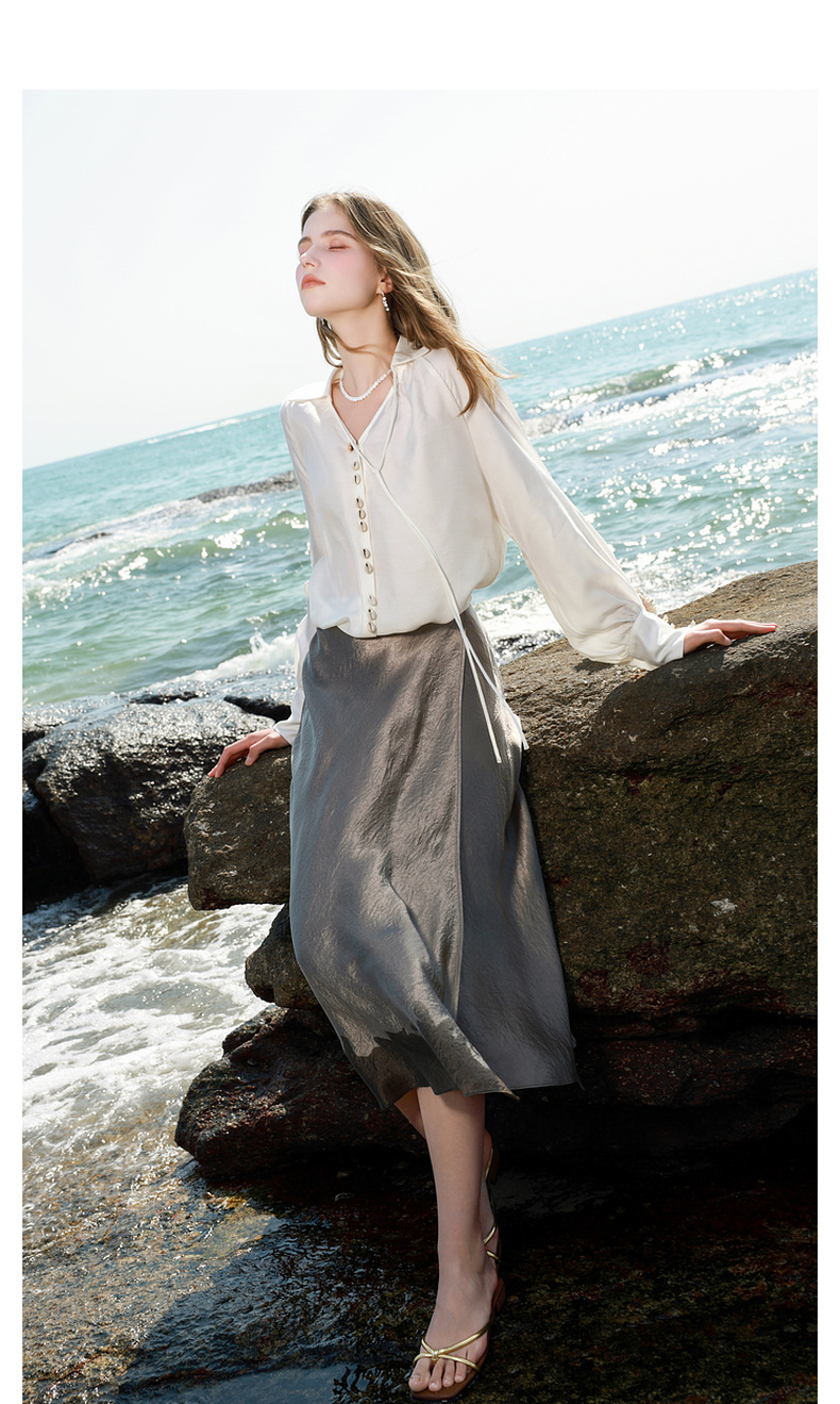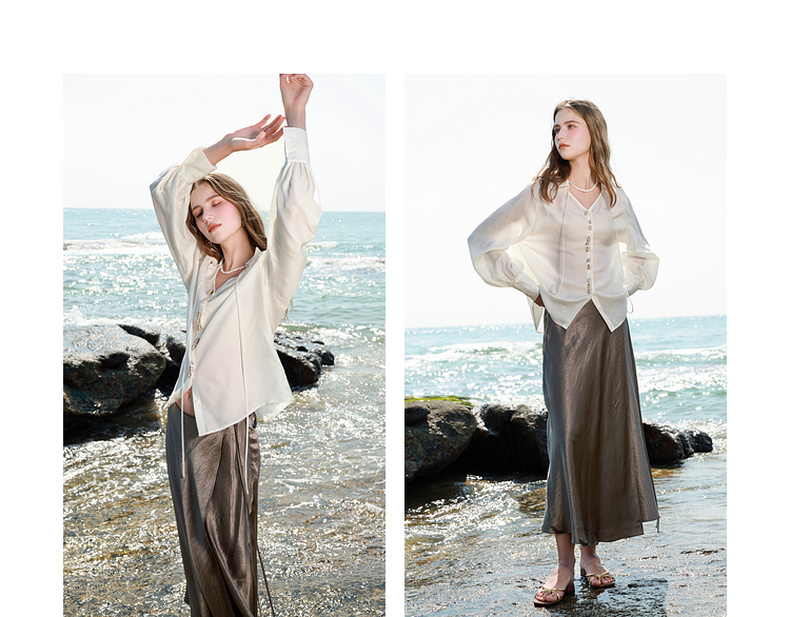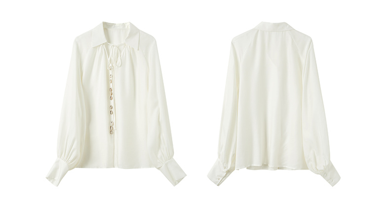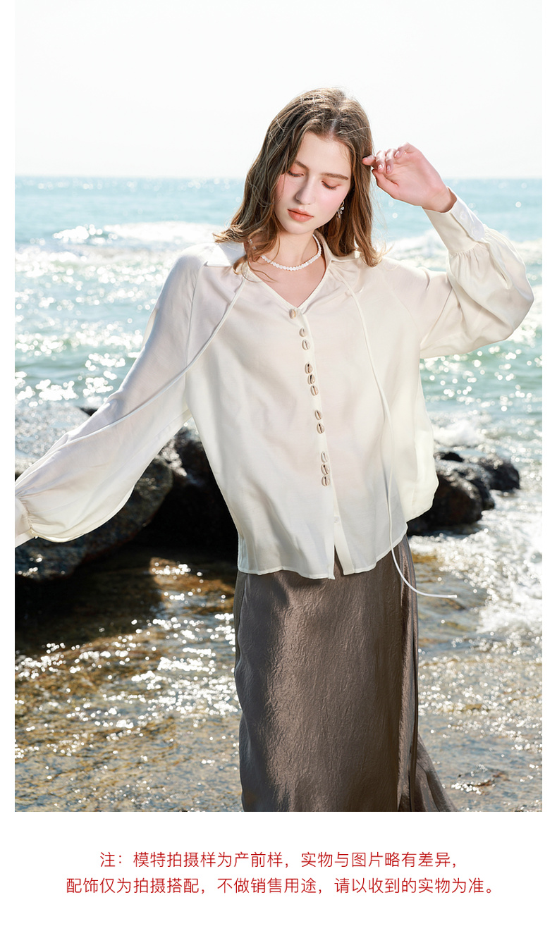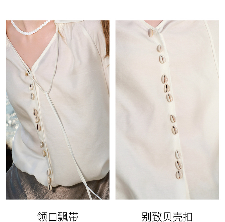 三彩2025春季新款莱赛尔衬衫贝壳扣轻薄衬衣宽松上衣飘带M
