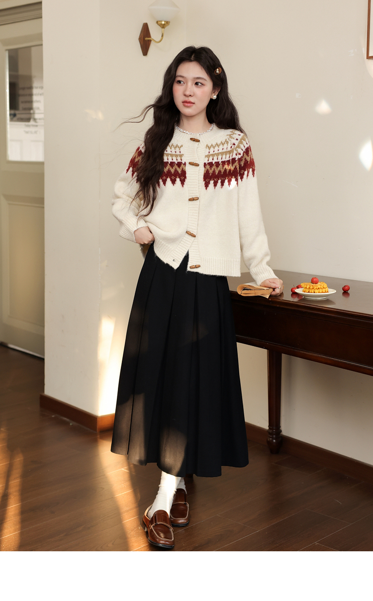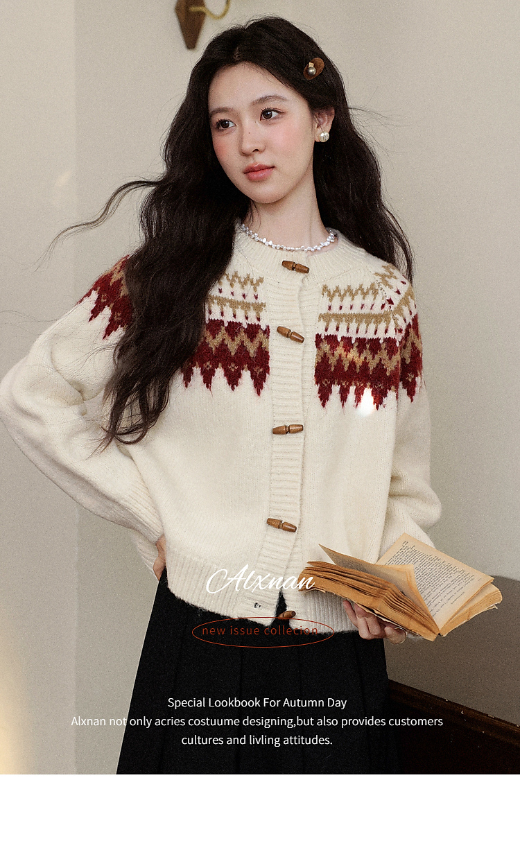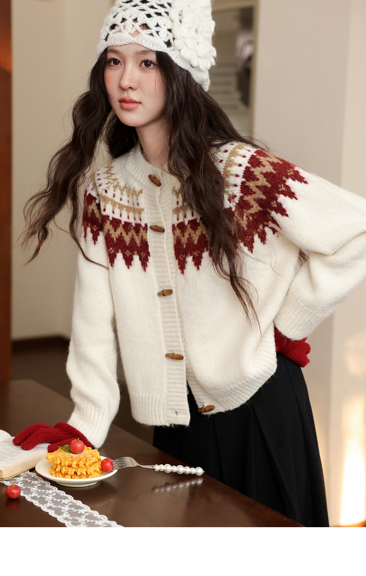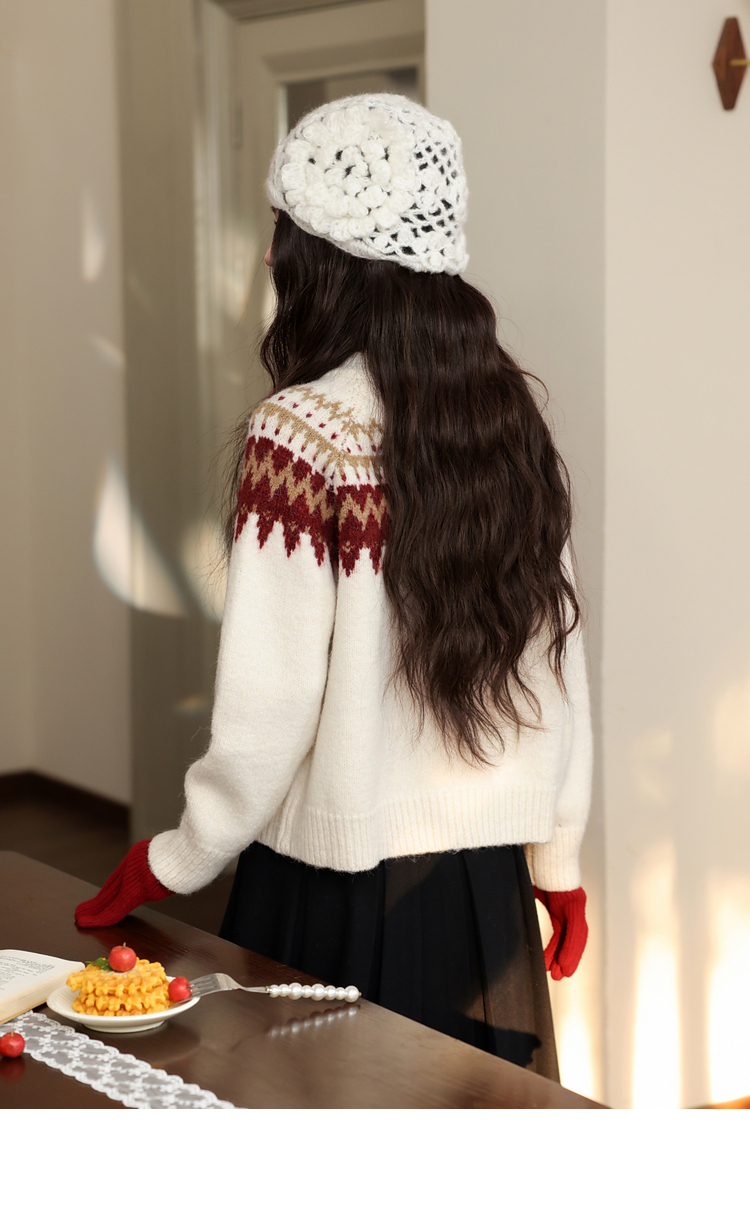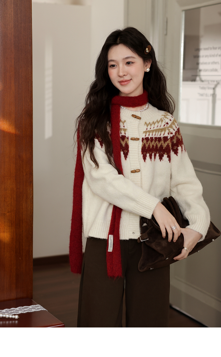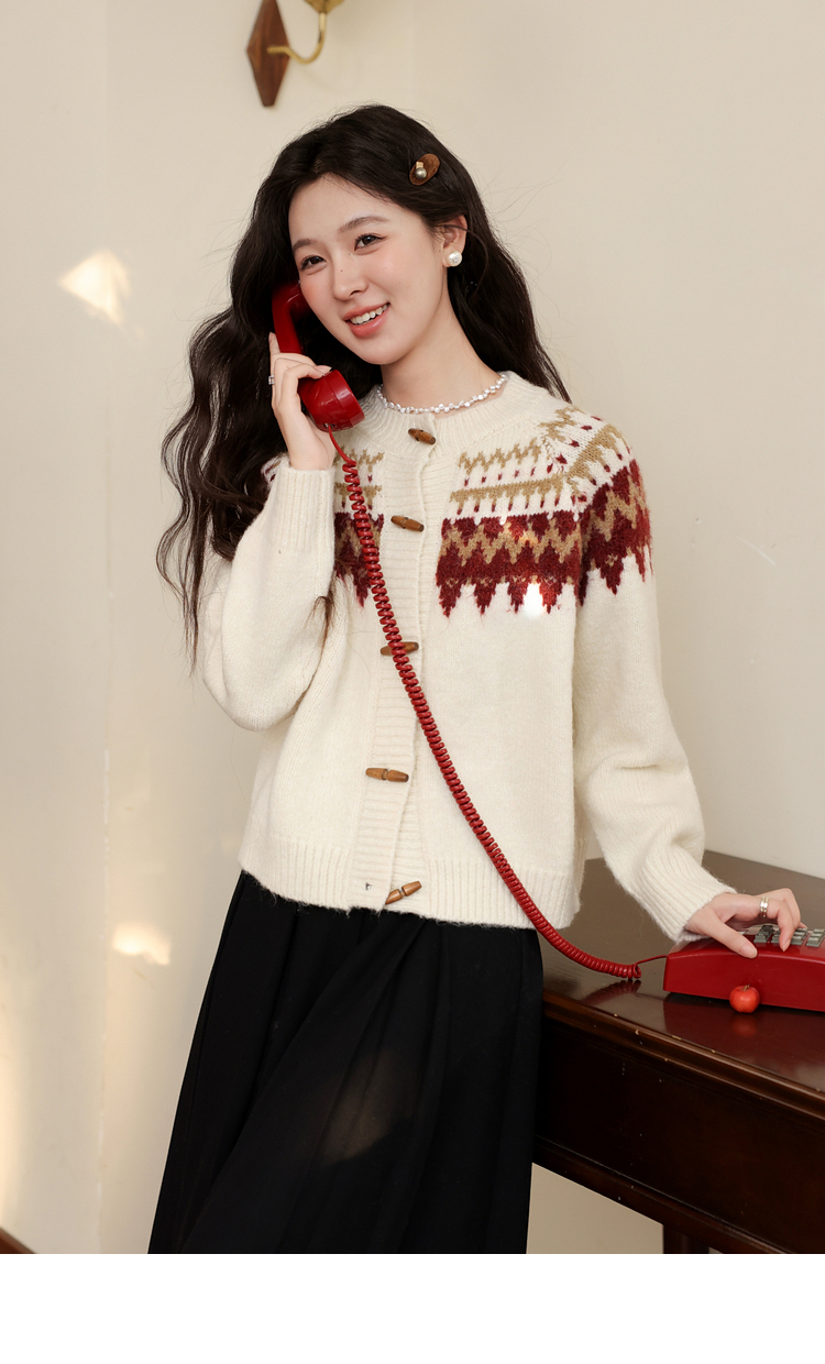 鹿向南「费尔岛小镇」杏色长袖开衫毛衣秋冬季时尚宽松外搭上衣女