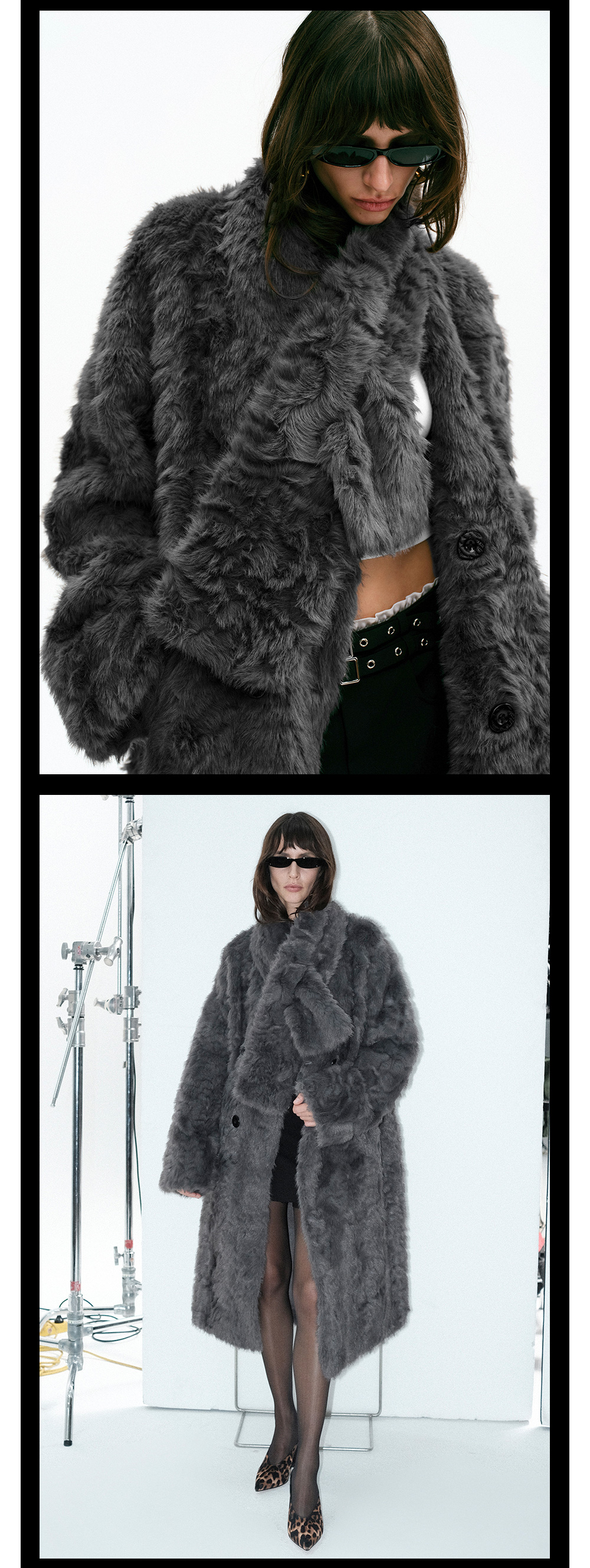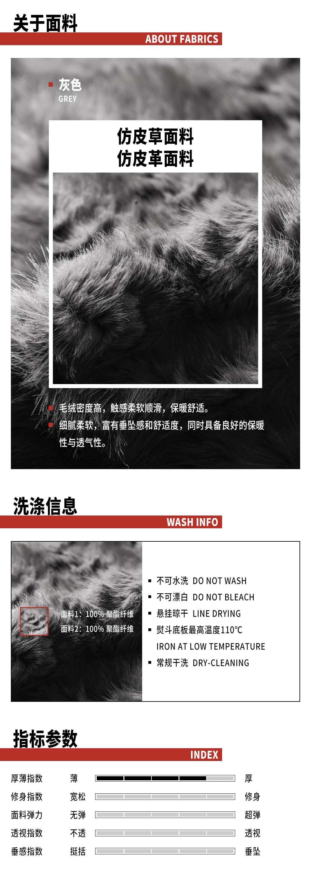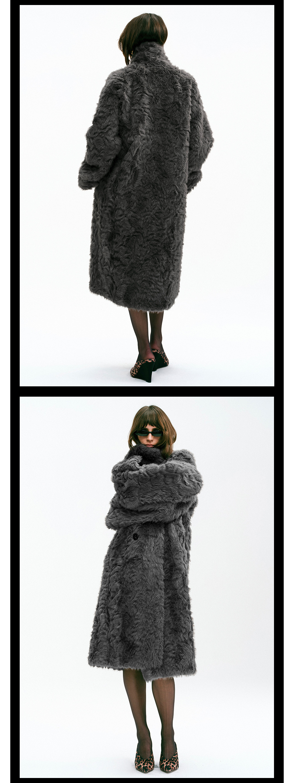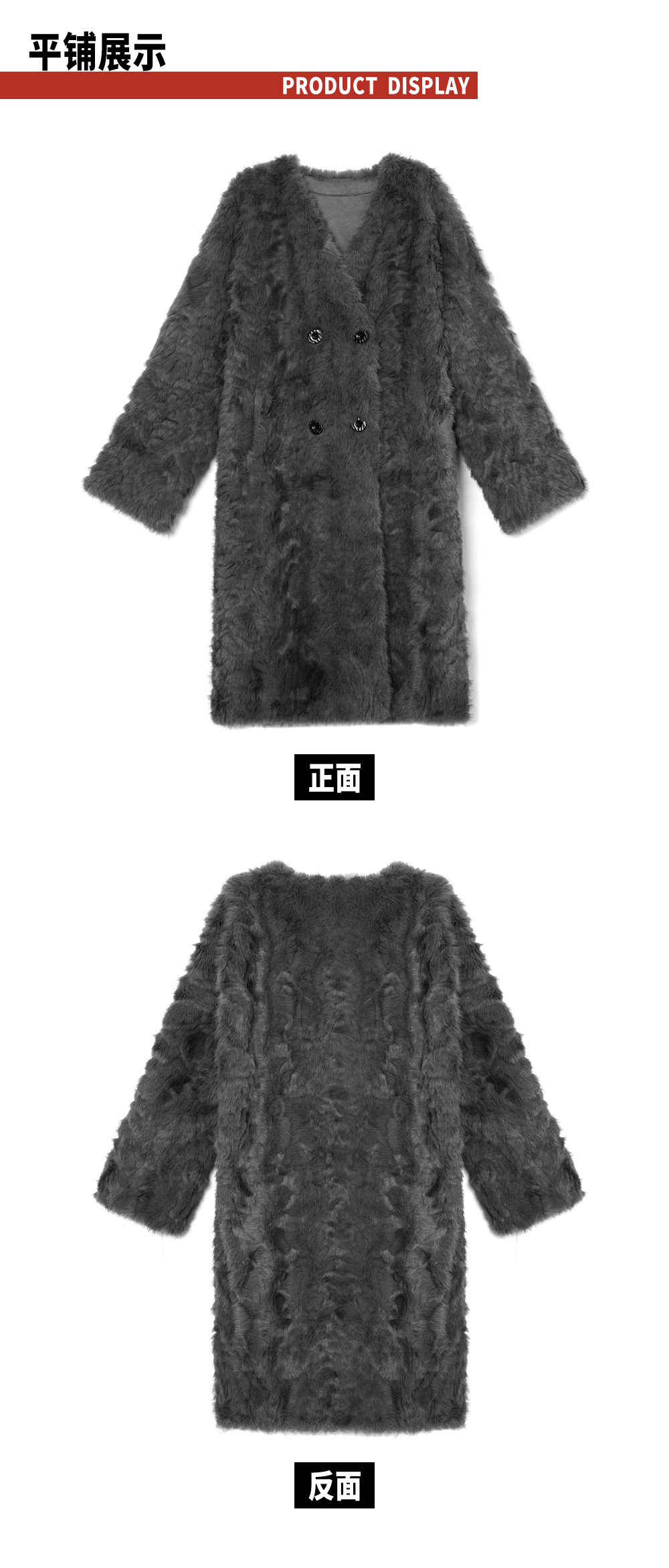 TR她热 欲望都市 灰色可拆卸围巾长款皮毛一体环保皮草大衣外套