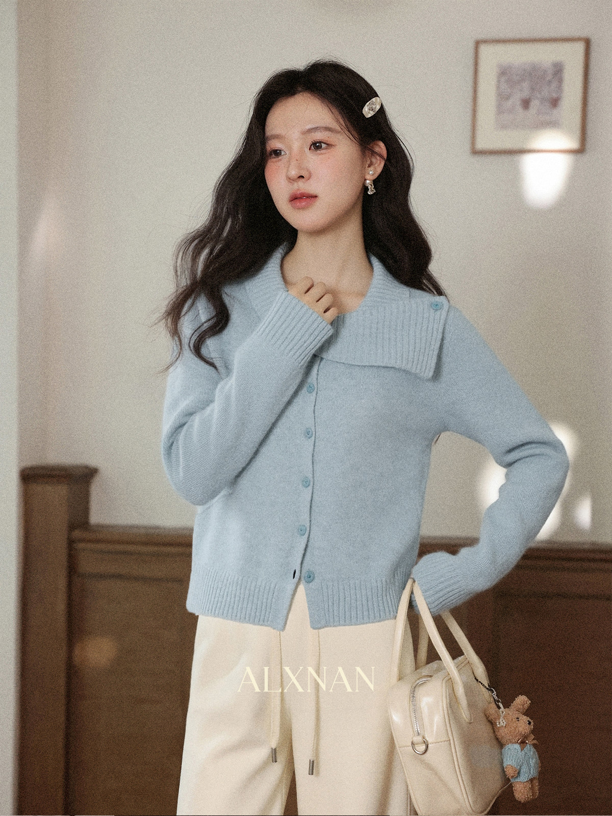 鹿向南「蓝色眼泪」秋冬新款原创设计小众韩系慵懒显白毛衣套装女