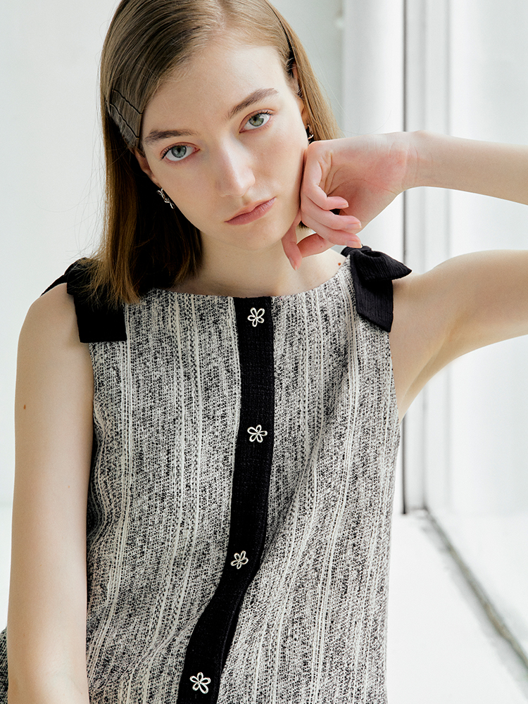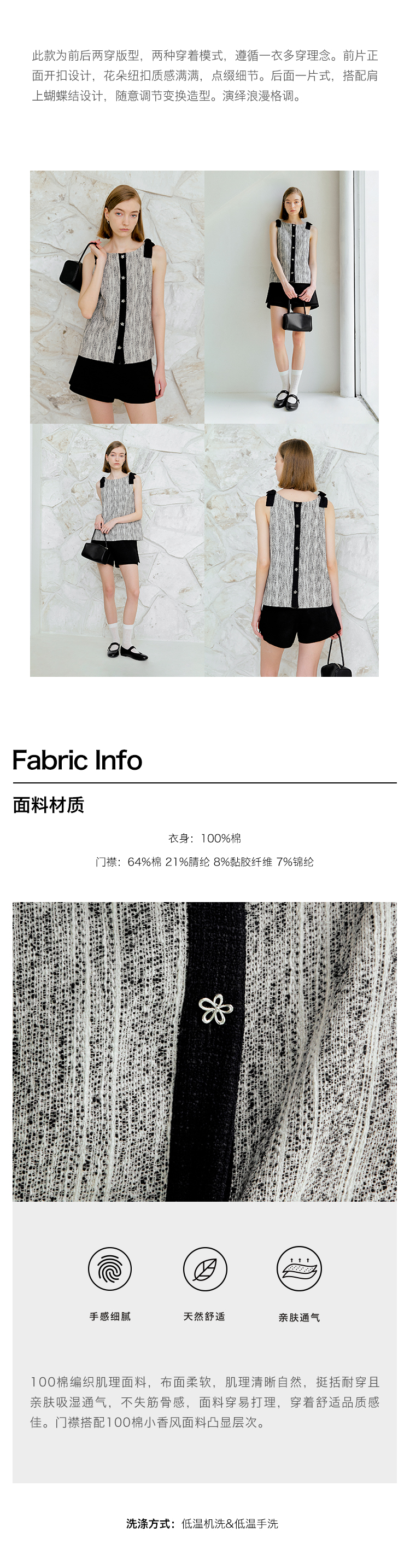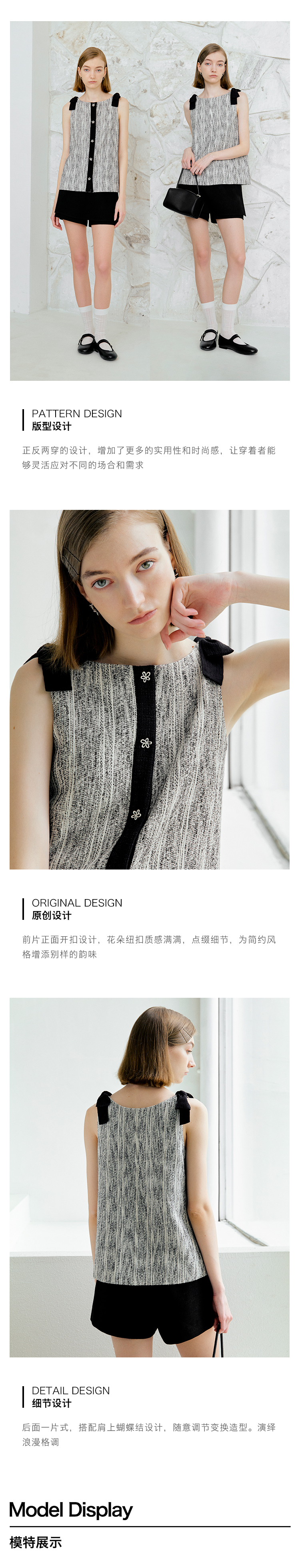 ForPoem 现货 25/SS原创设计前后两穿拼色蝴蝶结小香风无袖背心上衣
