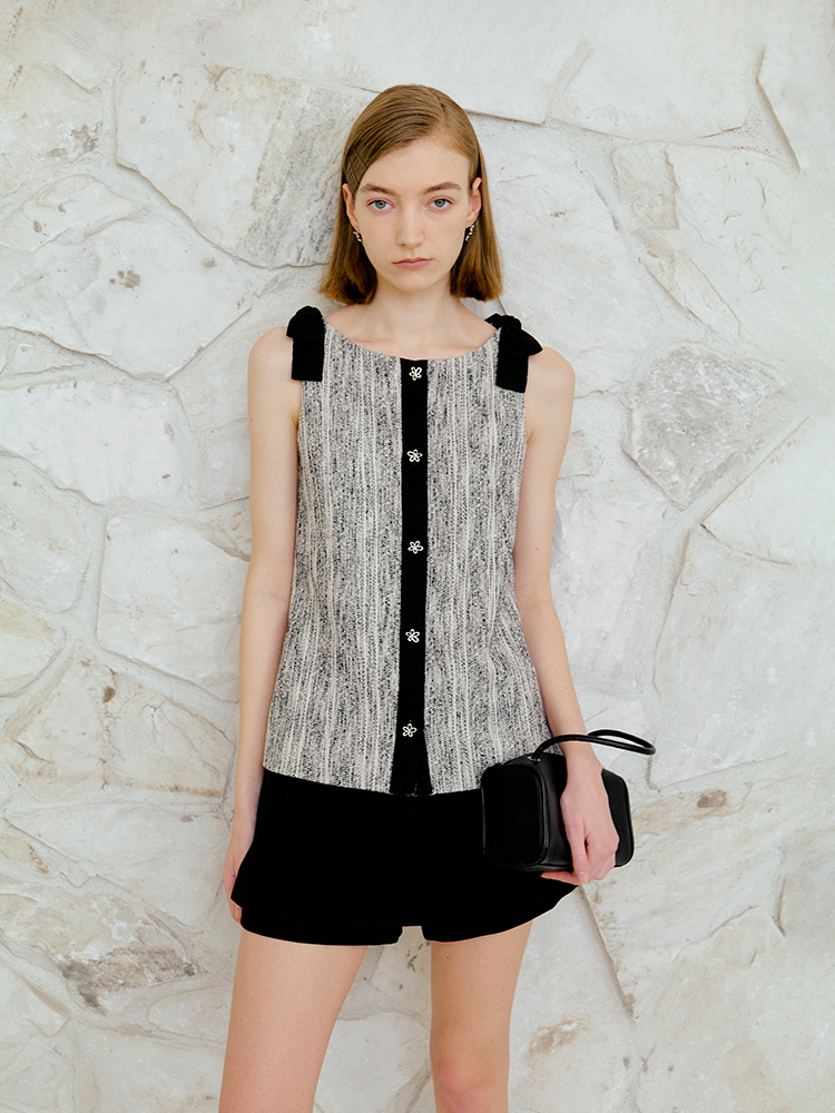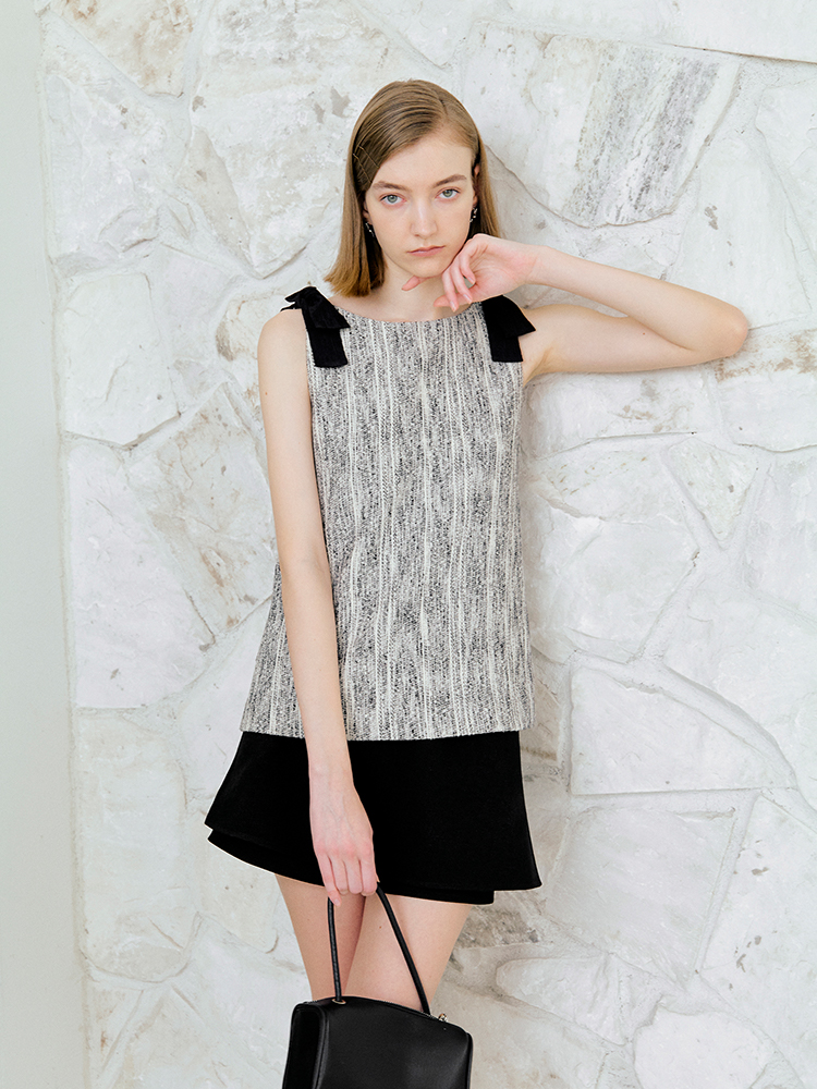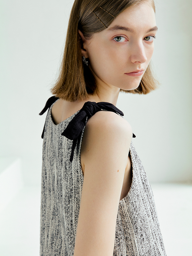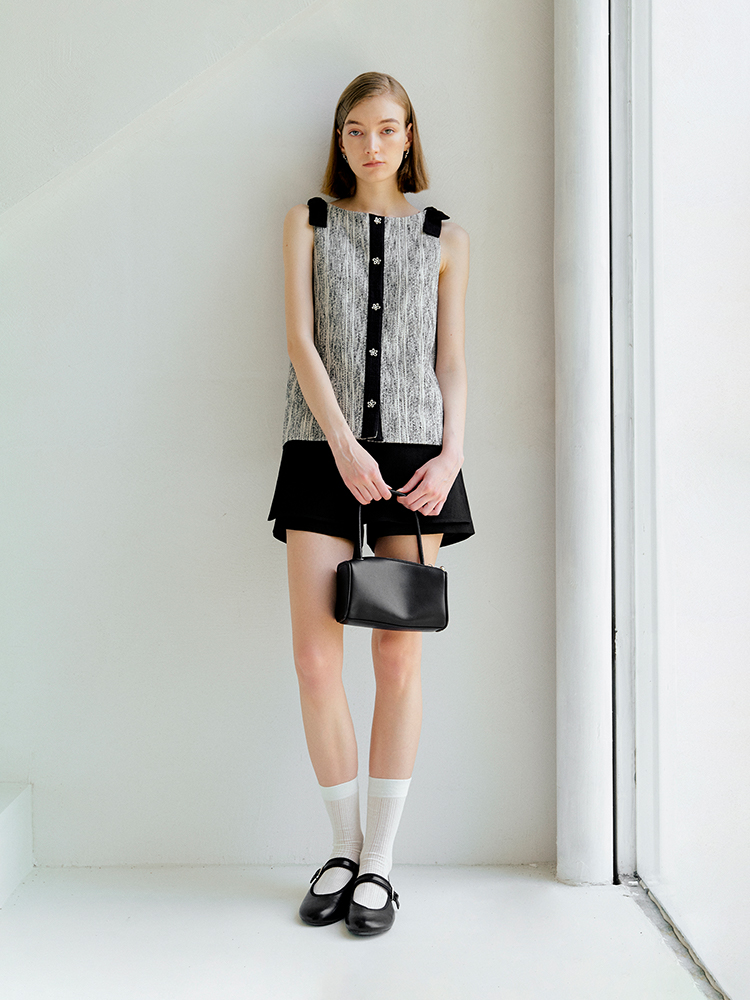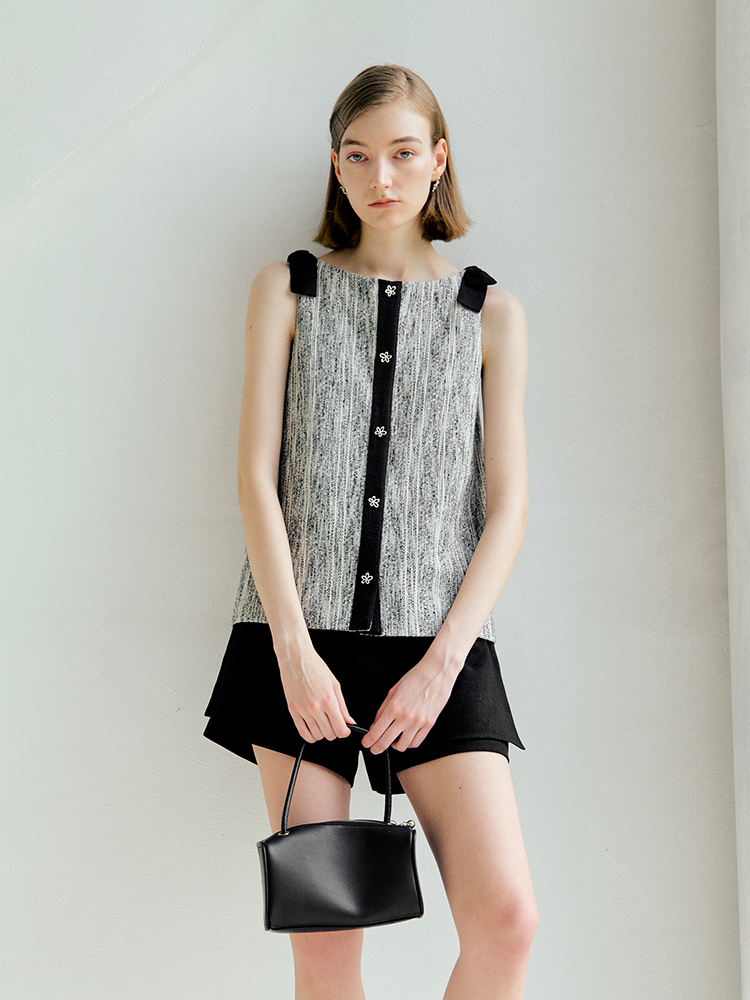 ForPoem 现货 25/SS原创设计前后两穿拼色蝴蝶结小香风无袖背心上衣