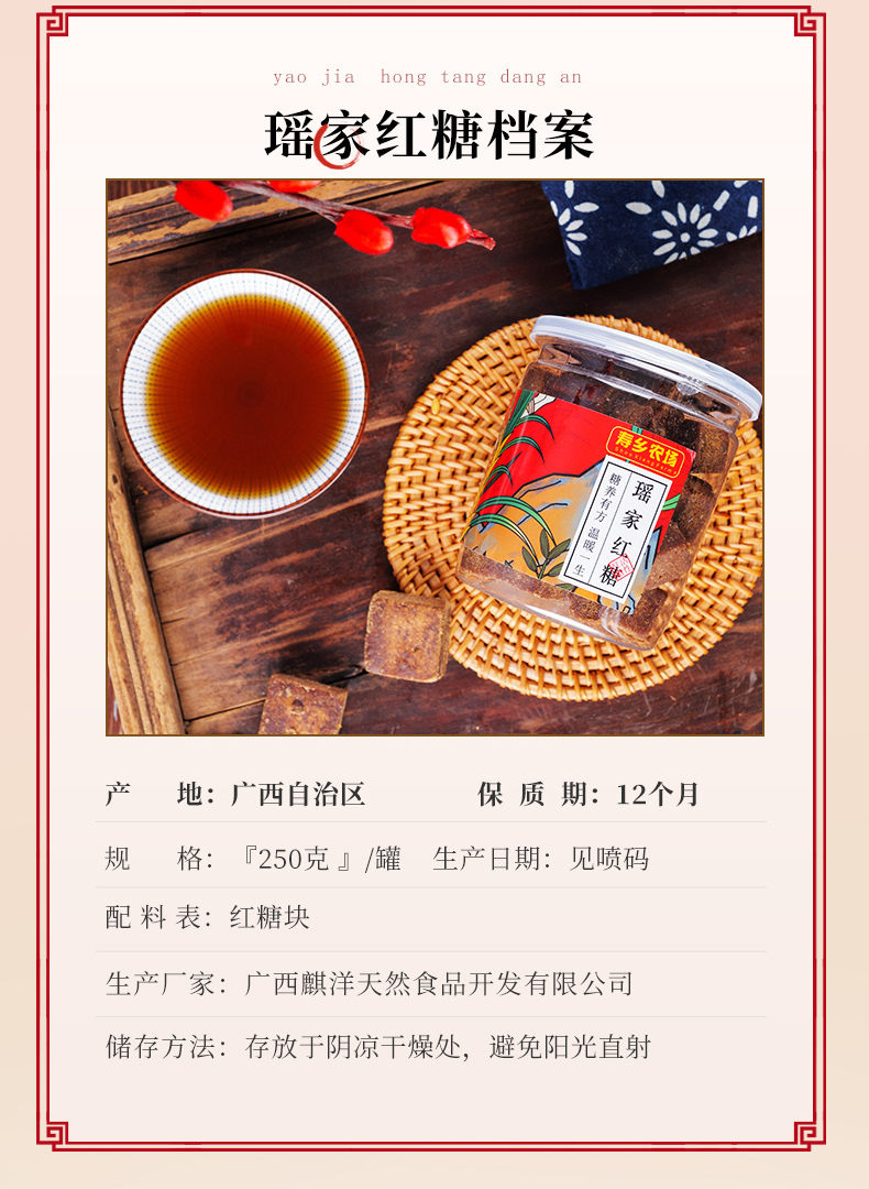 【寿乡农场】瑶家红糖 250g/罐*2