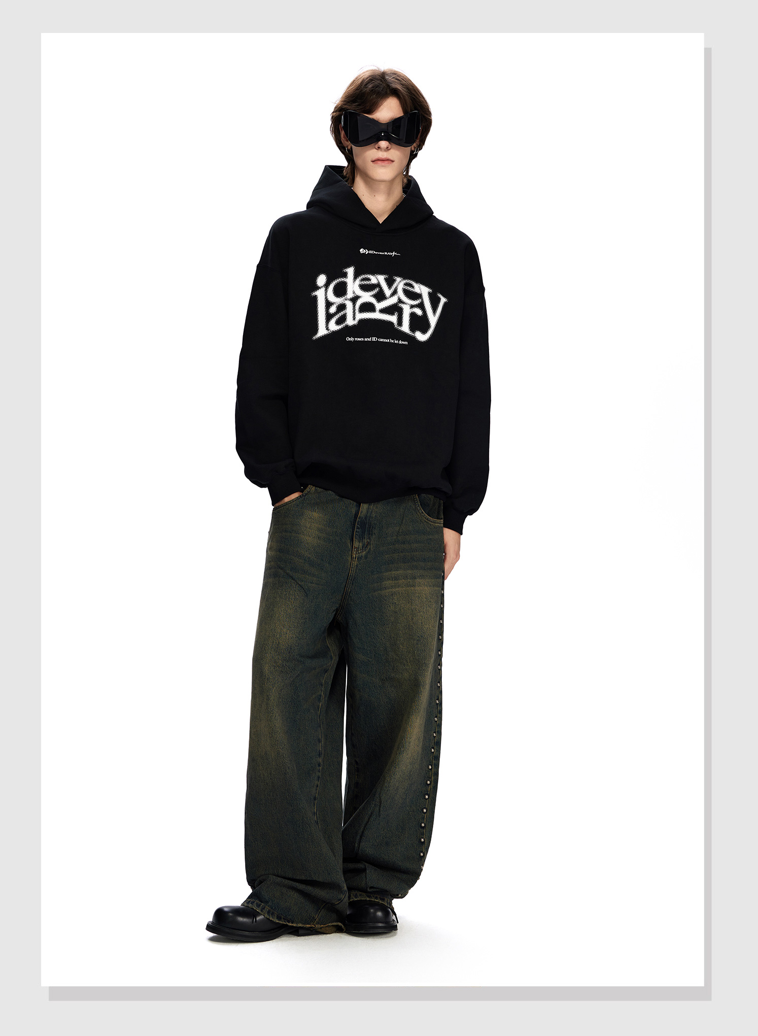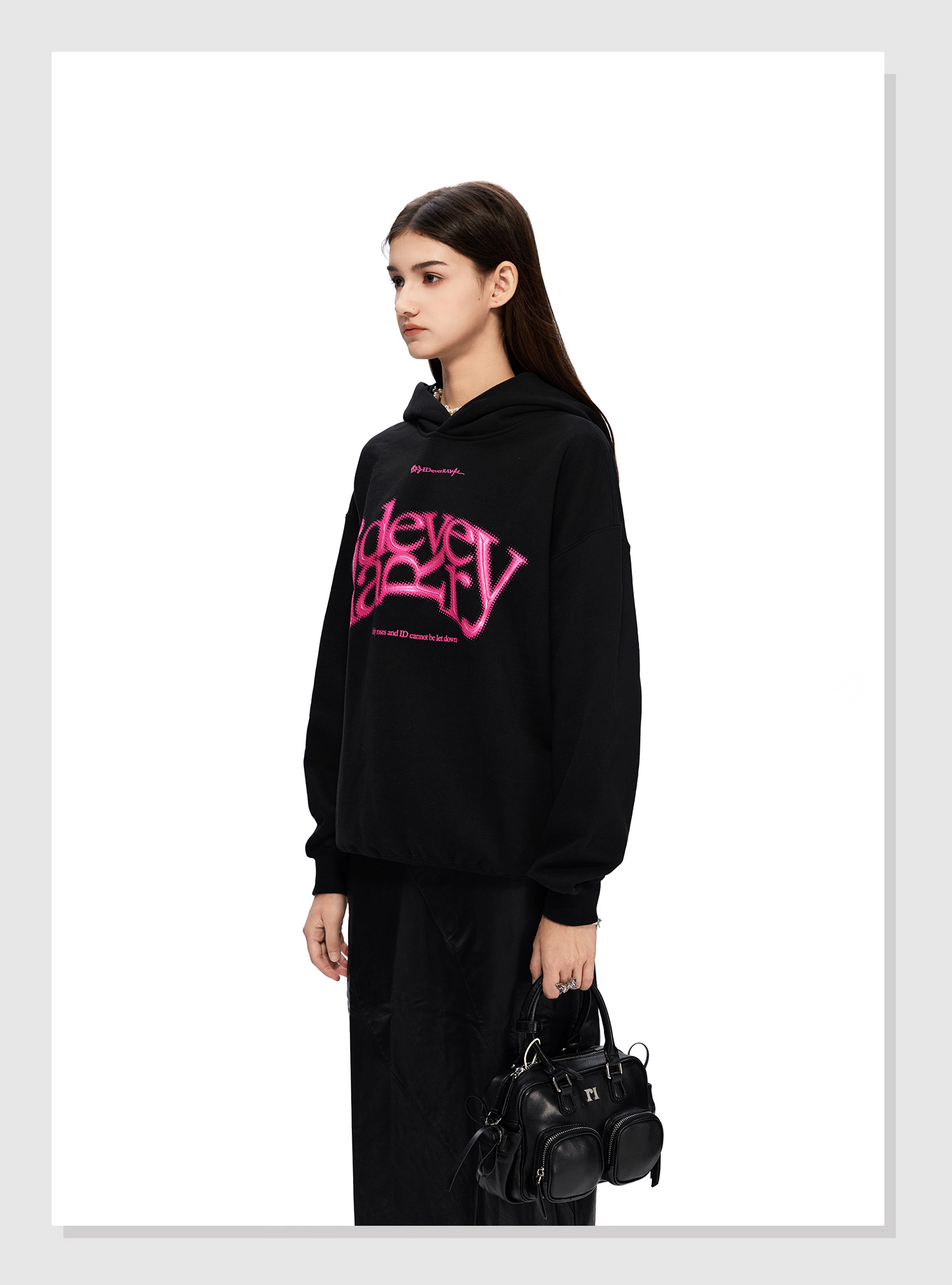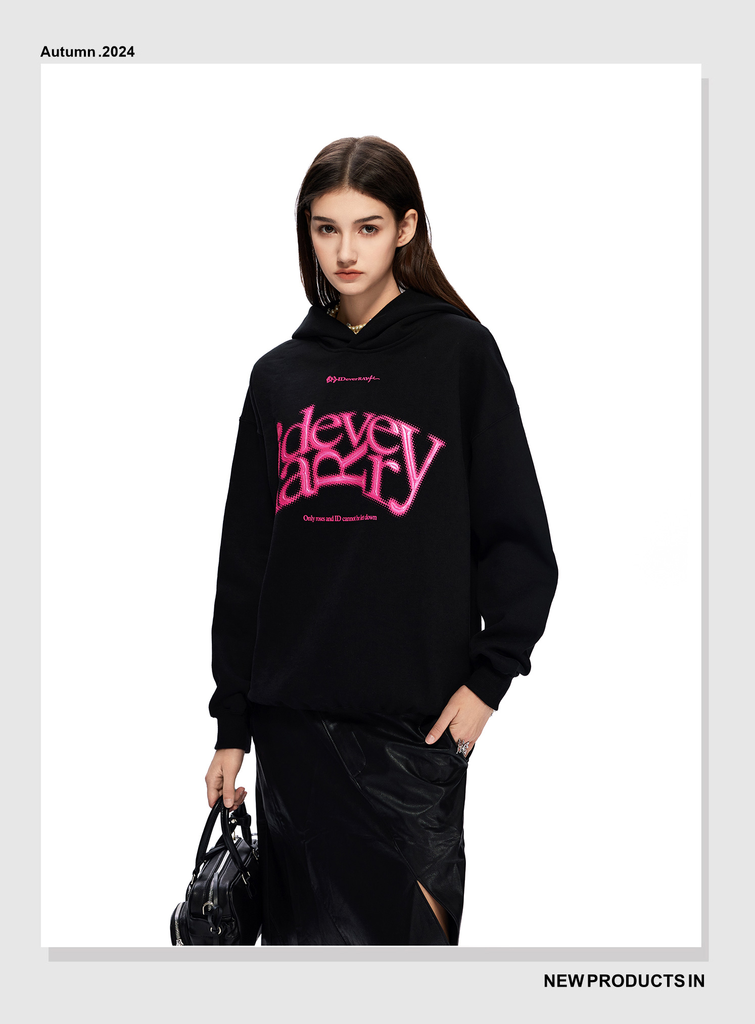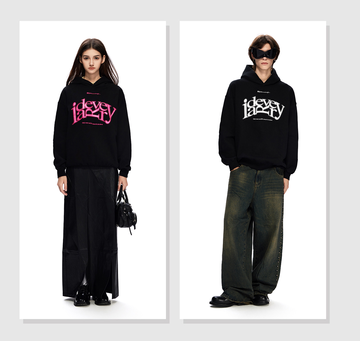 IDeverRAY明星同款秋冬美式字母连帽纯棉宽松加绒卫衣男女同款