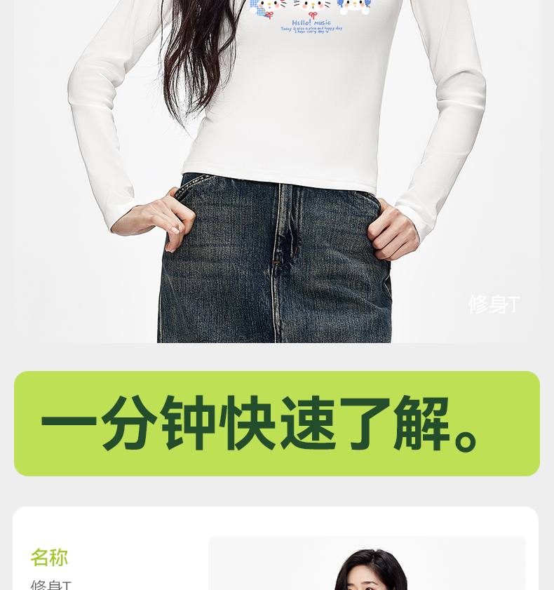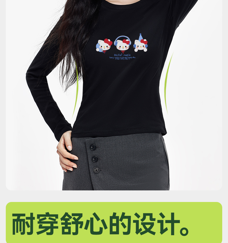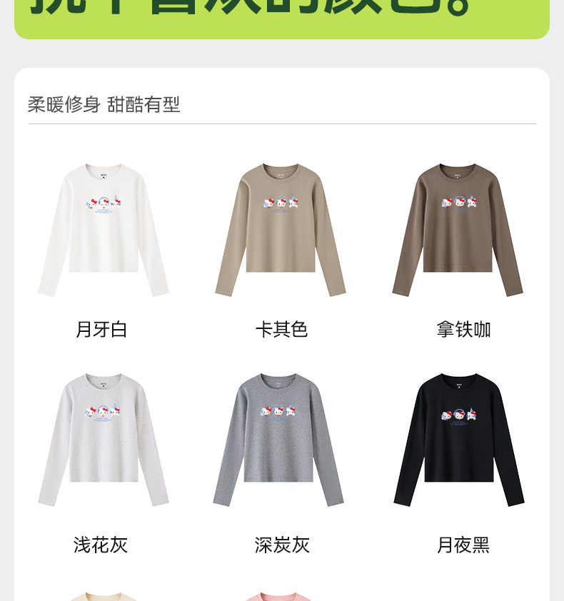 「棉的美学」显瘦修身长袖T恤印花秋季舒适辣妹内搭圆领打底衫