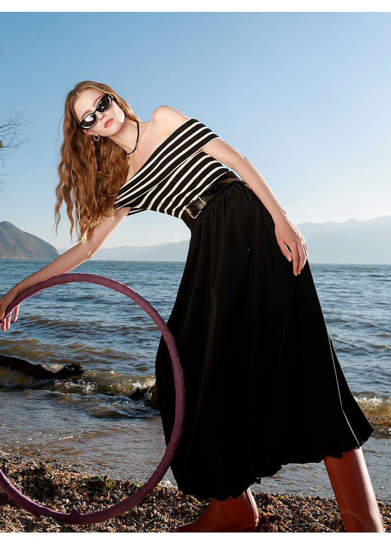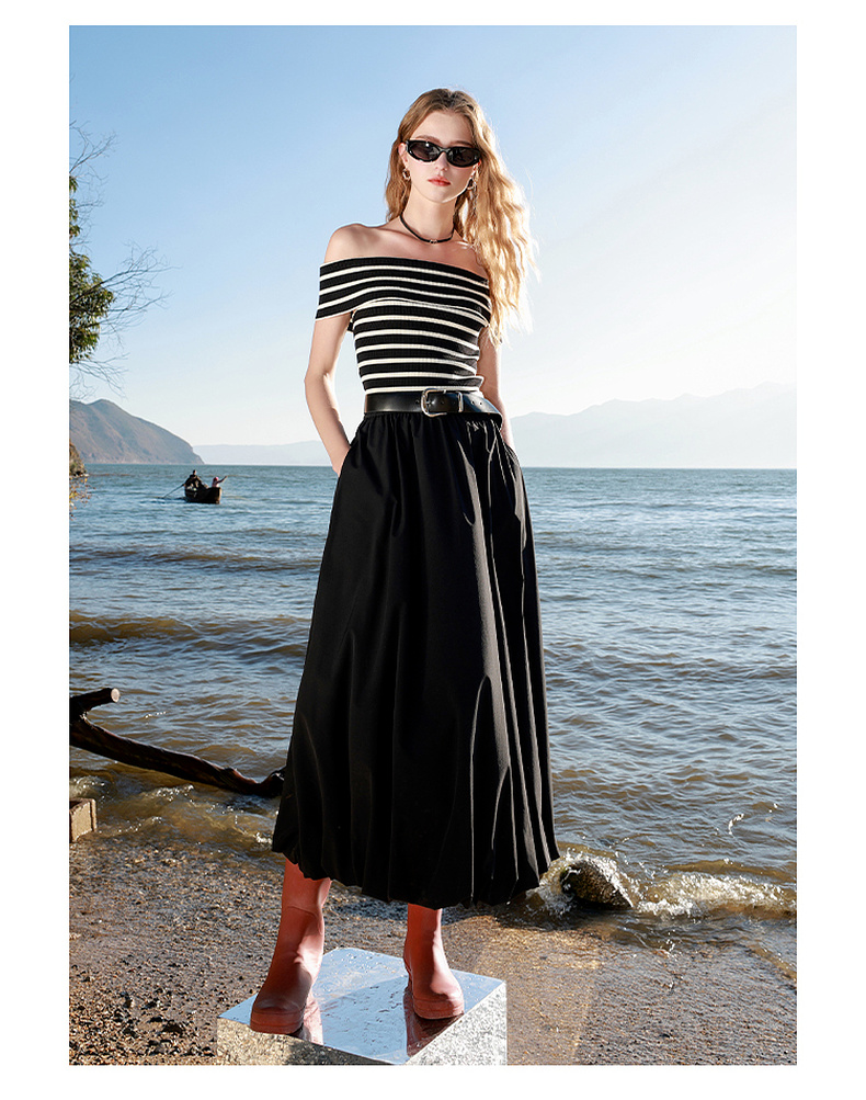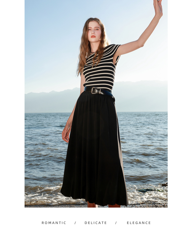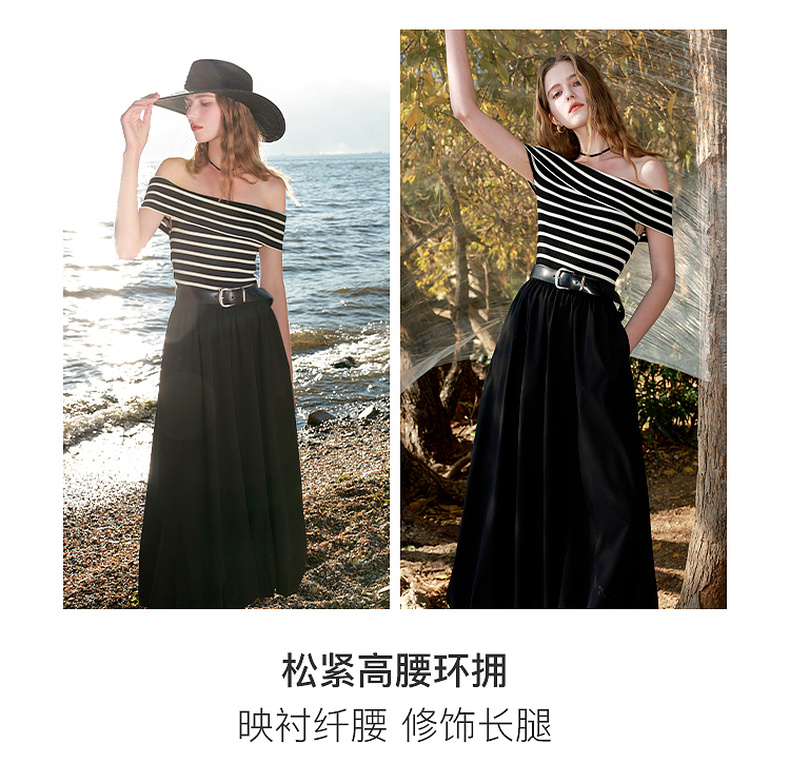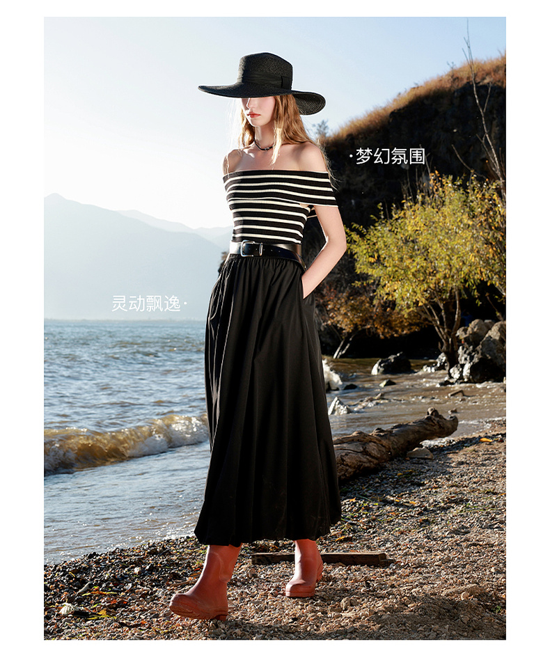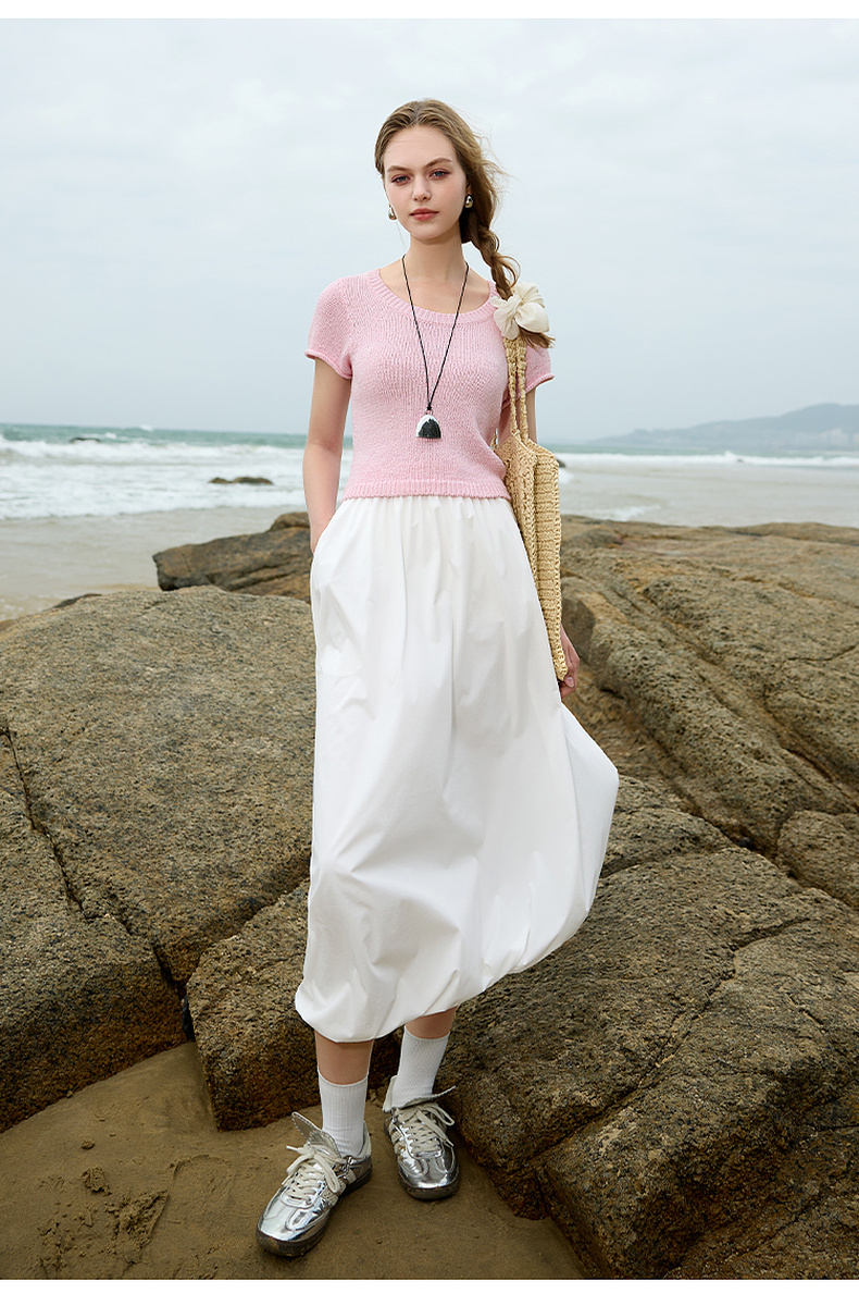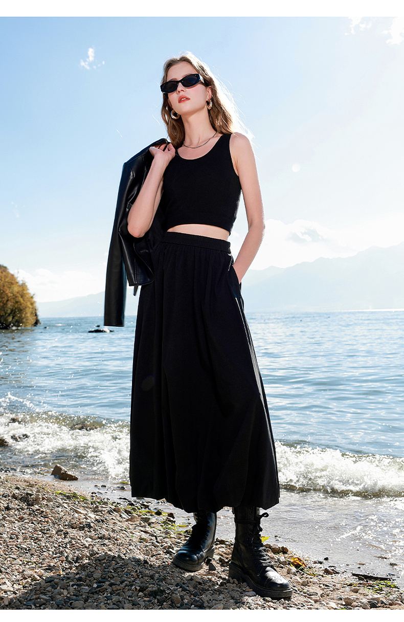 三彩2025春季新款花苞半身裙松紧腰A字裙显瘦长裙简约M