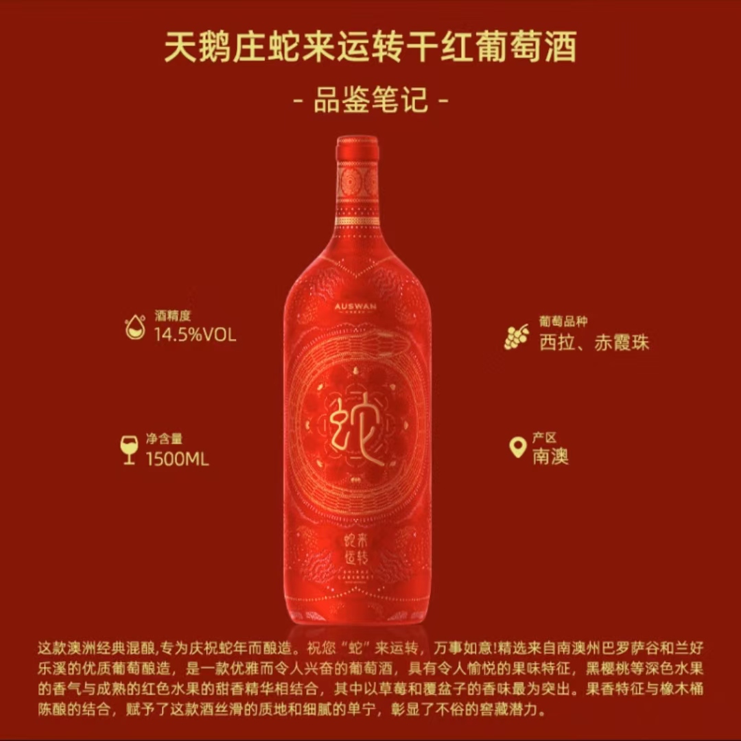 天鹅庄auswan 蛇来运转干红葡萄酒 lucky snake 红酒 14.5%vol 1500ml×2
