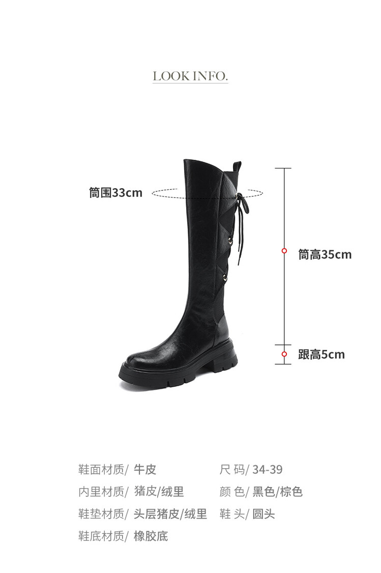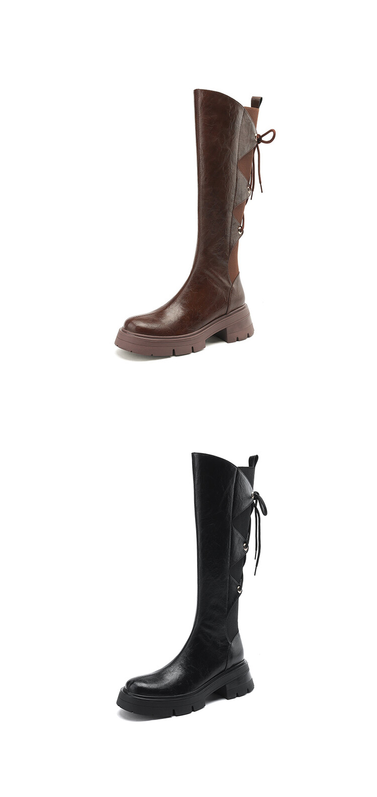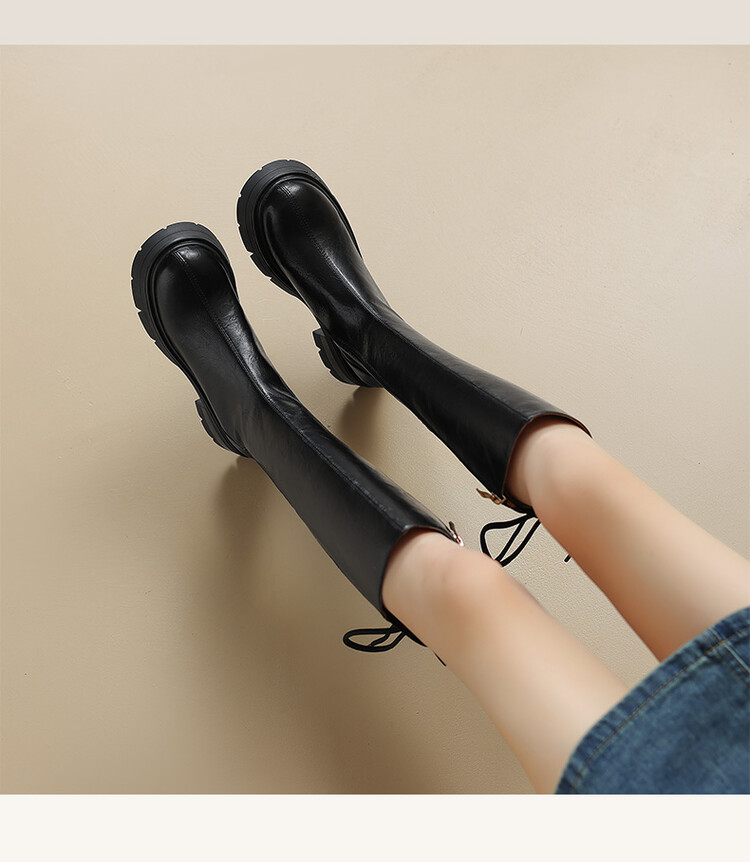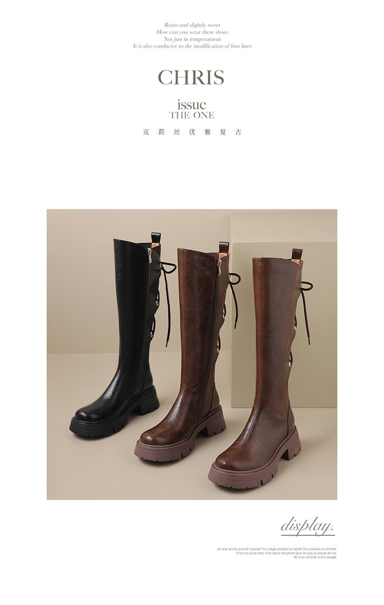 Ech&yolo拼接系带不过膝厚底甜辣骑士靴HBP-5440