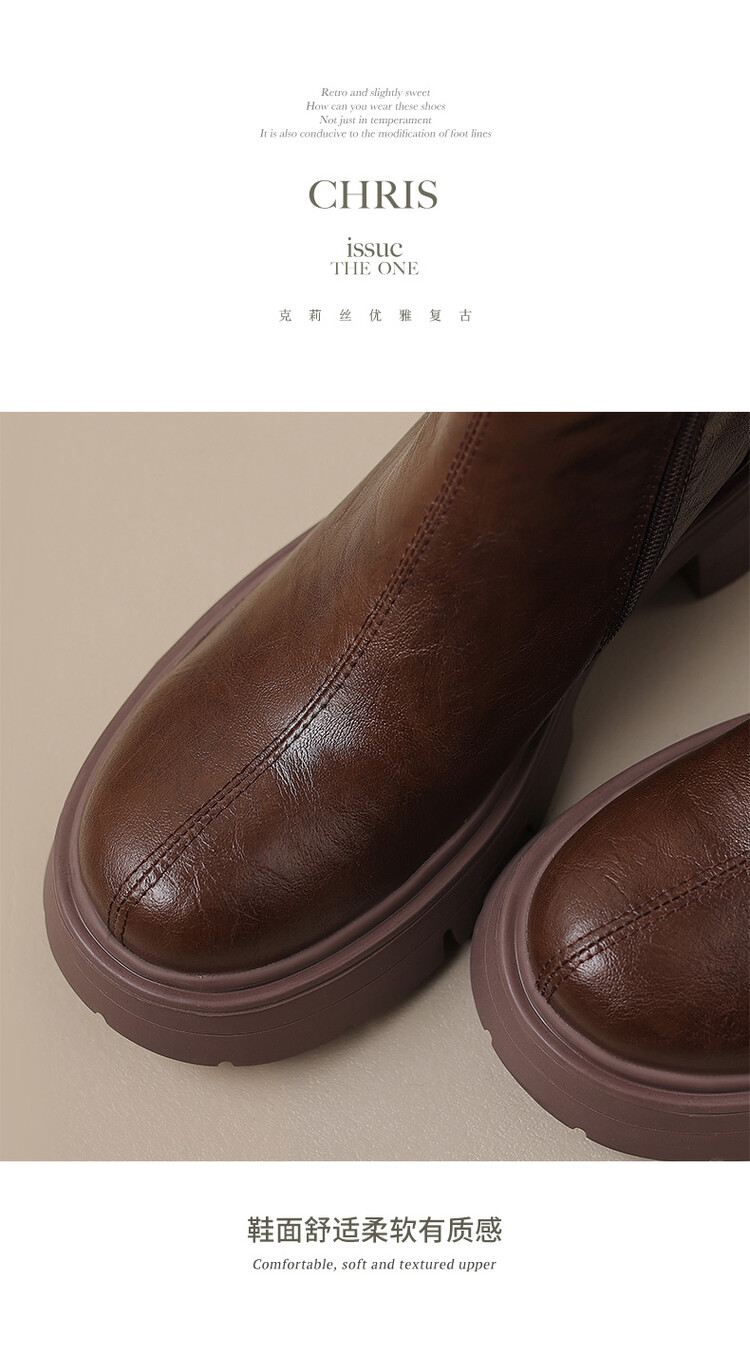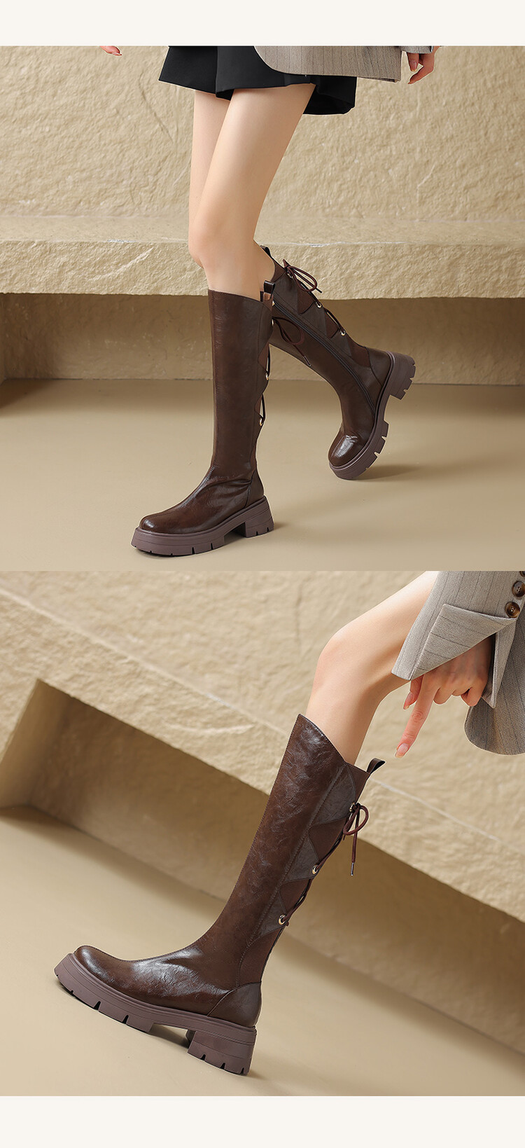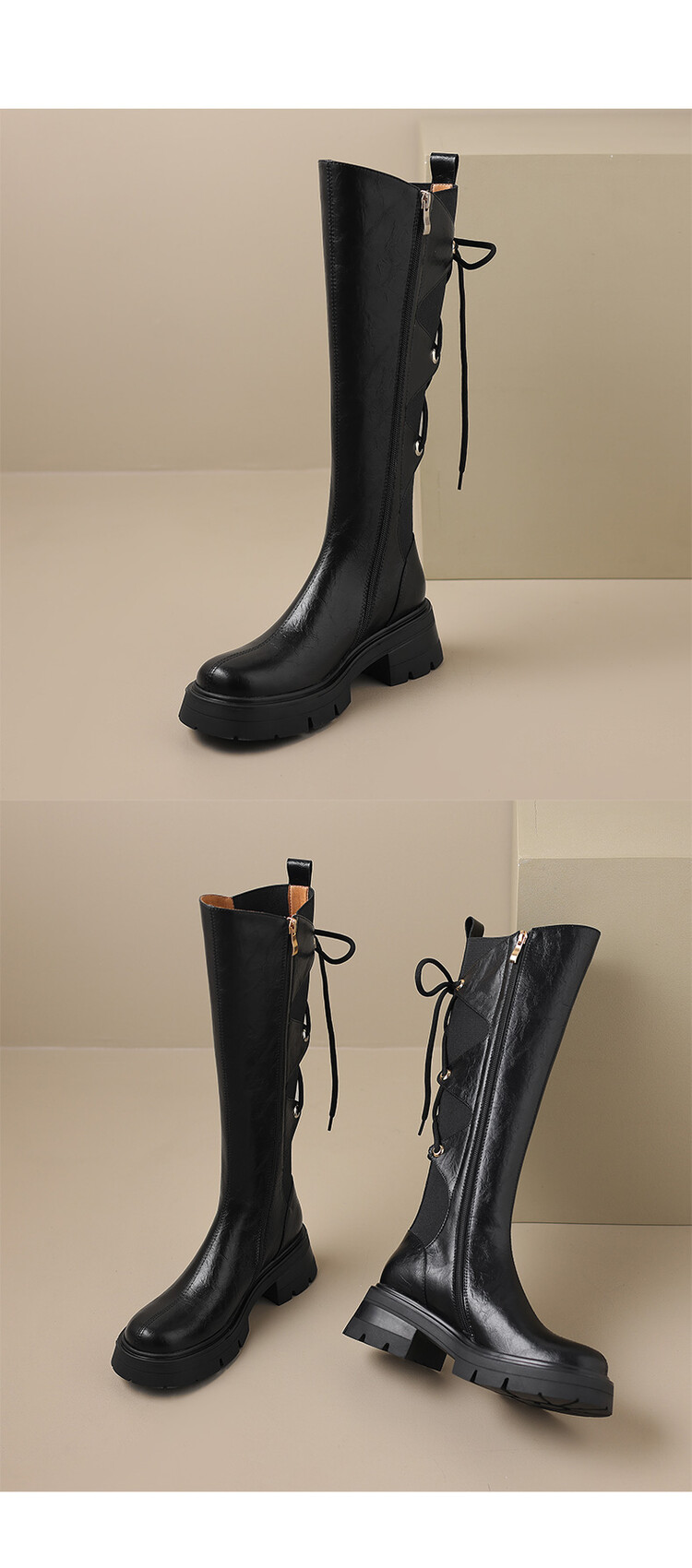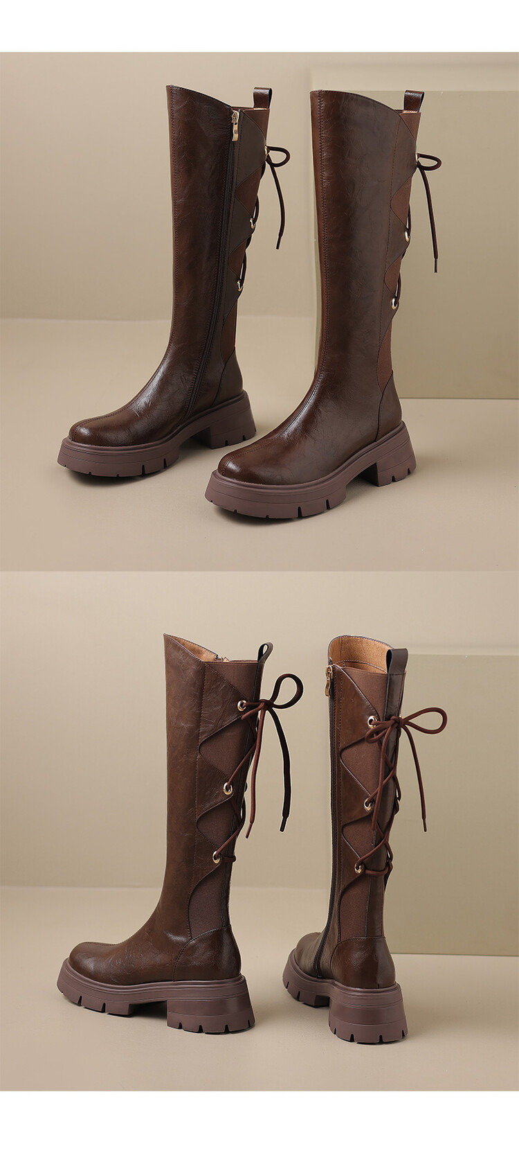 Ech&yolo拼接系带不过膝厚底甜辣骑士靴HBP-5440