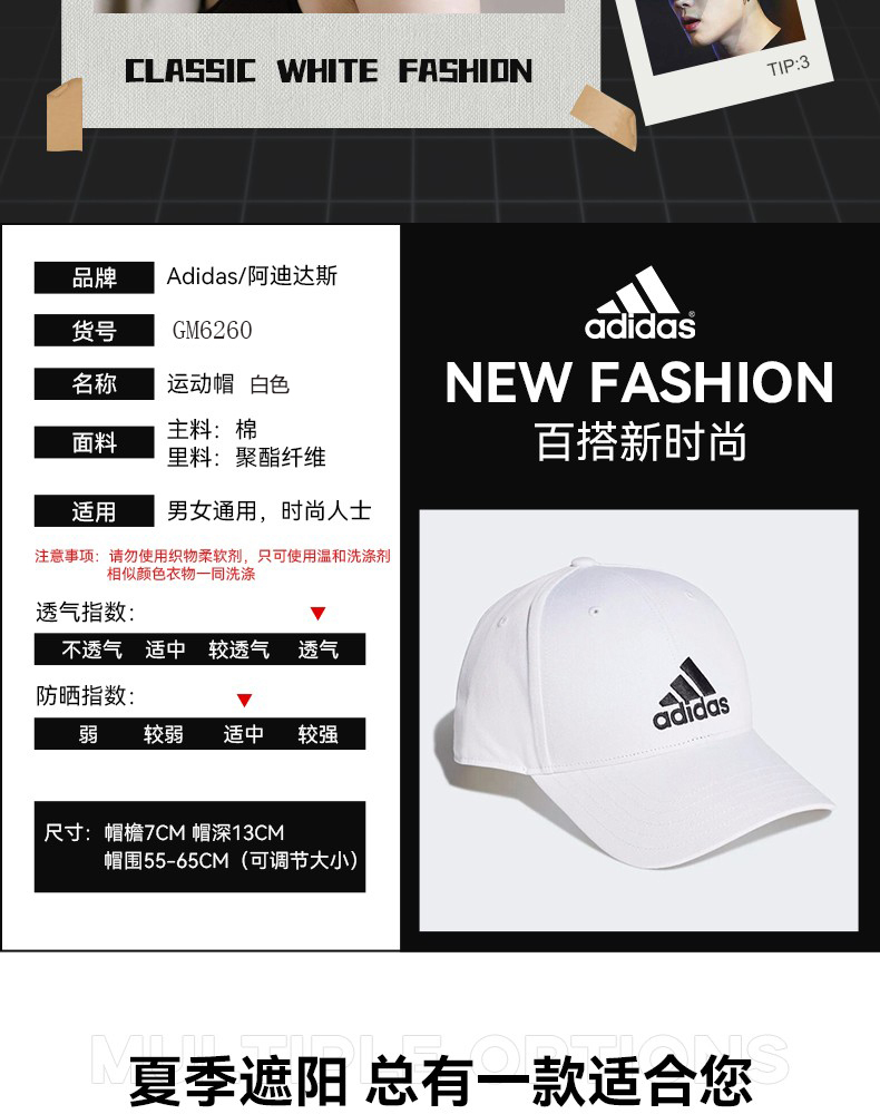 阿迪达斯(adidas)鸭舌帽 白色GM6260 OSFM